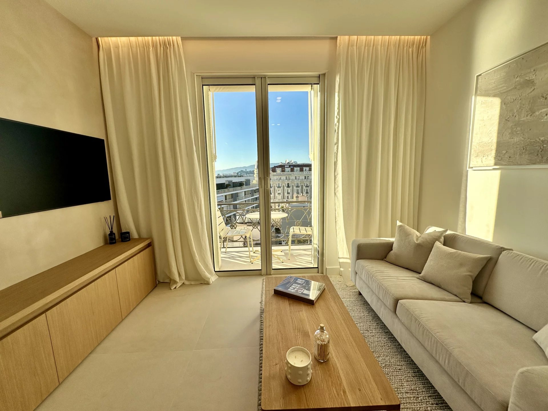 A Cannes, sur le Boulevard de La Croisette, dans le magnifique Palais Miramar, entre les hotels Carlton et Martinez, sublime appartement de 2 pièces en dernier étage. Entièrement rénové avec des matériaux de qualité, l'appartement de 30 m2 avec terrasse se compose d'une entrée, d'une cuisine équipée, d'une séjour ouvrant sur terrasse vue mer et Carlton, d'une chambre et d'une salle de douches avec WC. Appartement très bien agencé, emplacement premium.