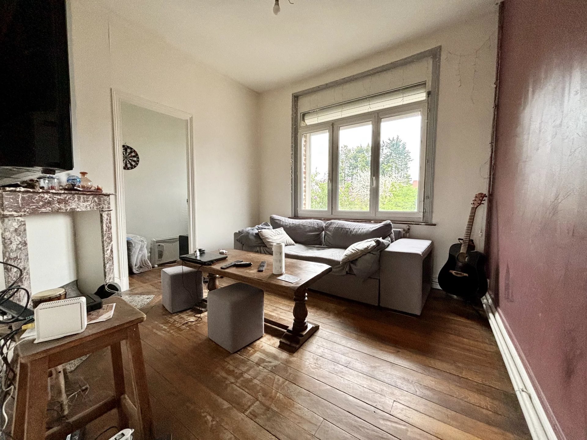 Maison de ville de 92 m2 avec garage attenant proche du centre ville. Hall d'entrée donnant sur une pièce aménagée avec un espace sanitaire à terminer. Cette pièce donne accès à une cour ensoleillée.Cave. Au premier étage: -salon -séjour -cuisine aménagée Au deuxième étage: -Deux chambres(13m2). -Salle de bain,wc. Chauffage central gaz récent. Châssis pvc double vitrage. Garage avec porte motorisée. Idéal première acquisition ou investissent locatif. Geoffroy Beauloye RSAC 883172983 de Douai. 06x84x75x35x64