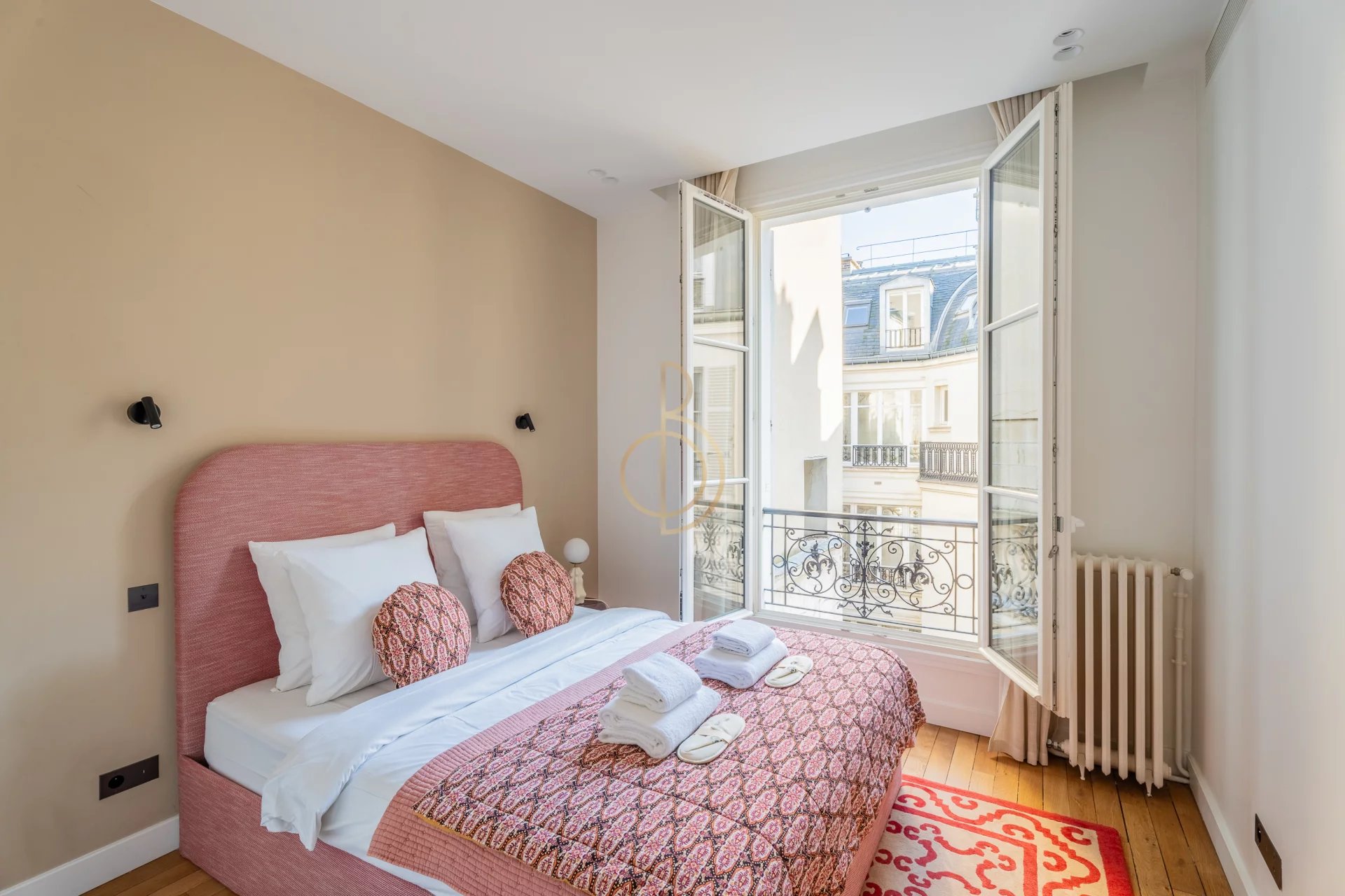 Chaque chambre est meublée avec soin et bénéficie de matériaux haut de gamme, offrant ainsi un confort optimal. L'appartement dispose également d'une climatisation réversible pour assurer une température agréable tout au long de l’année.