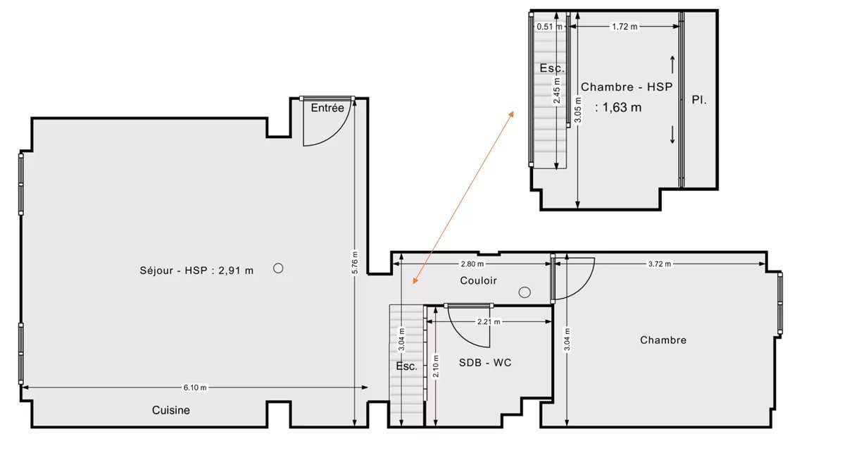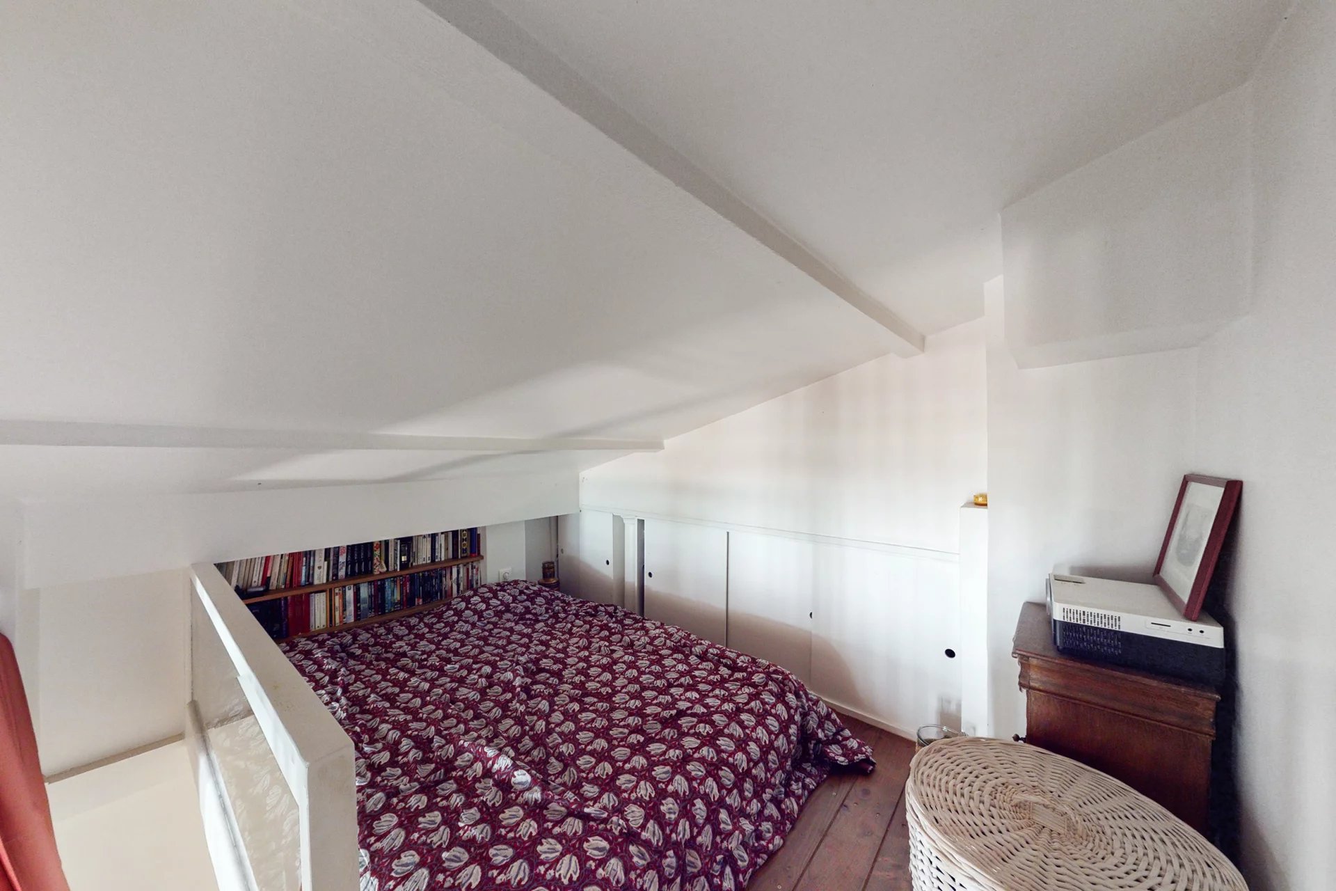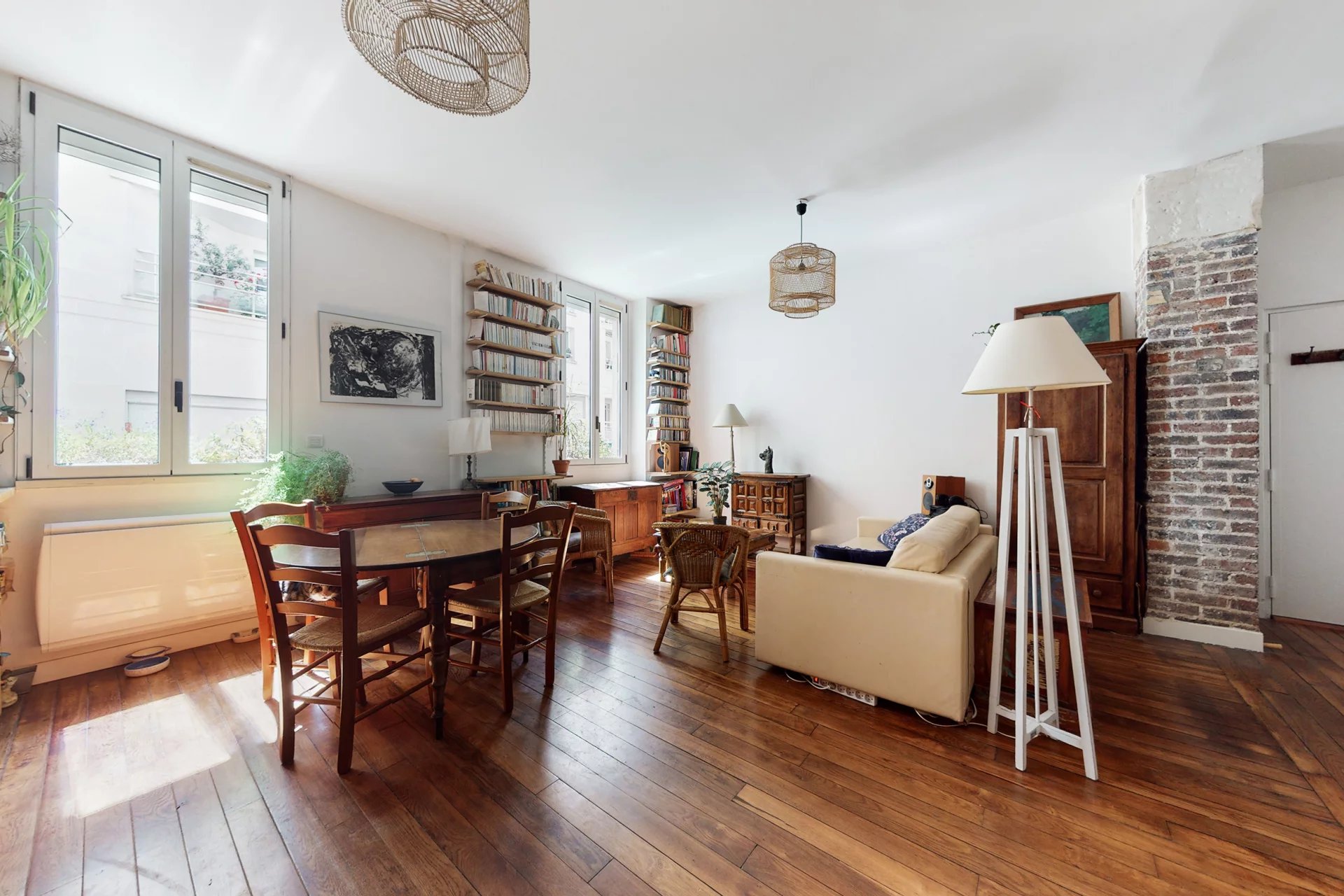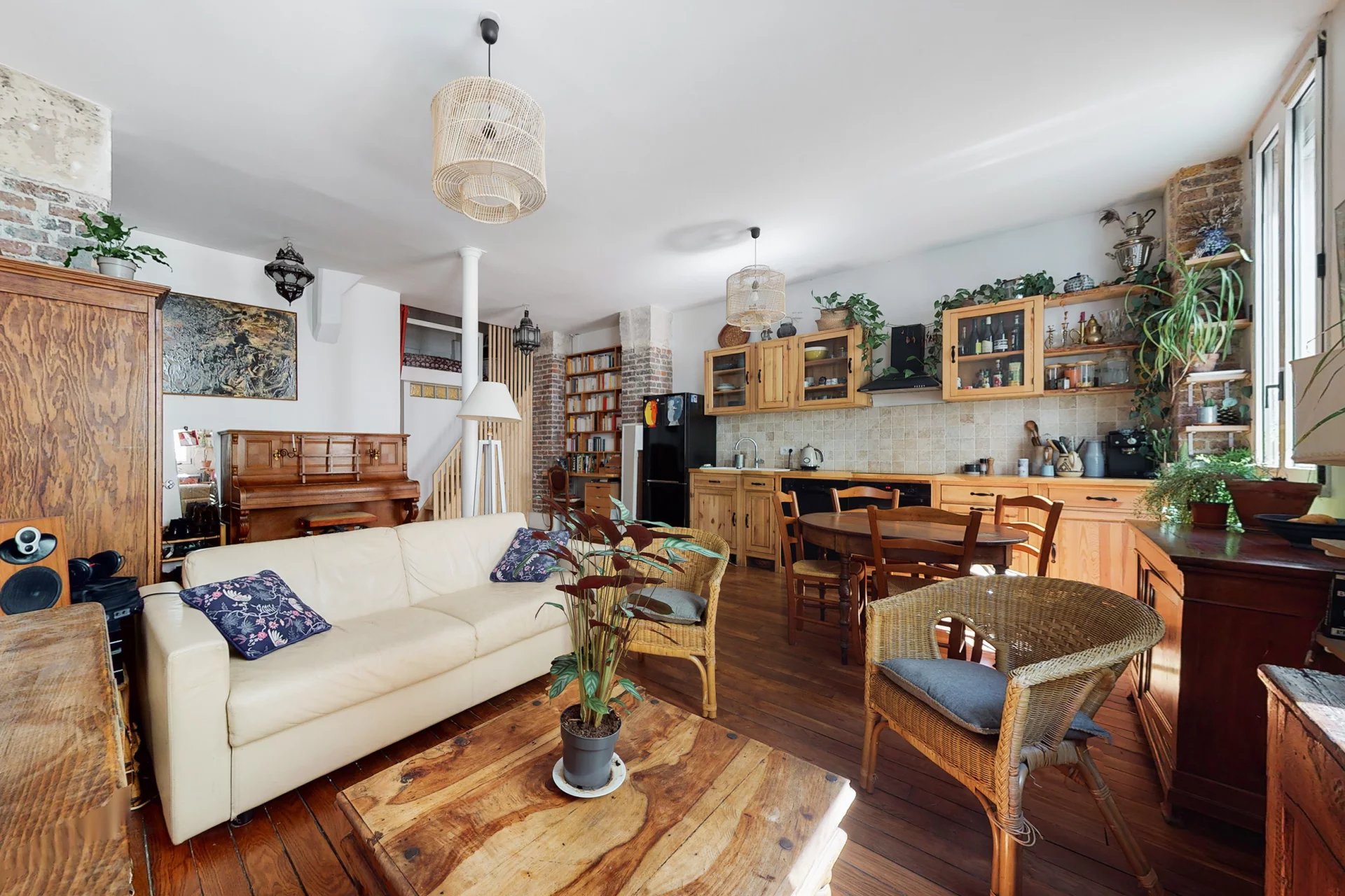 La visite révèle un 3 pièces traversant, atypique, entièrement rénové en 2019, composé d'un séjour avec cuisine ouverte de 35m², d'une chambre sur cour, d'une mezzanine conçue au profit d'un espace de vie préservé, et d'une salle de bain.