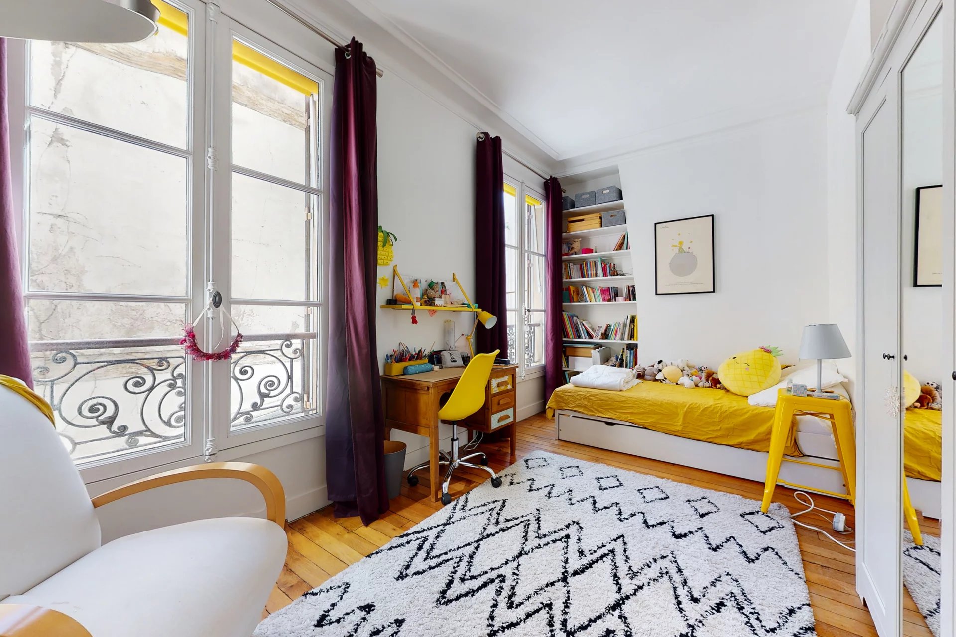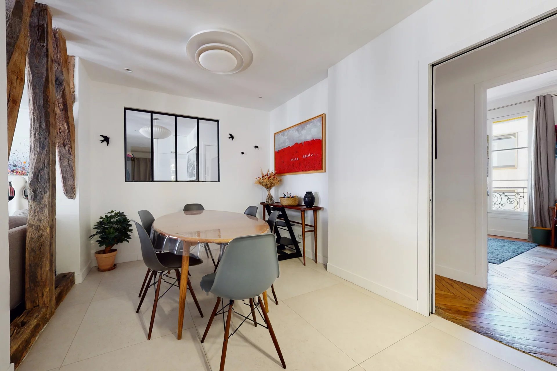 A noter : Gardienne à demeure. Chauffage collectif CPCU écologique. Copropriété bien tenue. Voisinage paisible. Charges : 400€ / mois, chauffage inclus. Taxe foncière : 1 330€ / an. Frais d’agence réduits : moins de 1%. Métro lignes 5, 6, 7.