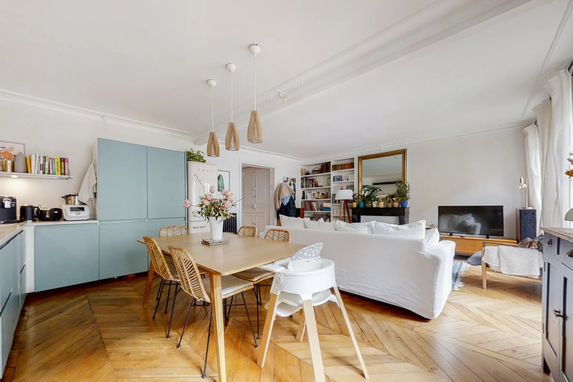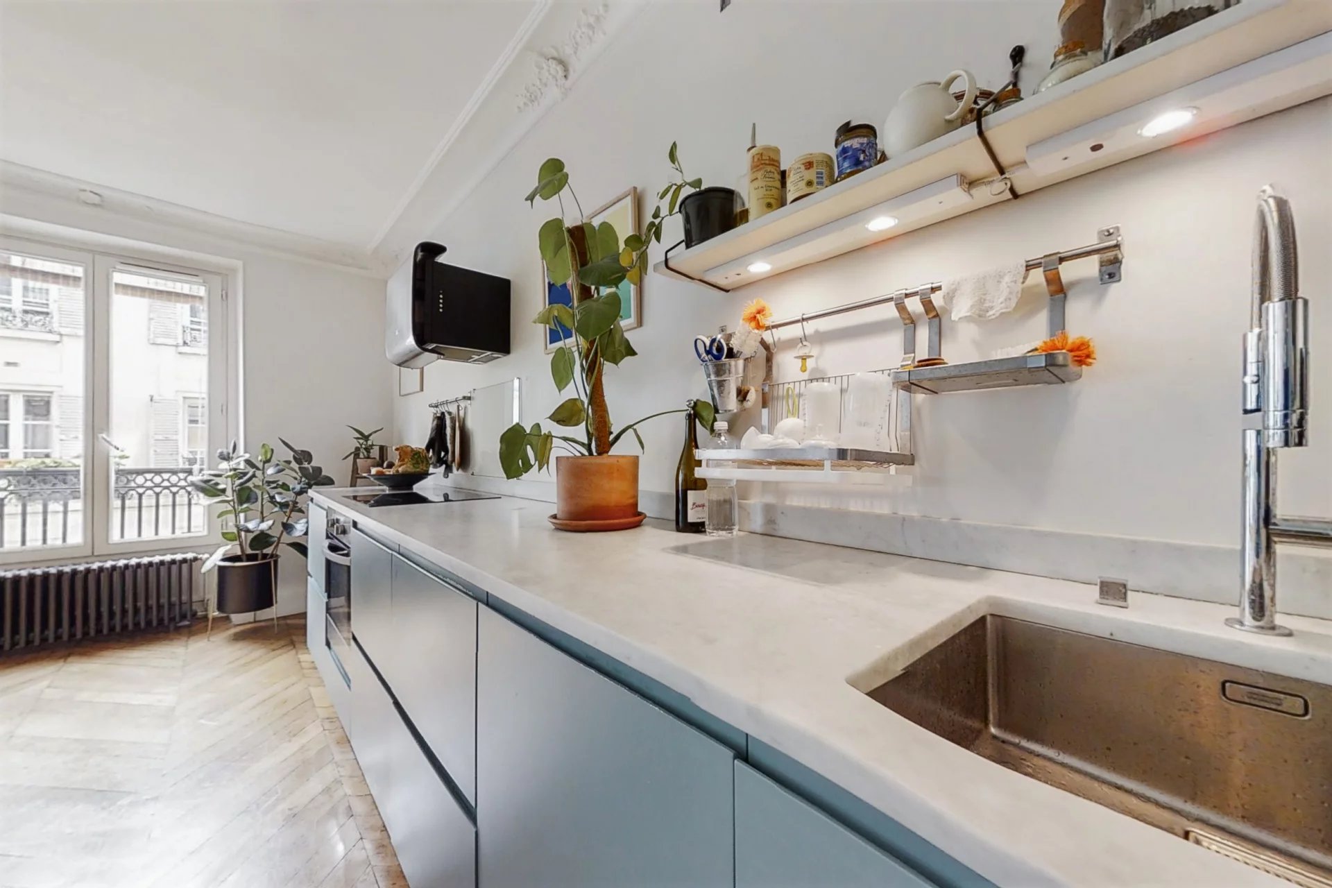 La visite révèle un trois pièces traversant en parfait état, entièrement repensé par un architecte. Le plan est composé d'un vaste séjour avec cuisine ouverte de 37m² exposé Sud Est avec balcon filant et trois fenêtres, de deux chambres bien proportionnées sur cour, d'une salle de bain, de WC séparés et de nombreux rangements. Parquet massif point de hongrie, belles moulures, cheminée fonctionnelle, double vitrage. L'appartement présente de nombreux atouts recherchés à Paris. Proche tous commerces. Profitez (bientôt) des nombreux cafés et restaurants. A deux pas du canal Saint Martin et de République.