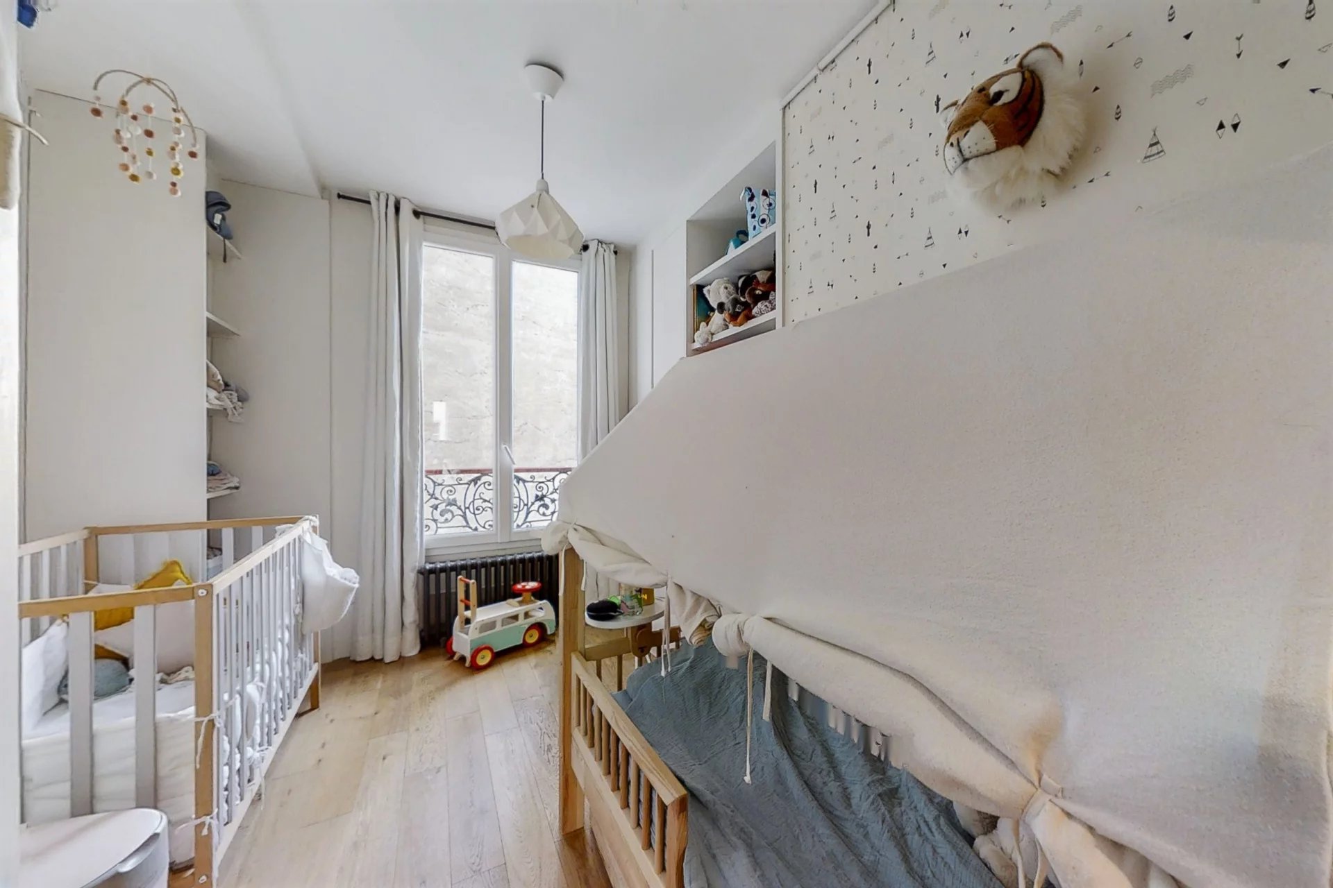 A noter: Une cave de 8m² complète ce bien. Pas d'ascenseur. Possibilité technique d'en avoir un. Local vélo sécurisé. Chauffage, eau chaude individuels au gaz. Baignoire. Charges de gaz et électricité modérées. Baignoire. Charges de copropriété: 210 EUR / mois. Métros lignes 3, 4, 5, 8, 9, 11. Projet de piétonnisation en cours d’étude. Taxe foncière: 535 EUR. Sas d'entrée avec deux digicodes. Visite virtuelle accessible en fin de diaporama. Frais d'agence réduits : 0,8%.