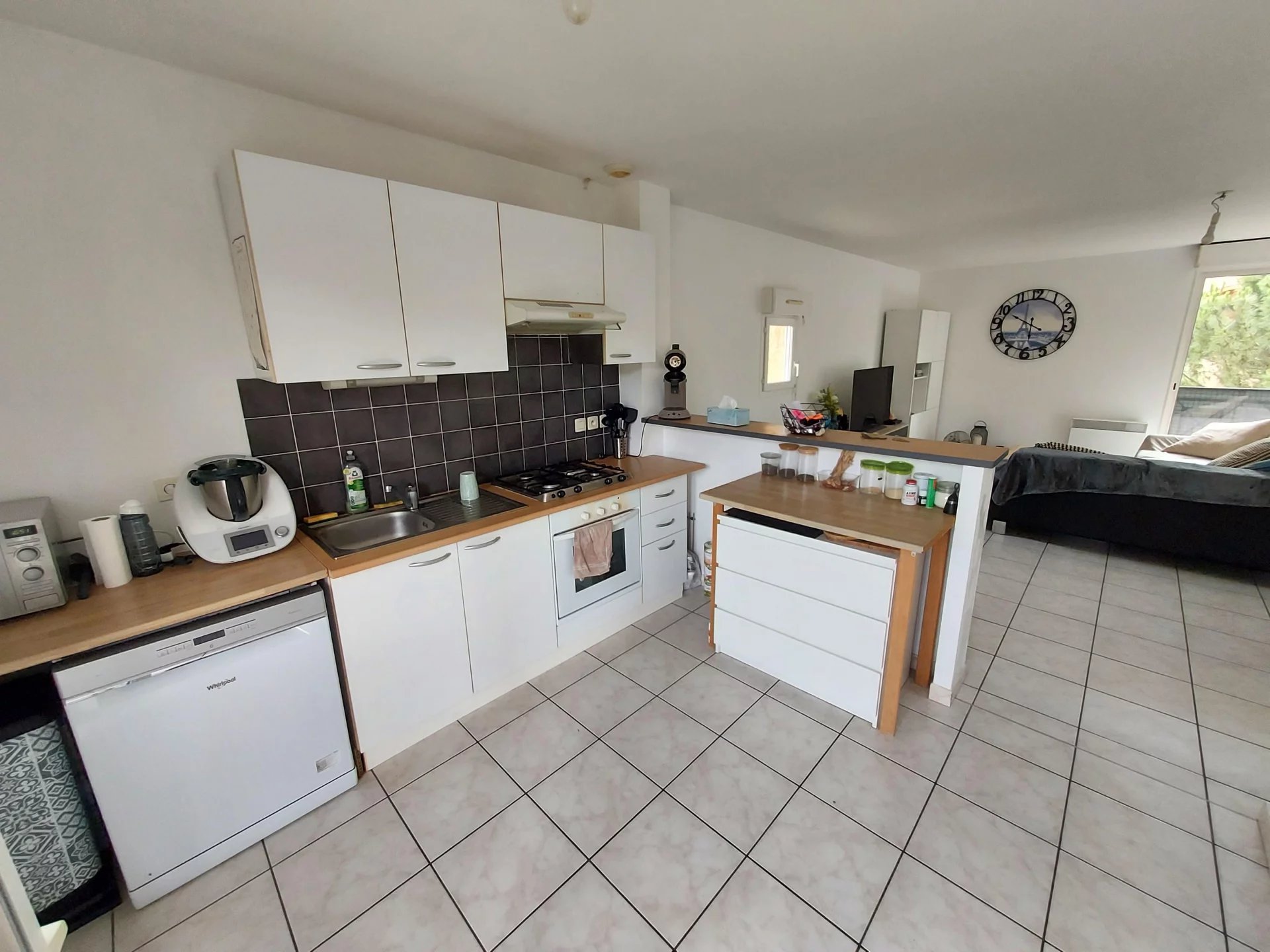 Agréable appartement Type 3 Environ 77m² habitables Grande entrée avec placard, agréable pièce de vie avec cuisine équipée ouverte, balcon, 2 chambres avec placards, une salle de bains, un wc indépendant. Grand garage