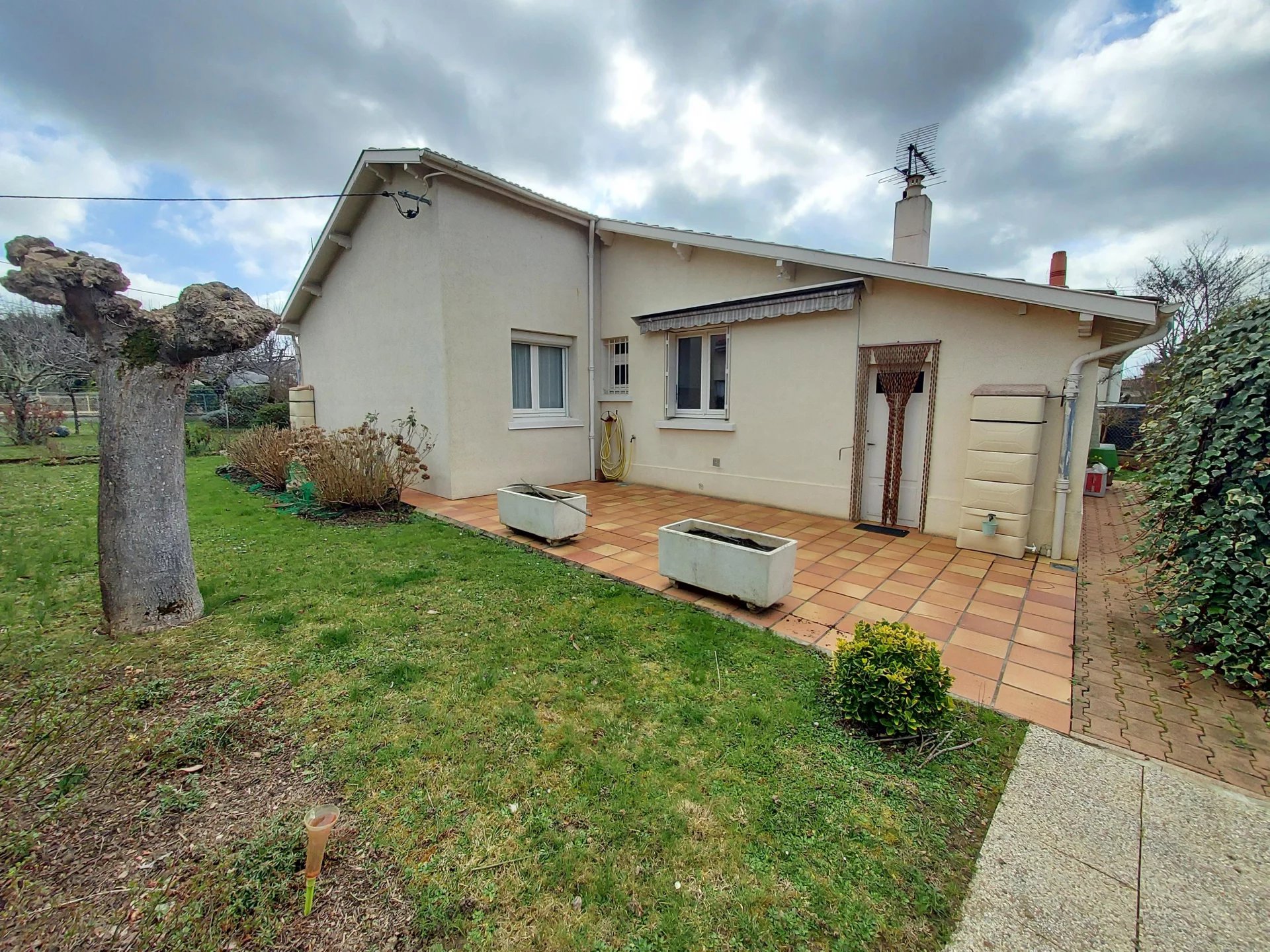 En exclusivité Agréable maison de plain pied Type 4 d'environ 73m² idéalement située en centre basse ville comprenant: un salon séjour, une cuisine équipée, 3 chambres avec placards, salle de bains, wc indépendant, cellier et garage attenant. Chauffage central au gaz de ville Agréable jardinet d'environ 200m² Maison en parfait état!