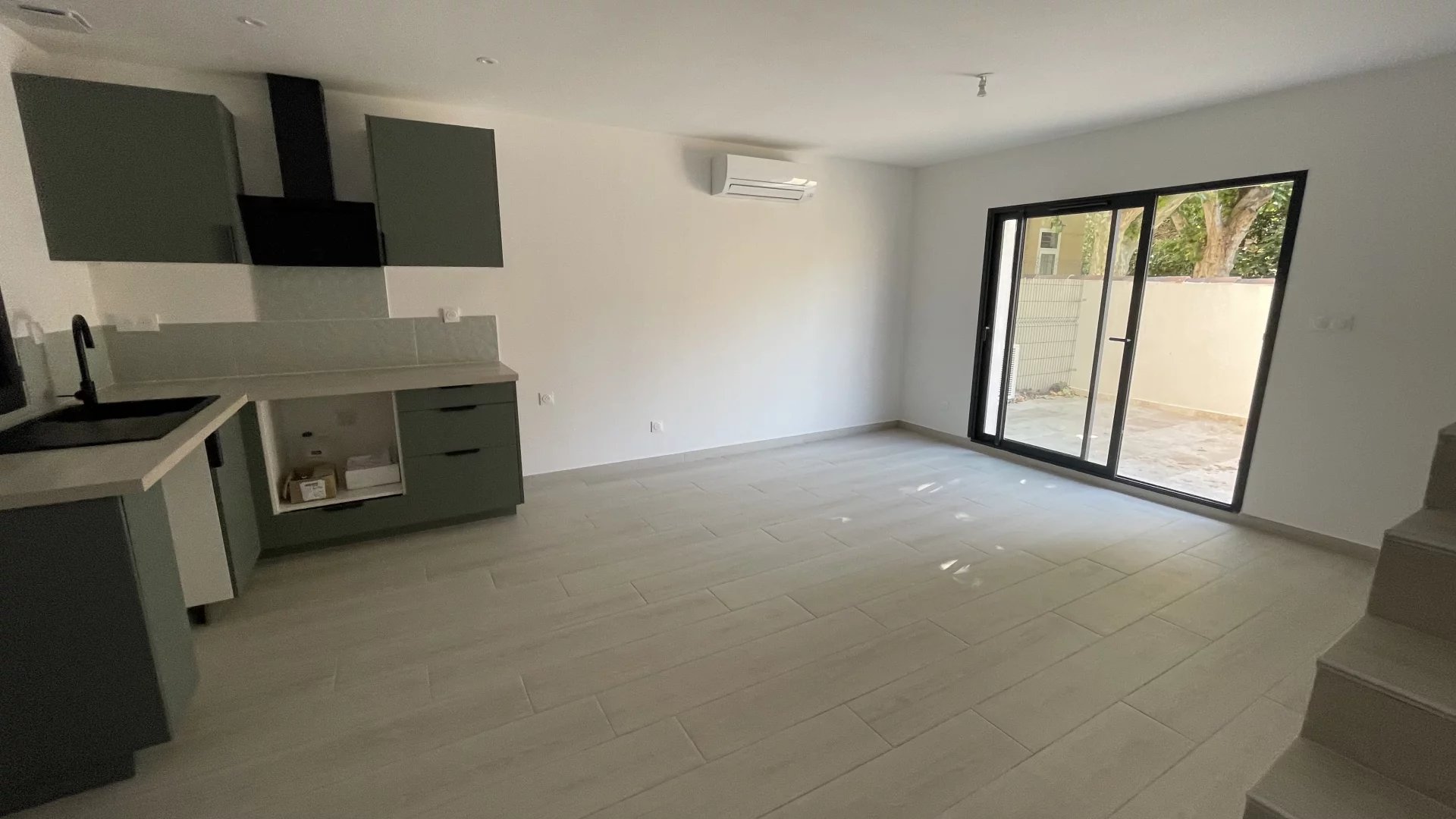 Maison de 2025, cette maison de type 2 avec sa terrasse se développe de la manière suivante: Niveau rez-de-terrasse, Expo Est/ OUEST: Un salon avec cuisine US équipée donnant sur une terrasse de 20 m2 A l'Etage: Une grande chambre avec salle d'eau Calme, lumineuse, climatisation réversible, proximité commodités