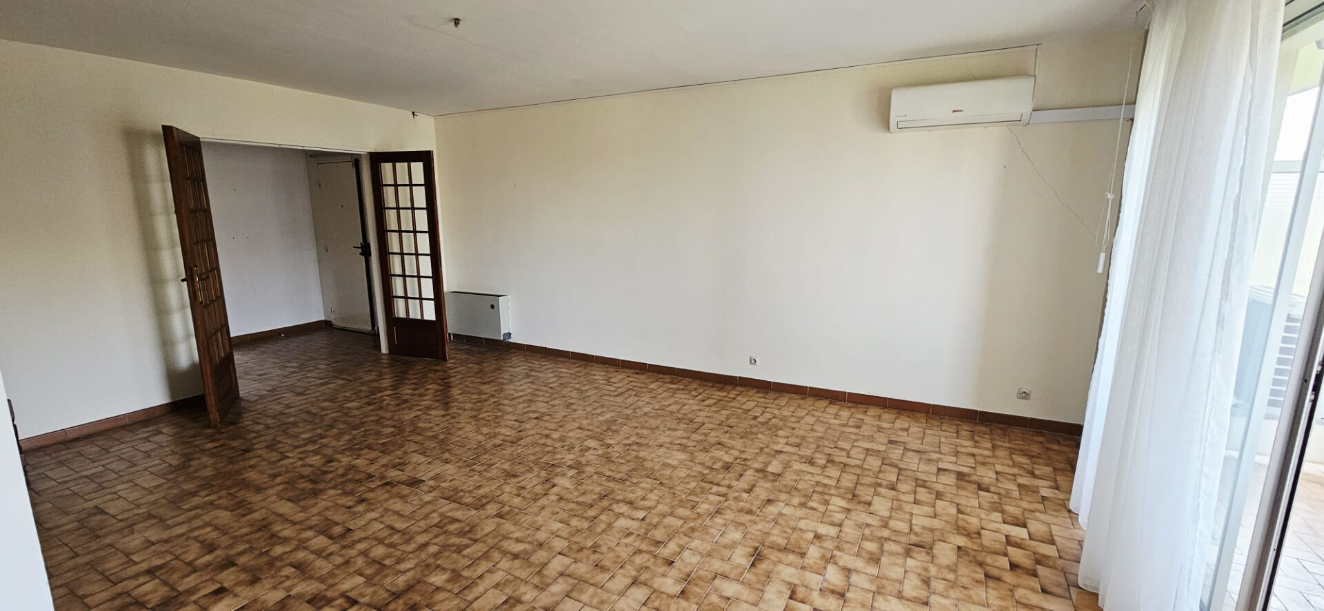 Appartement T3 situé au dernier étage d'une belle copropriété sécurisée avec un balcon qui ouvre sur une magnifique vue vers le Sud, et une loggia vers le Nord. Il est composé d'un salon, une cuisine, un renforcement (modifiable à moindre coup en 3eme chambre), une salle d'eau rénovée ainsi que deux chambres. Cet appartement possède un cellier en sous sol de 5 m², ainsi qu'un garage box de 15 m². Copropriété de 83 lots - dont 55 lots habitation. (Pas de procédure en cours). Charges annuelles : 1500 euros.