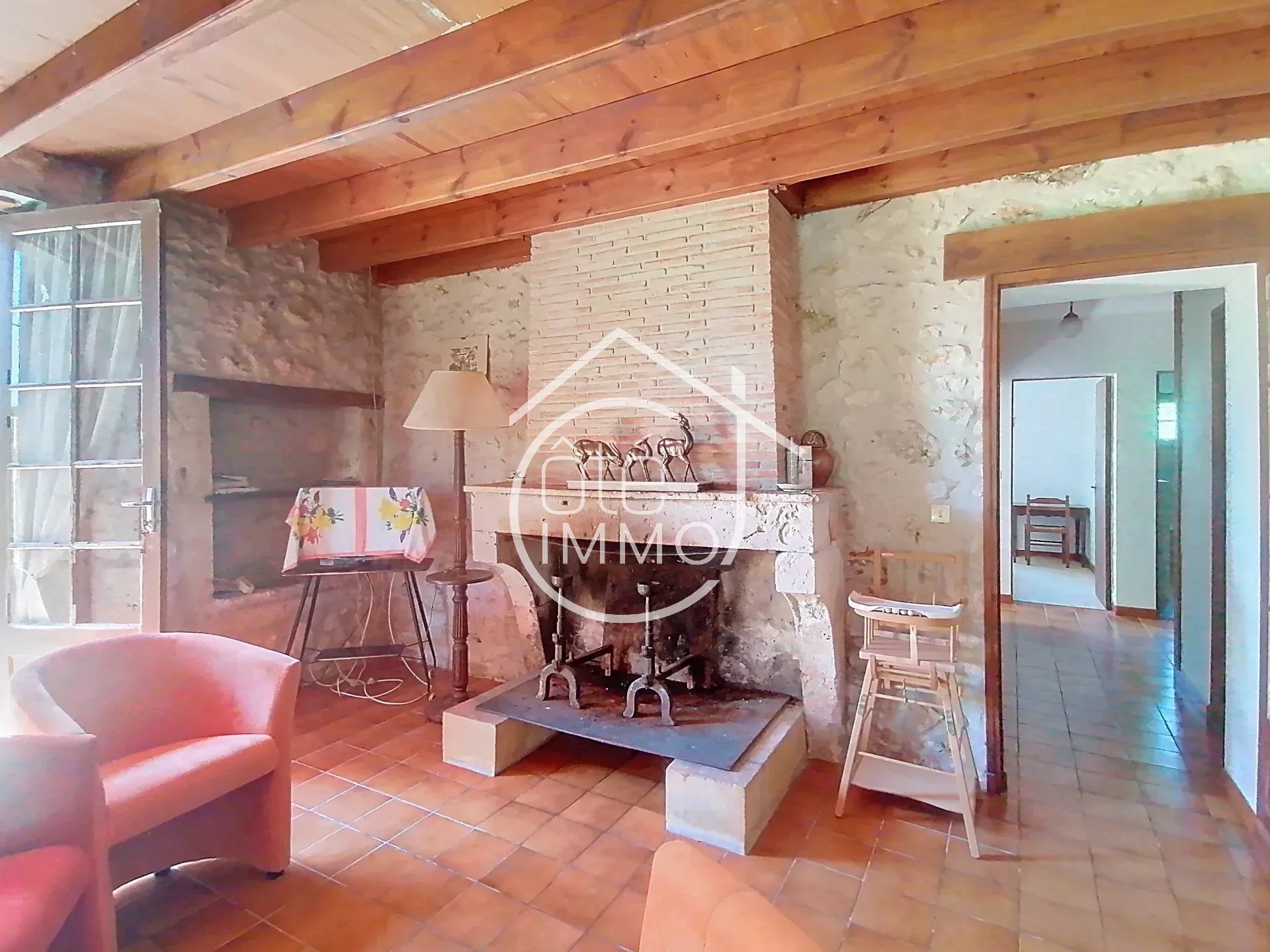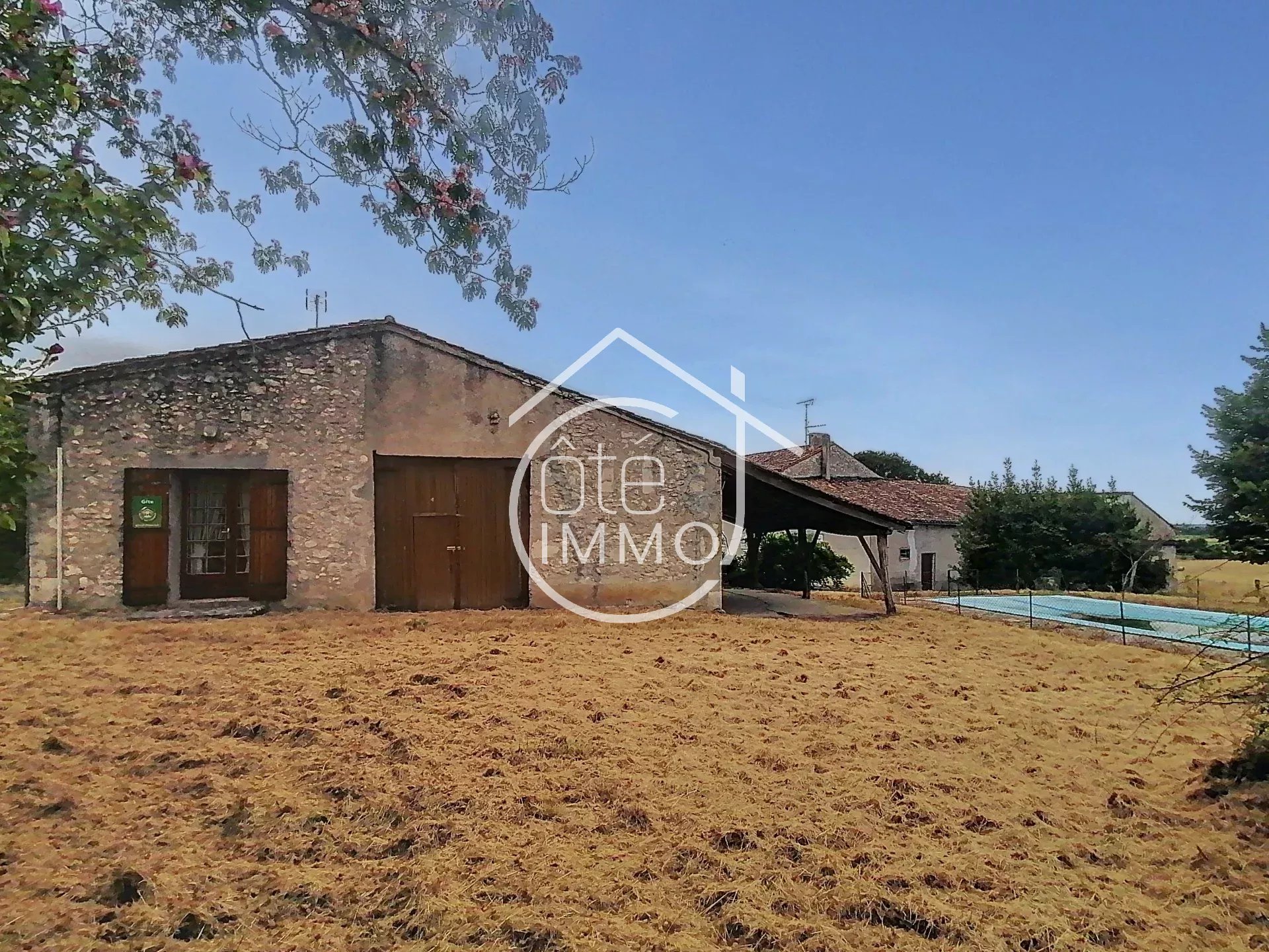 Côté Immo Pays Foyen vous invite à découvrir cette propriété rurale avec 2 puits, sur 13 ha d'un seul tenant, en nature de prés parsemés de bosquets. Elle vous propose 2 corps de bâtiments en pierre distincts avec leurs propres accès : - 1) une habitation principale sur 2 niveaux de 202 m² environ comprenant 7 pièces principales, à réhabiliter et agencer selon ses besoins (actuellement 5 pièces en rez-de-chaussée dont 2 chambres, et 3 chambres à l'étage). Diverses dépendances 309 m² (grange, chais, garage, remises, ateliers) s'articulent tout autour de cette 1ère habitation. - 2) un gîte 66 m² environ, propose en plain-pied 3 pièces principales dont 2 chambres. Une dépendance 73 m² environ sur l'arrière communicante, et un bel auvent à usage de terrasse couverte côté aire piscine. Un bel endroit, à faire revivre, en tant que propriété d'agrément avec possibilité de locations saisonnières, idéal pour accueillir nos amis les équidés, ou développer une activité agricole. - Ce bien ne nécessite pas de DPE