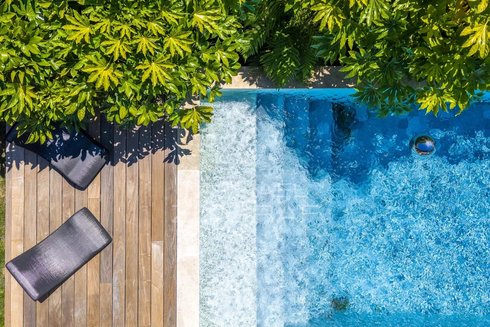 Michael Zingraf Bassin d’Arcachon présente, entre les plages de La Hume et de Meyran, cette maison contemporaine qui s’inscrit dans un environnement calme et arboré, protégé des regards. Le terrain de 1 600 m² accueille une construction récente, conçue dans une logique d’harmonie entre volumes, usages et finitions. L’ensemble développe plus de 420 m² dans une écriture architecturale précise et maîtrisée. L’entrée de la propriété annonce cette intention. Le portail en corten ouvre sur une façade sobre, ponctuée de vides maîtrisés et de rythmes pleins, agrémentée par une porte d’entrée en Red Cedar qui dialogue avec le paysage. Dès le seuil, un escalier en bois et métal, inséré dans une large baie vitrée, organise la perspective et capte la lumière naturelle. Les lignes sont nettes, les murs habillés avec discrétion, les rangements intégrés se fondent dans l’architecture, soulignant un parti pris de continuité. La pièce de vie articule la cuisine équipée, la salle à manger et le salon traversant, animé par une cheminée à double foyer. Le tout se prolonge par un salon d’été largement ouvert sur les terrasses et le jardin. La buanderie attenante à la cuisine, la cave à vin intégrée au mobilier, la fluidité des circulations et le choix des équipements participent d’un usage sans ostentation, pensé dans le détail. À l’écart, une chambre d’amis s’ouvre sur un jardin zen, offrant un espace de calme et d’autonomie. Plus loin, un véritable pool house accueille une cuisine d’été complète, un vestiaire et une douche extérieure, en lien direct avec la piscine et le jacuzzi. Les lignes sont simples, les matériaux choisis avec soin, les circulations intuitives, prolongeant l’esprit de maison de vacances habitable toute l’année. La suite principale, de plain-pied, combine proportions apaisées, vue sur les chênes, accès direct à la terrasse et à la piscine. Le dressing et la salle d’eau attenante s’inscrivent dans la continuité du volume, dans une logique de confort intime et discret. À l’étage, trois autres suites avec dressings et salles d’eau composent l’espace nuit. Certaines bénéficient de vues croisées sur le jardin, d’autres d’un accès à une terrasse en hauteur, renforçant le sentiment d’intimité et de dialogue constant avec le paysage. Les espaces annexes prolongent cette exigence : une salle de cinéma pensée comme un lieu dédié, une salle de sport équipée, un bureau, un garage pour deux véhicules avec espace pour vélos ou motos, ainsi qu’un stationnement extérieur. L’ensemble est conçu pour articuler vie quotidienne et réceptions, travail et détente. Le confort technique est total : la maison est entièrement climatisée par un système réversible intégré avec discrétion. La domotique centralisée, l’éclairage maîtrisé, les habillages muraux et les choix de quincaillerie traduisent un soin constant porté au détail. Même les équipements des salles d’eau — jusque dans ce que l’on attend le moins — témoignent d’une exigence silencieuse, orientée vers l’usage et le confort durable. Tout ici relève d’une composition cohérente et apaisée. Chaque choix, chaque ligne, chaque usage renvoie à une idée simple : habiter un lieu pensé comme une architecture à vivre, où la précision technique se conjugue à la fluidité des espaces, et où la qualité se mesure dans la durée.