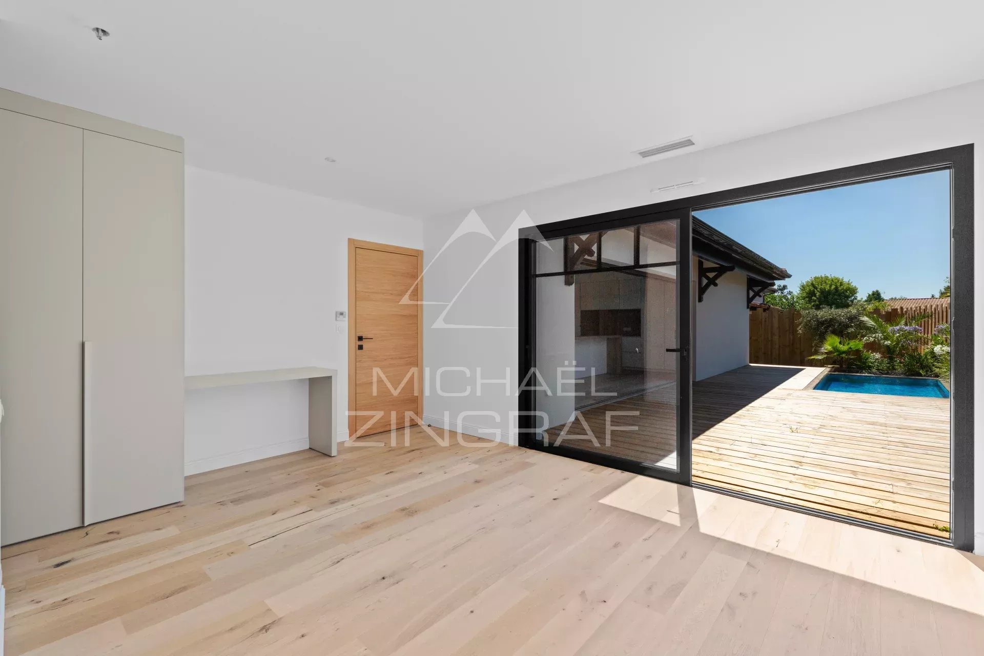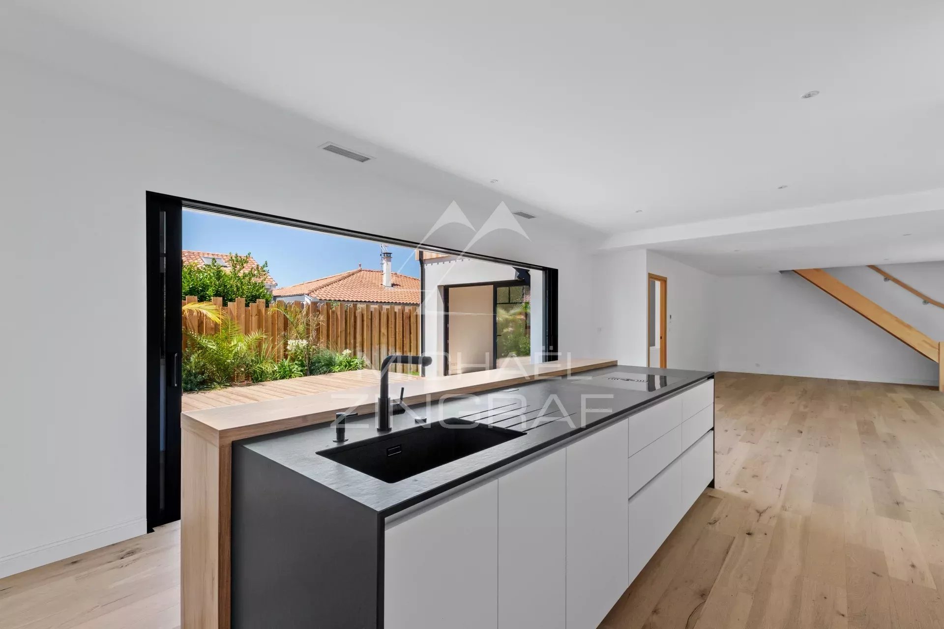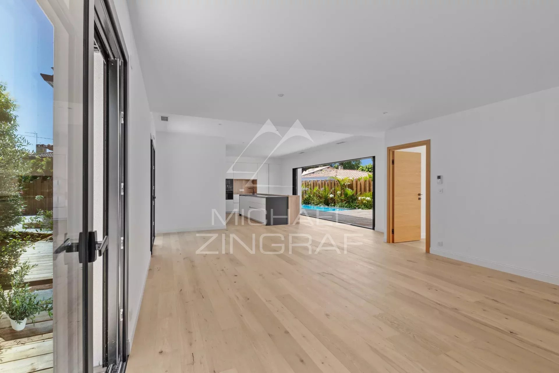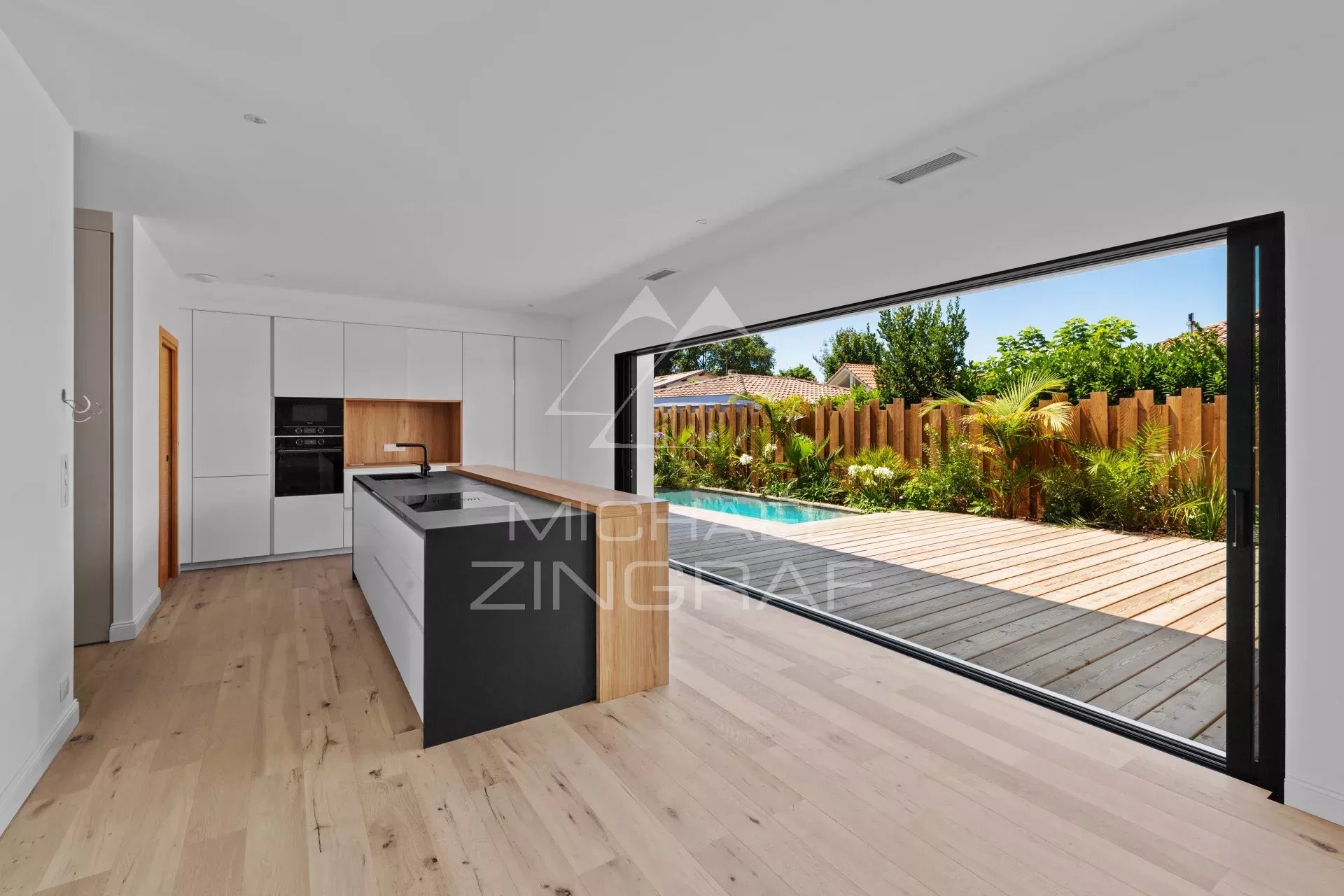 Michaël Zingraf Real Estate pour propose à la vente cette villa neuve sur le bassin d'Arcachon. Nichée en retrait de la rue, à l’abri des regards indiscrets dans un quartier recherché de LA TESTE-DE-BUCH cette somptueuse villa neuve allie modernité, confort et discrétion. D’une surface généreuse, elle s’ouvre sur une vaste pièce de vie de 78 m², intégrant une cuisine contemporaine entièrement aménagée et équipée, pensée pour les amoureux de design et de fonctionnalité. La suite parentale en rez-de-chaussée offre un véritable espace privé avec salle d’eau raffinée et dressing sur mesure. À l’étage, trois belles chambres aux volumes optimisés viennent compléter l’espace nuit, accompagnées d’une salle d’eau indépendante et de toilettes séparées. À l’arrière de la propriété, une piscine intimiste prolonge harmonieusement l’espace de vie extérieur. Un garage fermé ainsi qu’un cellier complètent les prestations de cette villa d’exception.