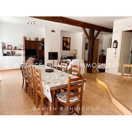 Maison ancienne comprenant au rez-de-chaussée : entrée, grand séjour avec cheminée insert, cuisine aménagée ouverte, une chambre, couloir, salle de bains (baignoire et douche), salle d'eau et 2 wc : à l'étage : une chambre et une grande pièce d'environ 80 m² (dortoir).