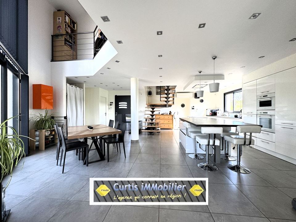 Monistrol sur Loire 43120 maison à vendre. Dans un environnement calme et pavillonnaire, Profitez d'une opportunité unique avec cette belle maison contemporaine de 145 m² habitable, construite sur un terrain clos et plat de plus de 1200 m² avec piscine chauffée et son pool house. Au rez de chaussée : un espace de vie composé d'un salon/séjour avec cheminée double face donnant sur une grande cuisine haut de gamme entièrement équipée. Depuis cet espace accédez directement aux deux terrasses dont une couverte. Une suite parentale avec dressing et sa salle d'eau privative. A l'étage, vous trouverez : une mezzanine, 2 chambres avec placards, une salle d'eau avec douche italienne. Vous disposez d'un garage double motorisé et carport. Bénéficiez de prestations de qualité : portail automatique, alarme, chauffage par le sol (Pompe à Chaleur) et climatisation réversible, cuisine avec ilot central, aspiration centralisée, fermeture des volets centralisée, huisserie en aluminium, piscine au sel et sécurisée..... Idéalement située, retrouvez toutes les commodités à deux pas de chez vous : crèche, écoles, médecins, commerces... Prix : 478000 euros honoraires charge vendeur. Contact Curtis Immobilier agence de Monistrol 04.71.75.93.60. Plus d'infos sur curtis-immobilier.fr