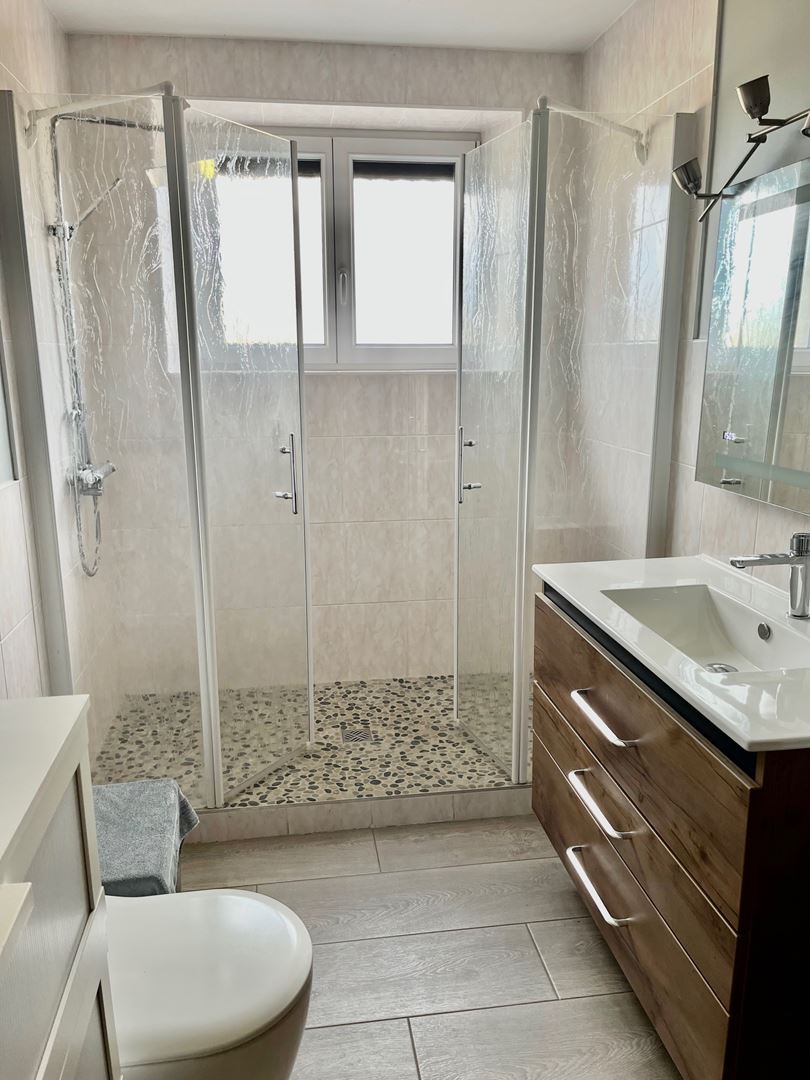 Maison de village trés lumineuse, rénovée sur 55 ares de terrain plat comprenant :