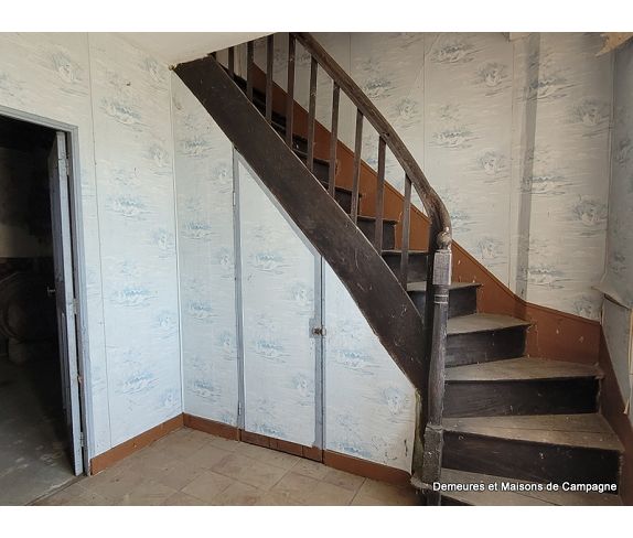 Orientée Sud, la maison comprend au rez de chaussée, entrée avec escalier, débarras, pièce avec évier et cheminée.