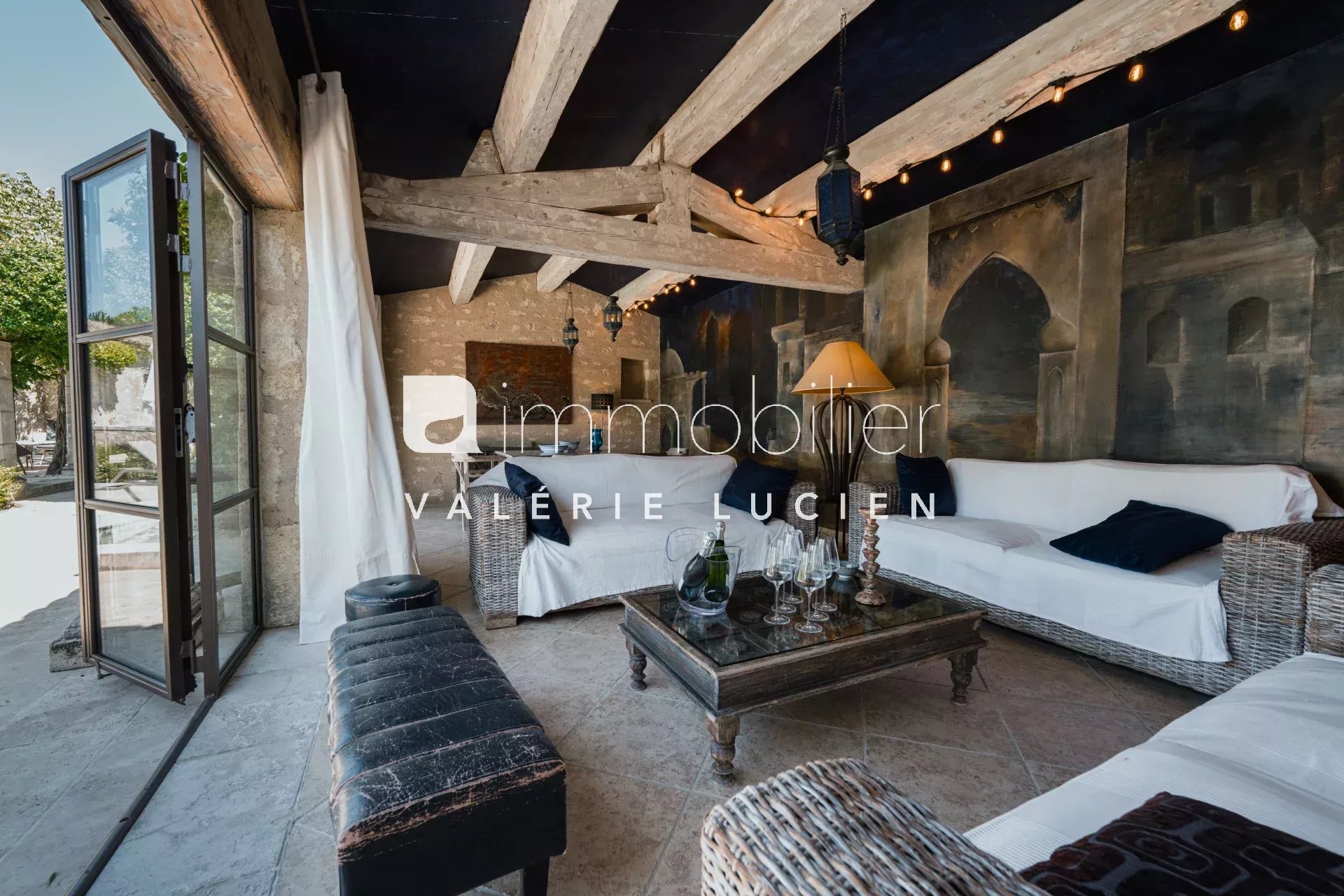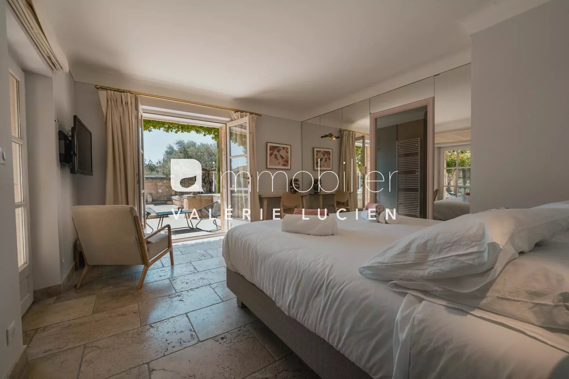 À seulement 3 minutes à pied du pittoresque centre village d’Eygalières, ce mas d’exception de 450 m² offre un cadre idyllique face aux Alpilles. Alliant charme, confort et prestations haut de gamme, il invite à la détente avec ses vastes espaces intérieurs et extérieurs, son magnifique patio ombragé, sa piscine et ses espaces sports et bien-être. Pensé pour des séjours inoubliables en famille ou entre amis, chaque détail a été conçu pour un confort absolu. AU REZ-DE-CHAUSSÉE - Hall d'entrée, vestiaire, wc invités - Buanderie avec lave et sèche-linge, fer à repasser et machine à glaçons. - Accès au garage disposant d'un second lave linge, un réfrigérateur et un congélateur. - Cuisine chaleureuse et parfaitement équipée avec cheminée, télévision et nombreux équipements haut de gamme : deux réfrigérateurs avec bac congélation, cave à vins, four vapeur, four micro-ondes, grand fourneau à gaz cinq feux et deux lave-vaisselle. Ouverture sur une terrasse intime orientée à l’Est, idéale pour le petit-déjeuner, avec plancha gaz, fontaine et espace repas. - Salon avec cheminée, grande bibliothèque, deux canapés, méridienne, télévision donnant sur la grande terrasse ombragée. - Salle à manger avec grand vaisselier, table pour recevoir 10 personnes. - 1 chambre Master avec lit de 180 cm, dressing, salle d’eau avec douche et wc séparés, donnant sur la terrasse sud. - 1 chambre avec lit de 180 cm, bureau, placard, salle d'eau avec douche hammam wc, donnant sur la terrasse ouest avec fontaine. - 1 chambre avec lit de 180 cm ou 2x 90 cm, bureau, placard, salle d'eau avec douche et wc, donnant sur la terrasse ouest. - 1 chambre avec lit de 90 cm, salle d'eau et wc, donnant sur la terrasse ouest. - 1 studio indépendant climatisé avec lit de 180 cm, tv, placard, kitchenette aménagée, salle d'eau wc, donnant sur une terrasse. - Annexe indépendante climatisée aménagée en bureau idéale pour télétravail. À L'ÉTAGE - Espace fitness donnant sur une terrasse tropézienne, équipée d’un rameur et d’un vélo spinning et d’un studio gym / yoga plus poids. - Petite terrasse tropézienne. EN SOUS SOL - Salle de jeux home cinéma, billard et bar en sous sol LES EXTÉRIEURS - Grande terrasse avec salon d'été, et espace dînatoire ombragé - Salle à manger d’été s'ouvrant sur le patio ombragé et piscine. Grande table pouvant recevoir 12 à 16 personnes. - Piscine de 11x4 m, chauffage sur demande (avec supplément) et sécurisée par volet roulant. - Jacuzzi chauffé sur demande (avec supplément) - Parking privatif pour 2 véhicules ÉQUIPEMENT Intérieur : - Plancher rafraichissant et chauffant - Lit bébé et chaise haute sur demande Extérieur : - Parasols, bains de soleil, transats - Barbecue au gaz - Ping-pong, jeu de fléchettes SERVICES INCLUS - Linge de maison et serviettes de piscine, avec un changement dès 15 jours de location - 3h de ménage hebdomadaire le mardi, 4h de ménage le samedi dès 15 jours de location, ménage de fin de séjour - Maintenance piscine et entretien du jardin DIVERS - Piscine chauffée sur demande (avec supplément) - Animaux sur demande - Fumeur en extérieur uniquement - Connexion internet fibre avec répéteurs WIFI en intérieur et extérieur - Capacité d'accueil de 9 personnes DISPONIBILITÉS Toute l'année TARIFS De 5 700 € à 11 700 € CONDITIONS DE RÉSERVATION Acompte de 30% du montant de la location lors de la réservation Solde du montant de la location au plus tard 30 jours avant l'arrivée Dépôt de garantie de 4 000 €