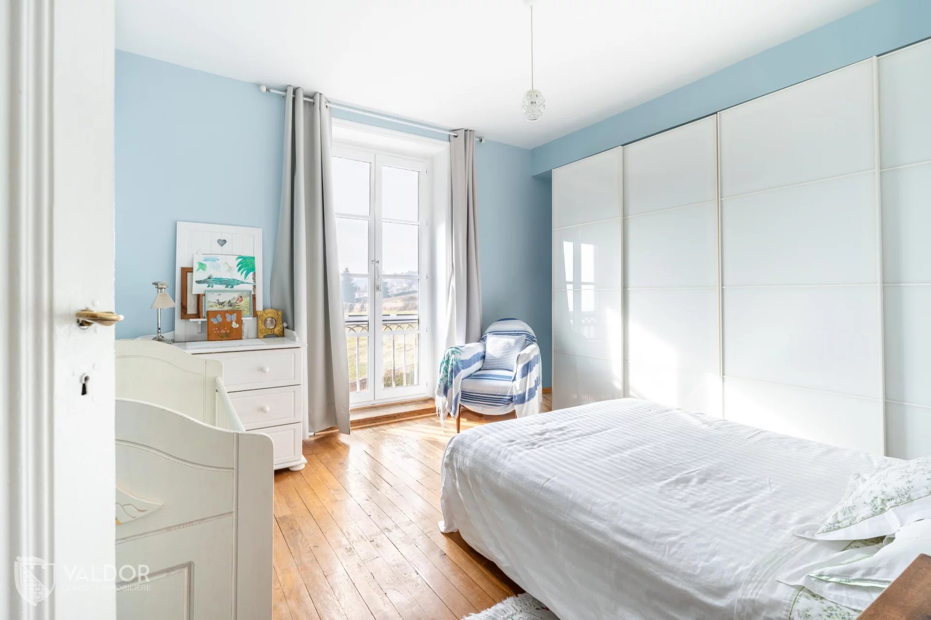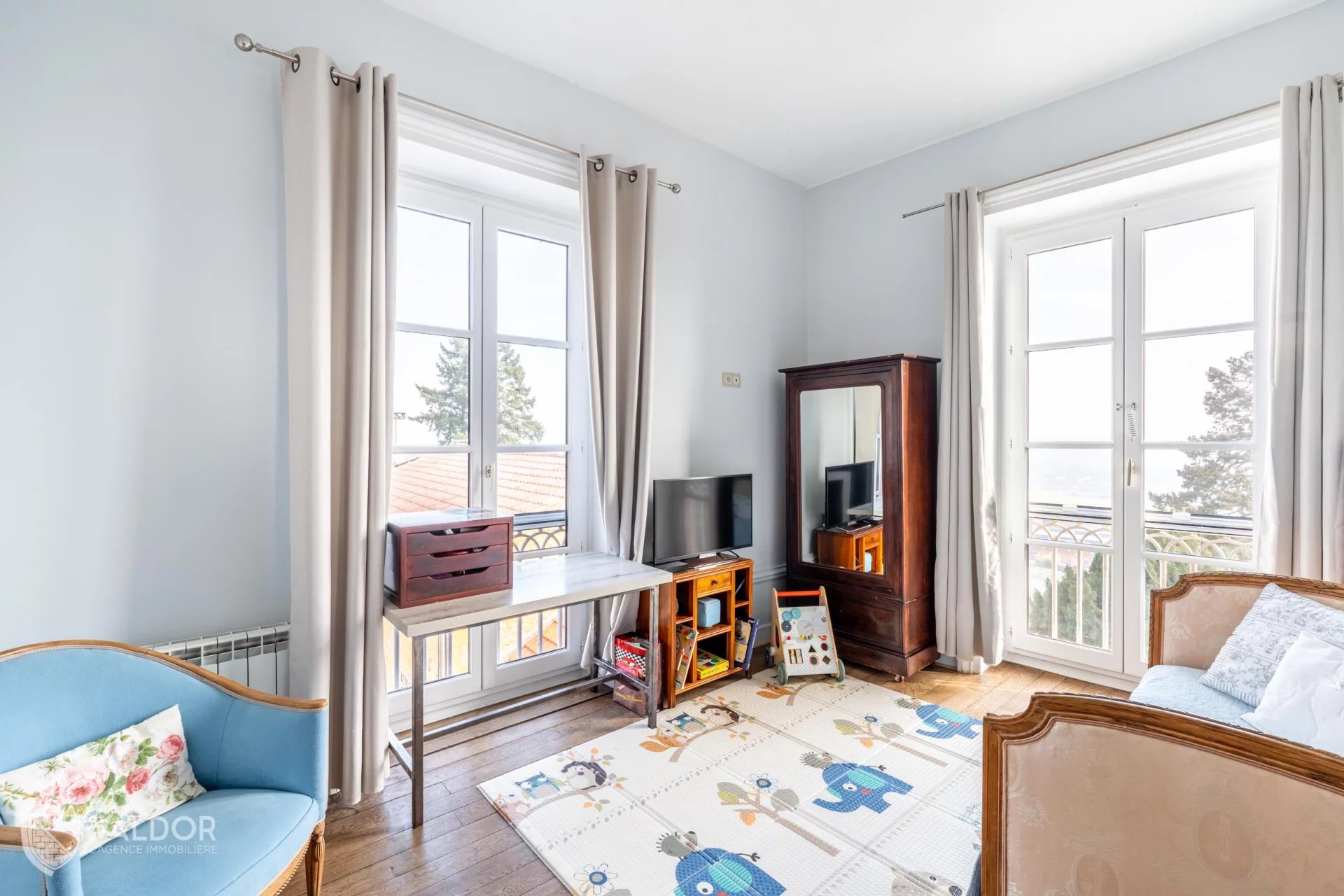 Sur les hauteurs de Pommiers, joli village du Beaujolais, à 10 minutes de Villefranche/Saône, à 35 minutes de Lyon, Je vous propose de découvrir ce magnifique appartement de charme, spacieux de 151 m² idéalement situé sur la Commune de Pommiers à quelques minutes seulement de toutes les commodités (gare, bus, commerces, écoles). Entièrement rénové avec goût en 2021, vous tomberez sous le charme d'une bâtisse en pierres dorées (17ème siècle) et le confort du contemporain. Vous apprécierez un espace lumineux dans chaque pièce, les cheminées de marbre, les parquets et carreaux de ciments authentiques, les plafonds hauts avec moulures et le charmant hall de réception donnant sur le jardin de 146 m² avec jolie vue dégagée au sud. Au rez-de-chaussée vous découvrirez un magnifique salon avec sa cheminée et une cuisine entièrement équipée donnant sur une très belle salle à manger. Un majestueux escalier en pierres dessert un espace bibliothèque ainsi que 3 belles chambres, une salle de douche et un bureau avec balcon et vue sur le Mont Blanc à l'Est. Cette petite copropriété de 9 habitations permet à chacun son indépendance et sa tranquillité tout en étant en sécurité. 2 places de parking complètent le bien. Chauffage électrique et climatisation. DPE:D GES:B Ce bien unique est proposé au prix de 465 000 euros FAI. Veuillez contacter Michèle MANE au 06 08 65 02 98, Consultante en Immobilier, RCP n° VD 7.000.002/n° ACI00729 pour toutes demandes complémentaires et visite de ce bien. A visiter sans tarder, Bien rare sur le secteur. Please, do not hesitate to contact me for more information. Thank you. Les informations sur les risques auxquels ce bien est exposé sont disponibles sur le site Géorisques: www.georisques.gouv.fr