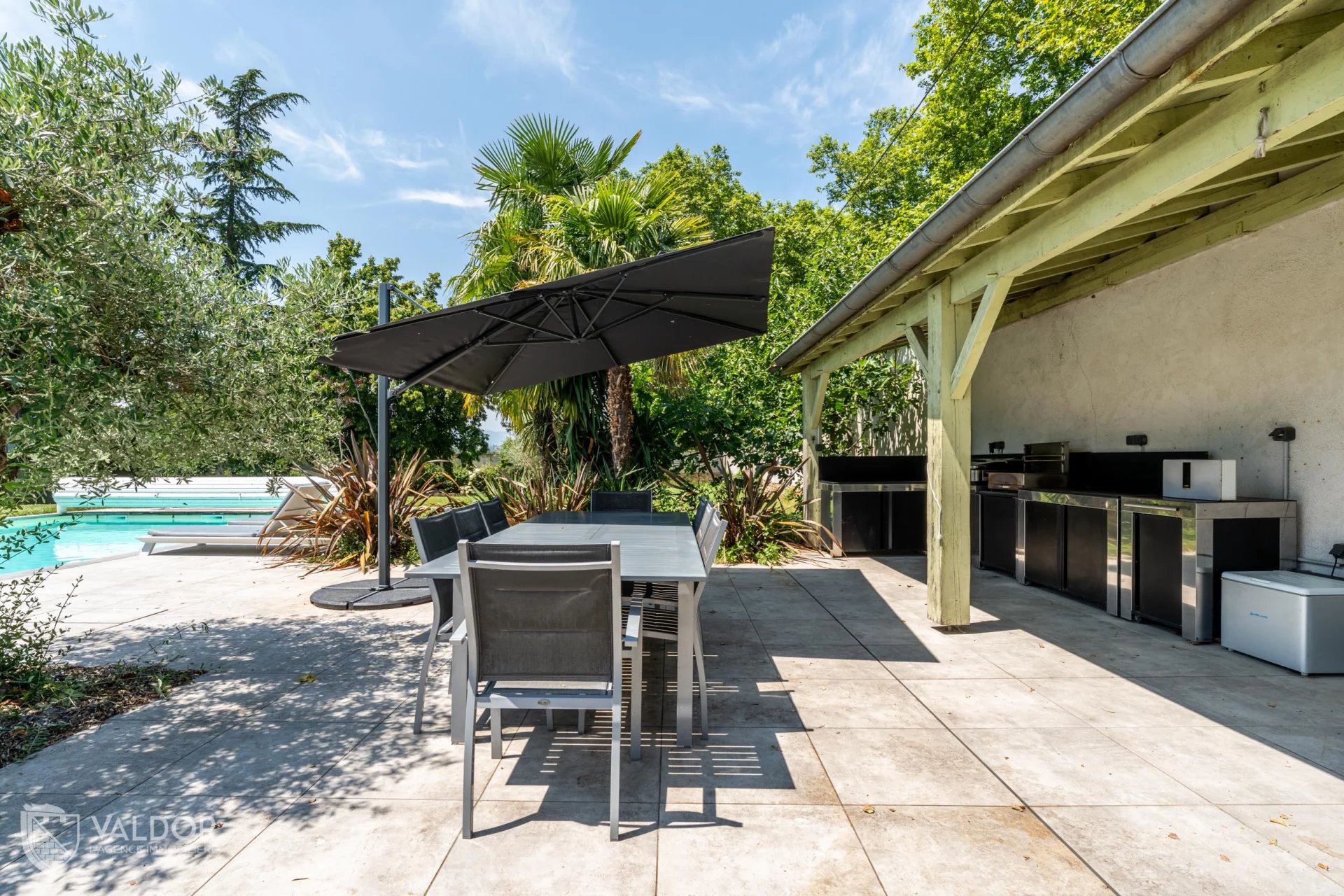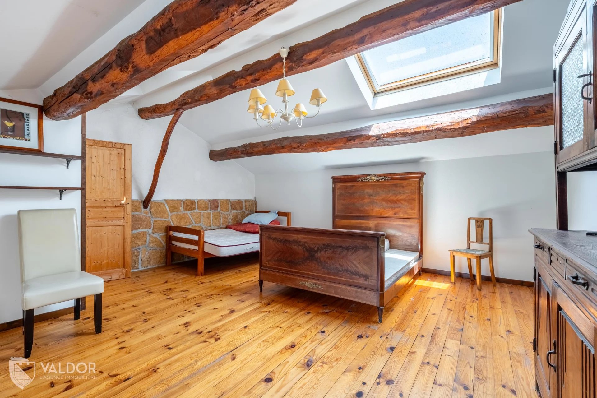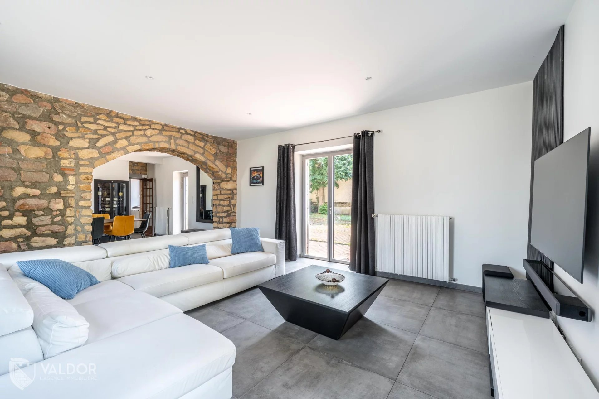VILLEFRANCHE SUR SAÔNE (69400) – Exclusivité Gwenaele DAHOUI. Sur une parcelle paysagée de 1 860 m², cet ancien corps de ferme, rénové en 2022, développe 240 m² habitables ainsi que 165 m² de dépendances à aménager selon vos besoins. De plain-pied sur les extérieurs, les espaces de vie d’environ 60 m² comprennent un séjour / salle à manger profitant d’une triple exposition et d’une cuisine indépendante, entièrement équipée. Viennent compléter le rez-de-chaussée : une chambre de 18,5 m², une salle d’eau et une buanderie. A l’étage, 3 grandes chambres ainsi qu’une salle de bains avec douche et baignoire. Le dernier niveau, non rénové, se compose de 2 pièces supplémentaires (26m² chacune) ainsi que de sanitaires, laissant entrevoir un beau potentiel. Attenante à l’habitation, une dépendance de 165 m² où les ouvertures et les huisseries sont déjà existantes, offre de nombreuses possibilités d’aménagement : atelier, bureau, appartements indépendants, … Le jardin, au calme absolu, est aménagé d’un espace détente avec piscine (14x6) et cuisine d’été, un terrain de pétanque, un auvent, une aire de stationnement avec borne de recharge, ... Pour tout renseignement complémentaire ou visite, veuillez contacter Gwenaele DAHOUI EI au 07 87 63 82 29 - Agent commercial inscrit au RSAC Villefranche Tarare 984 567 412 - RCP n° ACI27335 Les informations sur les risques auxquels ce bien est exposé sont disponibles sur le site Géorisques : www.georisques.gouv.fr