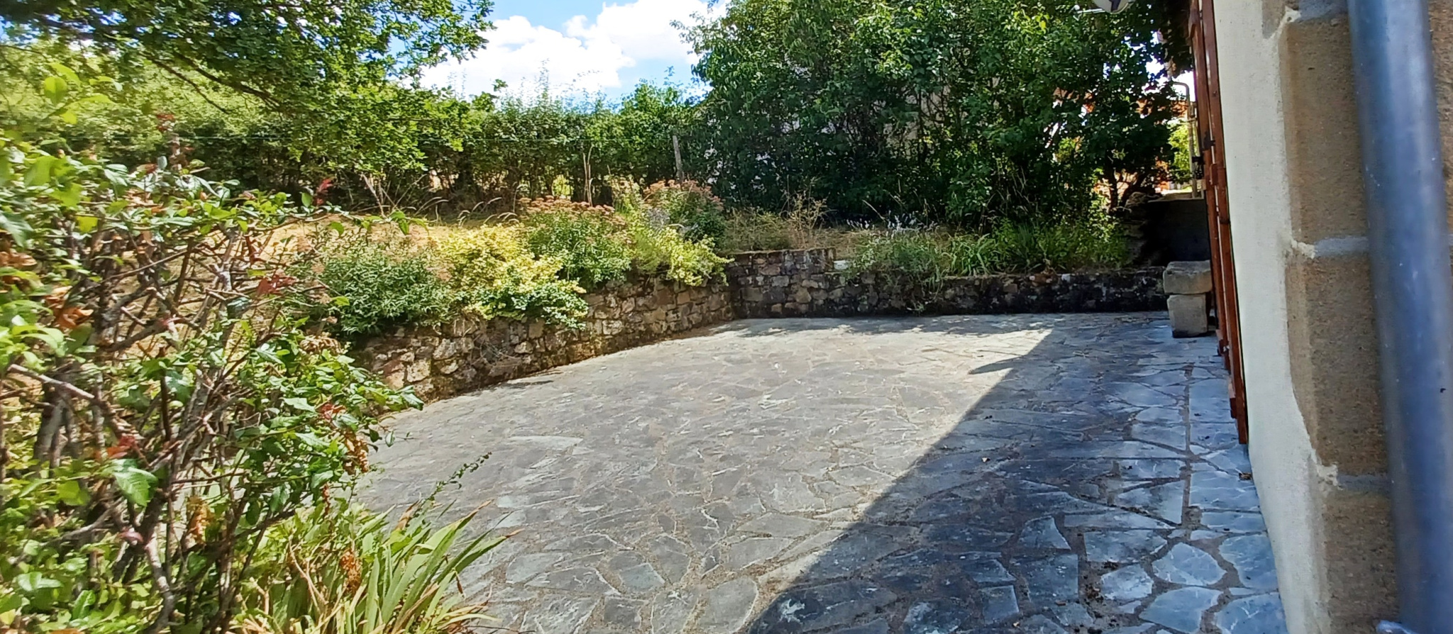 Sur la cour fermée par muret et portail, dépendances basses, puits et chemin accédant à une agréable terrasse dallée de pierres, ouverte sur jardin et pré 2300 m2. Peut être vendue entièrement meublée, idéale pour s'installer sans délai en résidence principale ou secondaire.