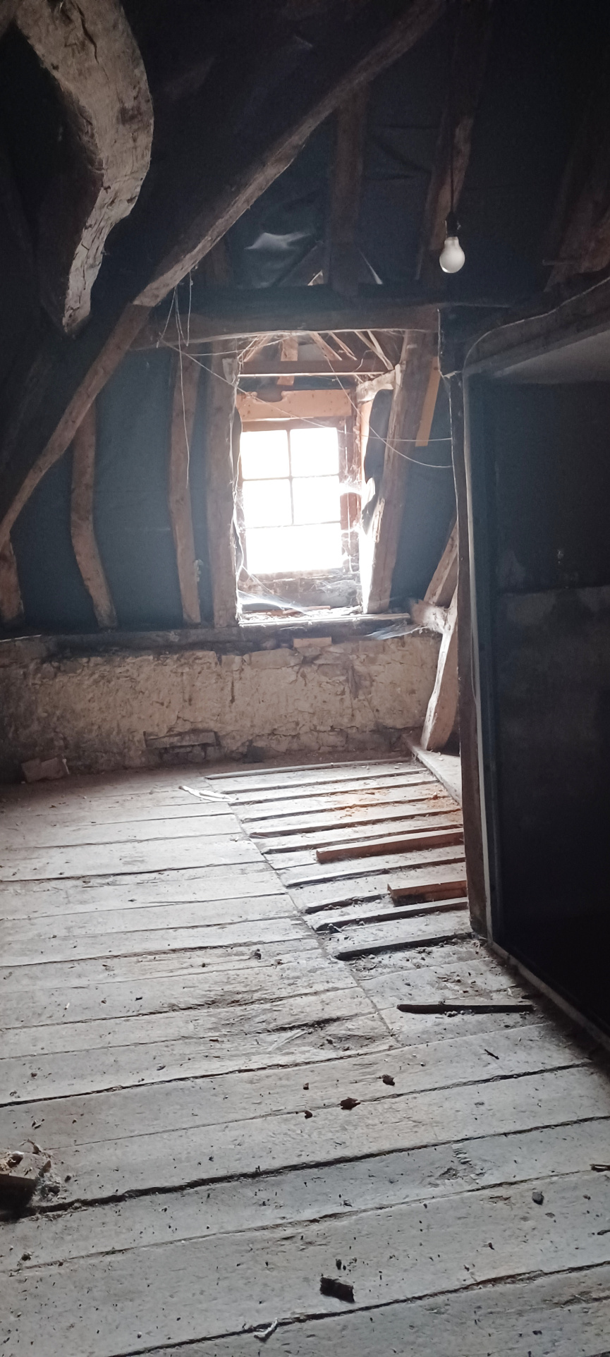 Très beau potentiel avec cheminées de briques, parquets, tomettes. Grenier aménageable au-dessus, dont une partie semi-aménagée.
