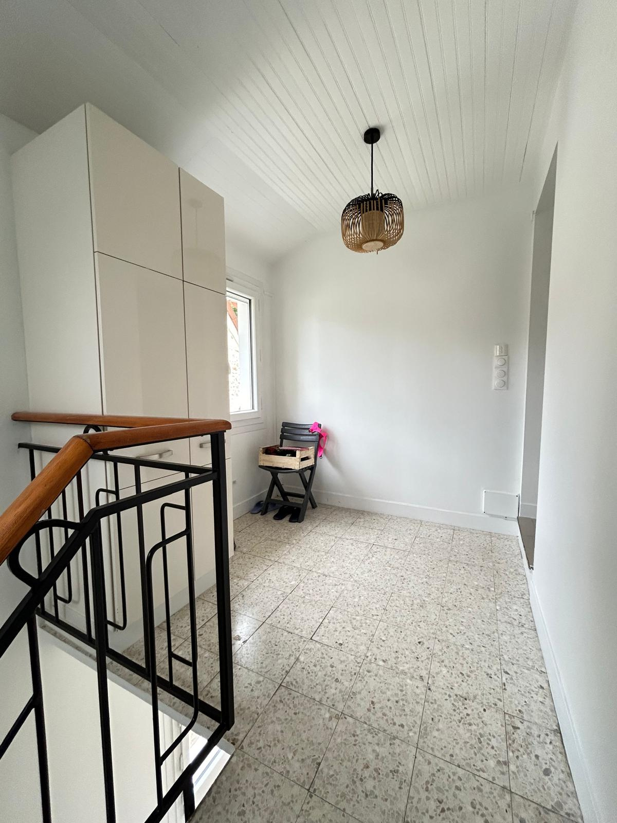 Un Spacieux et lumineux appartement F5 débute par un hall dont l'escalier méne au 1er étage. Un palier vous emméne dans un couloir qui dessert un beau salon/séjour avec