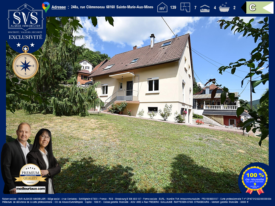 En EXCLUSIVITÉ, nichée au coeur du Val d'Argent, la charmante commune de Sainte-Marie-aux-Mines (68160) séduit par son cadre naturel préservé, son riche patrimoine historique et son ambiance paisible. Cette ville d'Alsace, célèbre pour son passé minier, offre un cadre de vie agréable entre montagne et nature, tout en restant accessible depuis les grandes agglomérations grâce à un réseau routier bien développé. La commune bénéficie également de toutes les commodités essentielles : établissements scolaires, commerces de proximité, supermarchés, professionnels de santé, équipements sportifs, ainsi qu'un tissu associatif dynamique.