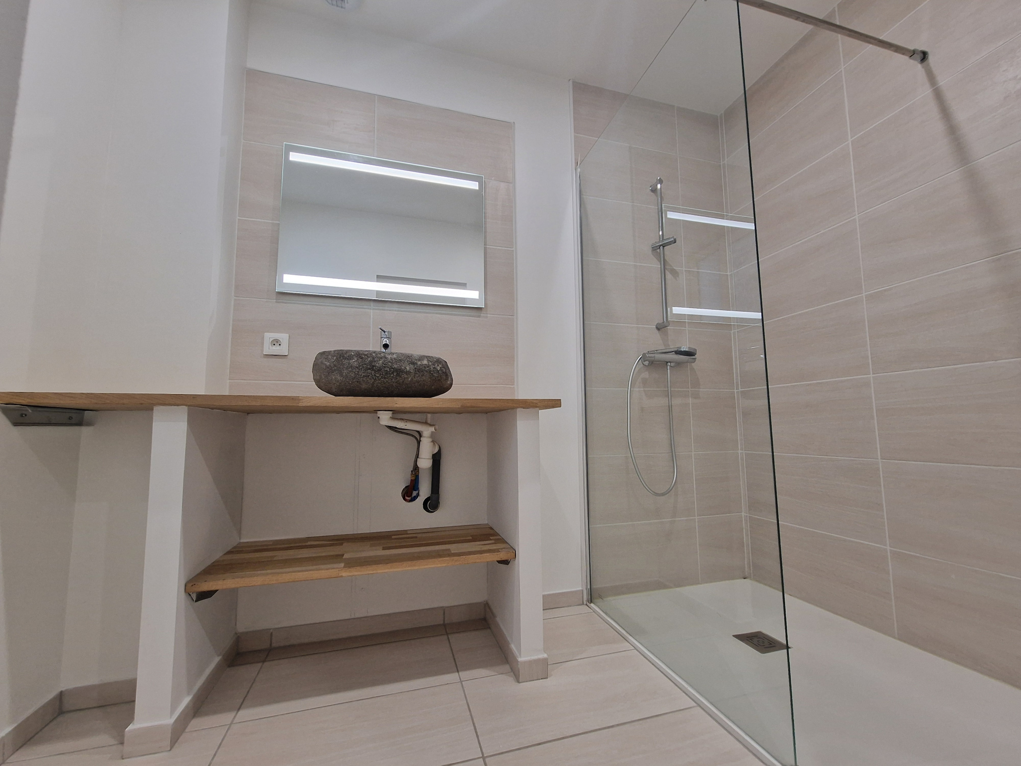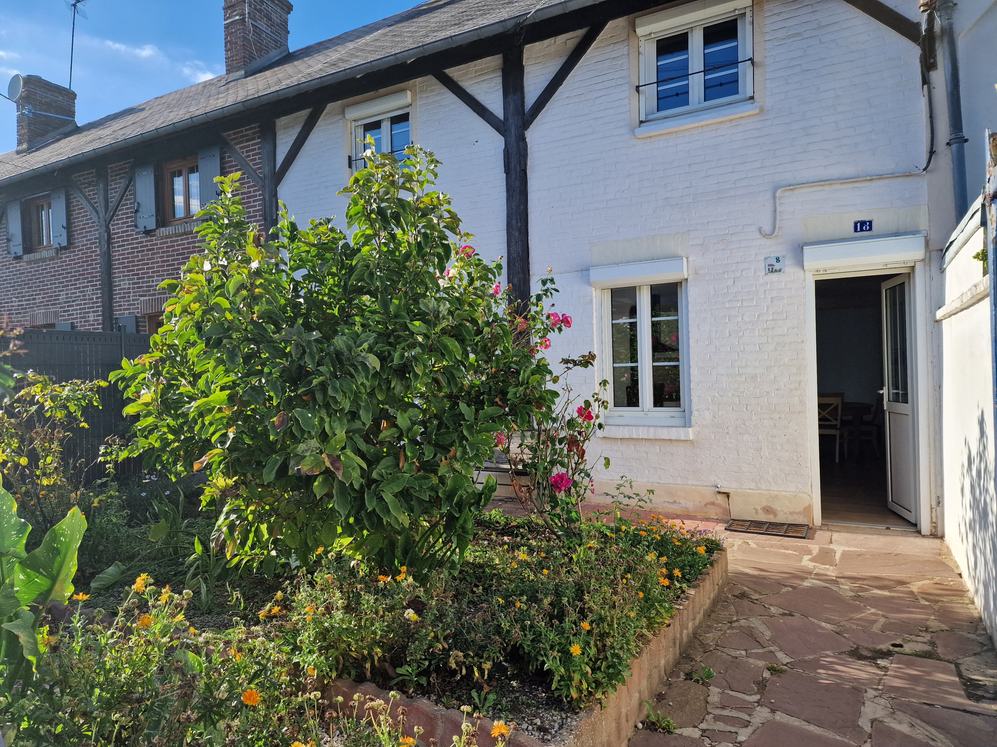 Une entrée sur cuisine aménagée et équipée, chambres, salle de douches, wc indépendant, séjour donnant sur jardin avec terrasse.