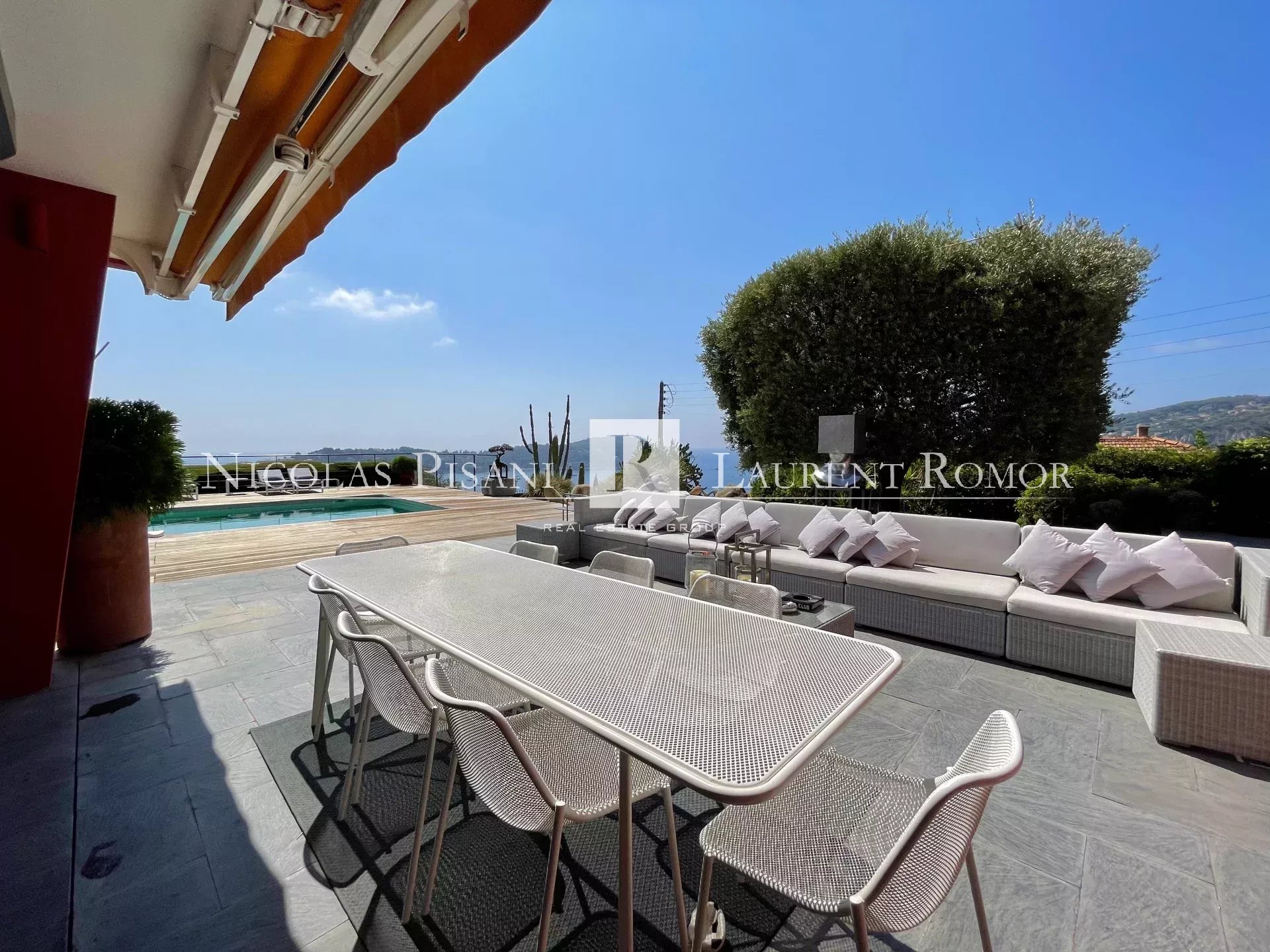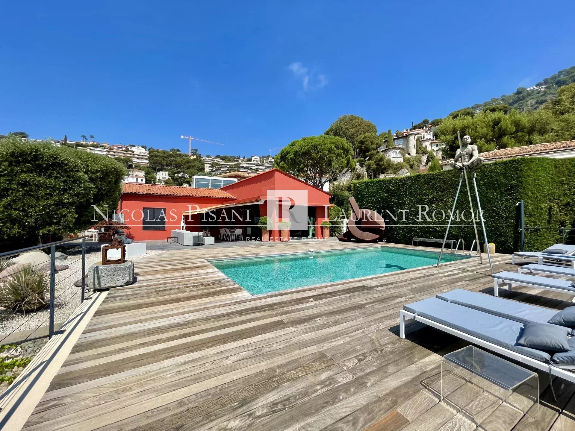 VILLEFRANCHE SUR MER Settore Agglomération Contemporaneo Superficie 150 m² [S. Terrain] 900 m² Casa Livello Piano terra, Vista Panoramico, Esposizione Sud est, Stato generale Eccellente, Cucina Equipaggiata, Riscaldamento Gasolio, Affitto Ammobiliato Camera 3, Bagni 1, Doccie 1, Wc 2, Terrazze 1, Parcheggi 3 Circondario Casa Individuale Costi Prestazioni Allarme, Dipendenza, Vetri doppi, Quartiere residenziale, Piscina, Portone automatico, Residenza chiusa, Tapparelle elettriche Locali