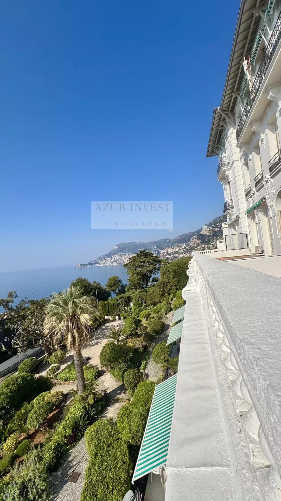 Votre agence Azur Invest vous propose à la vente quartier Cap Martin un appartement 3 pièces de 87m2 à rénover dans un palace belle époque . Il se compose d'une entrée et dégagement, cuisine séparée pouvant être ouverte sur le séjour donnant sur large terrasse de 27m2 avec vue imprenable sur la mer et Monaco. Les pièces disposent de belles hauteurs sous plafond de 4m10 pouvant être exploitée pour une mezzanine, double vitrage . Demeure bourgeoise, à 10min de la principauté en voiture. Une cave complète ce bien, stationnement cour intérieure de la copropriété sécurisée avec accès direct . ( photos de l' intérieur modifiées Home staging virtuel ) Notre avis: Beau potentiel pour cet appartement bourgeois dans un quartier recherché offrant une vue époustouflante.