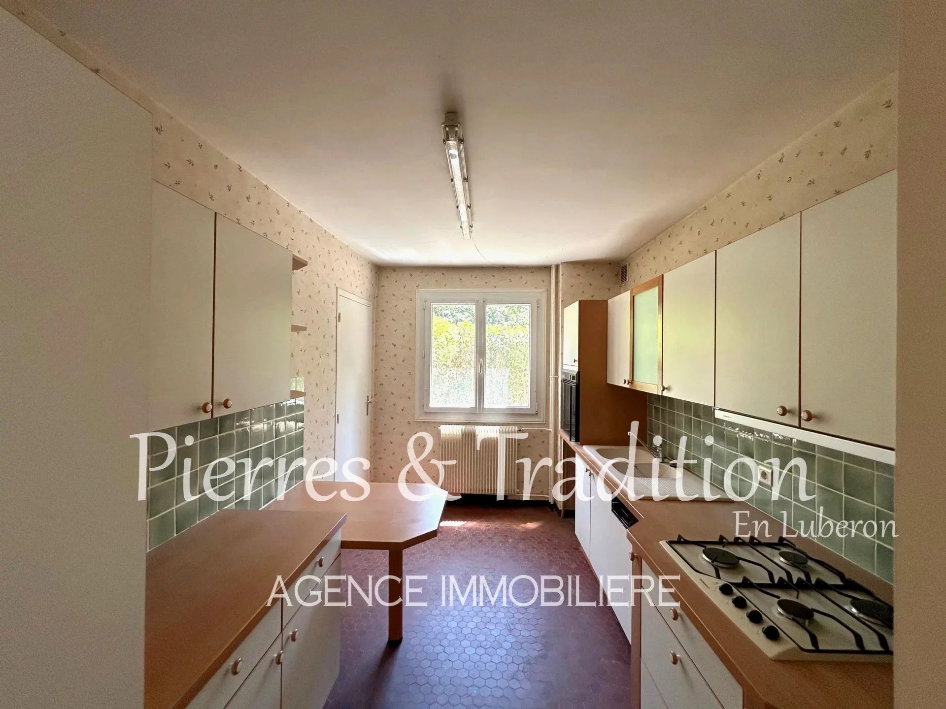 Situé sur la commune d'Apt, à seulement quelques minutes à pied du centre-ville et de ses commodités, bel appartement en rez-de-chaussée dans une résidence calme, sécurisée et bien entretenue. D’une surface bâtie de 111 m², dont 93 m² habitables, ce bien offre des volumes confortables et une disposition fonctionnelle. Il se compose d’une pièce de vie lumineuse exposée plein sud, d’une cuisine indépendante et semi-équipée, de deux chambres, d’un dressing, d’une salle d’eau et de toilettes. Une terrasse agréablement orientée prolonge l’espace de vie et permet un accès direct au jardin commun de la résidence, un véritable atout pour ce type de bien. L’appartement bénéficie également d’un garage fermé de 15,90 m², d’une cave ainsi que de deux places de stationnement privatives. Fonctionnel, bien situé et baigné de lumière, ce bien réunit confort et praticité dans un environnement serein.