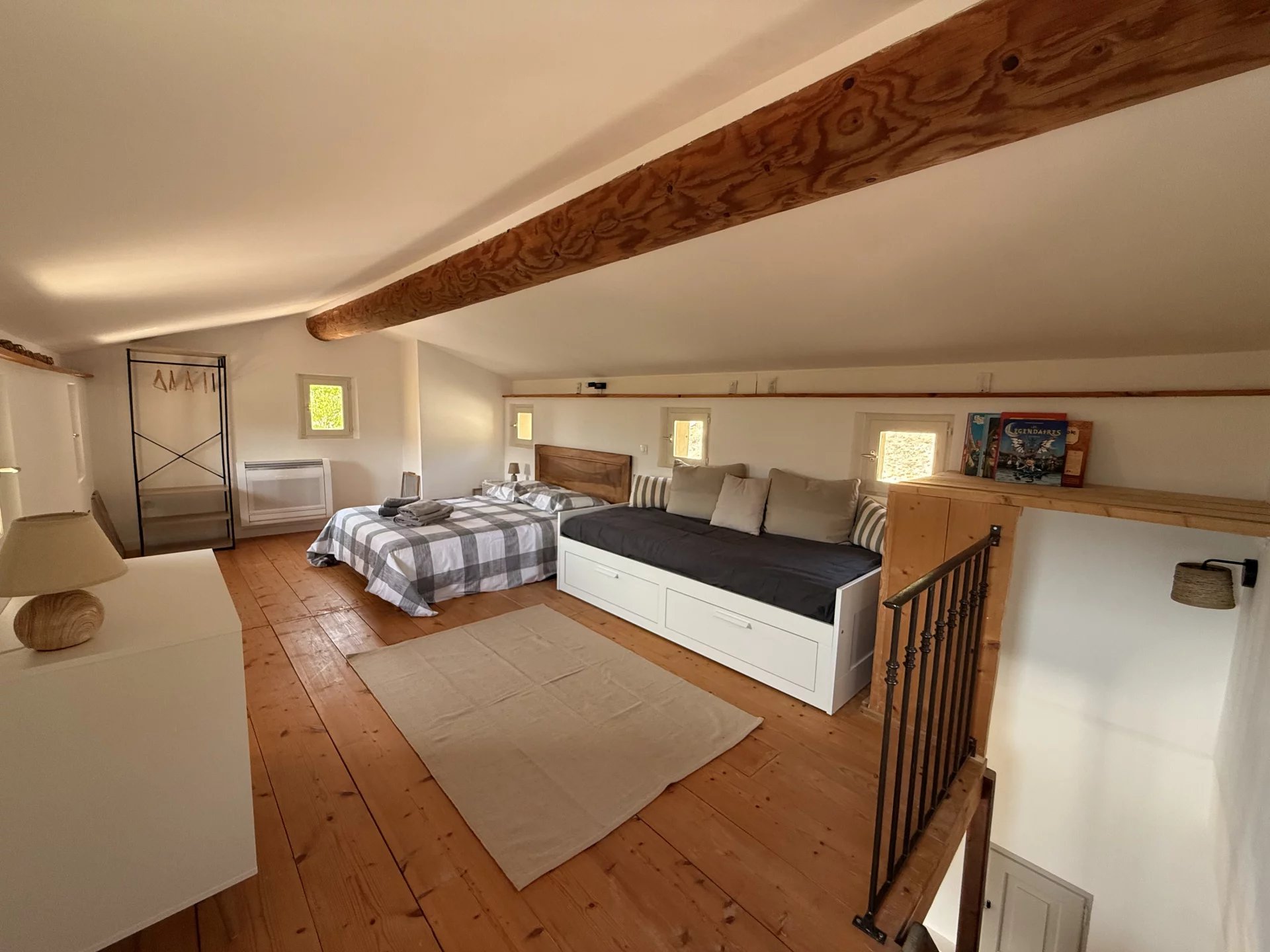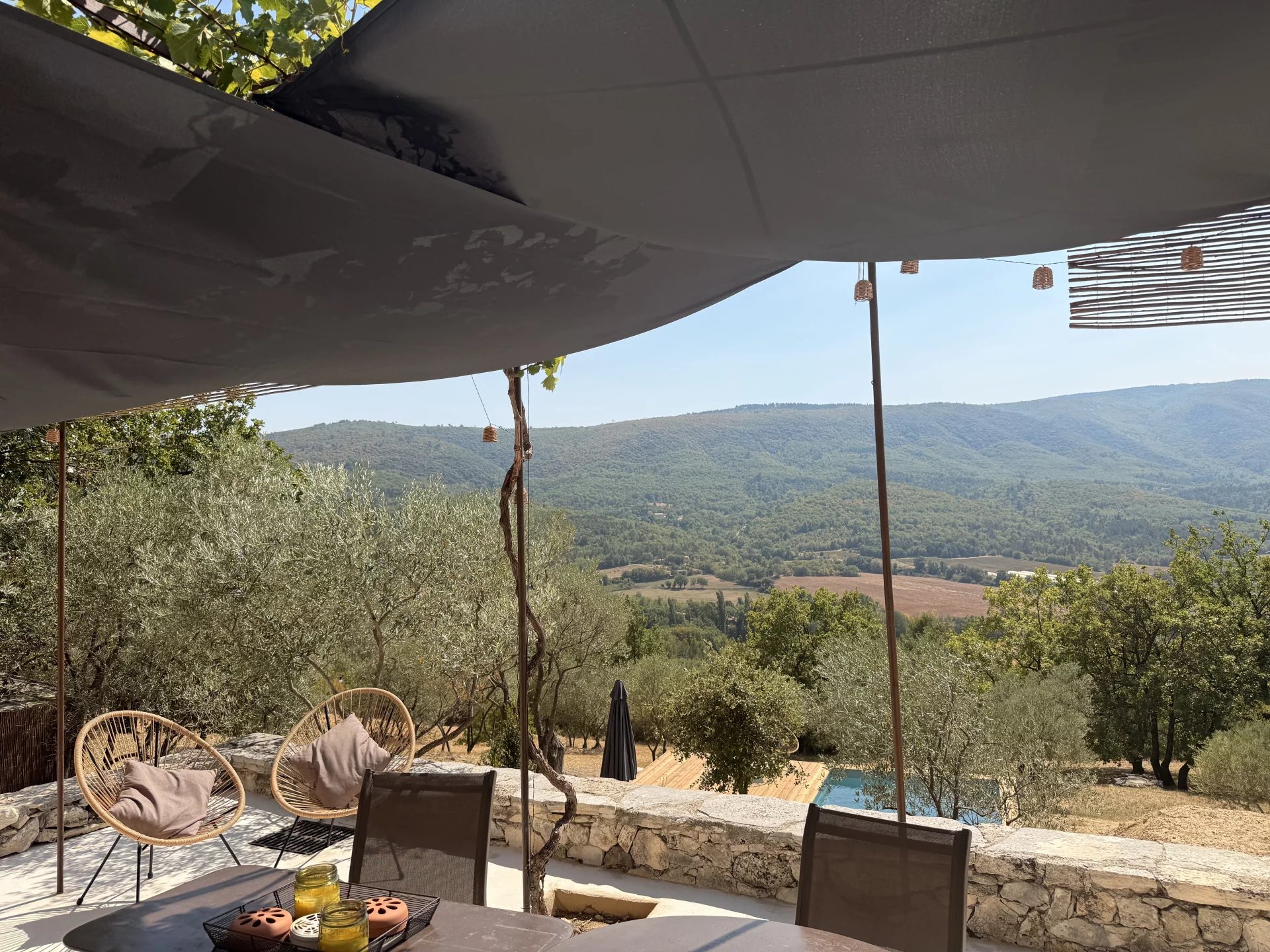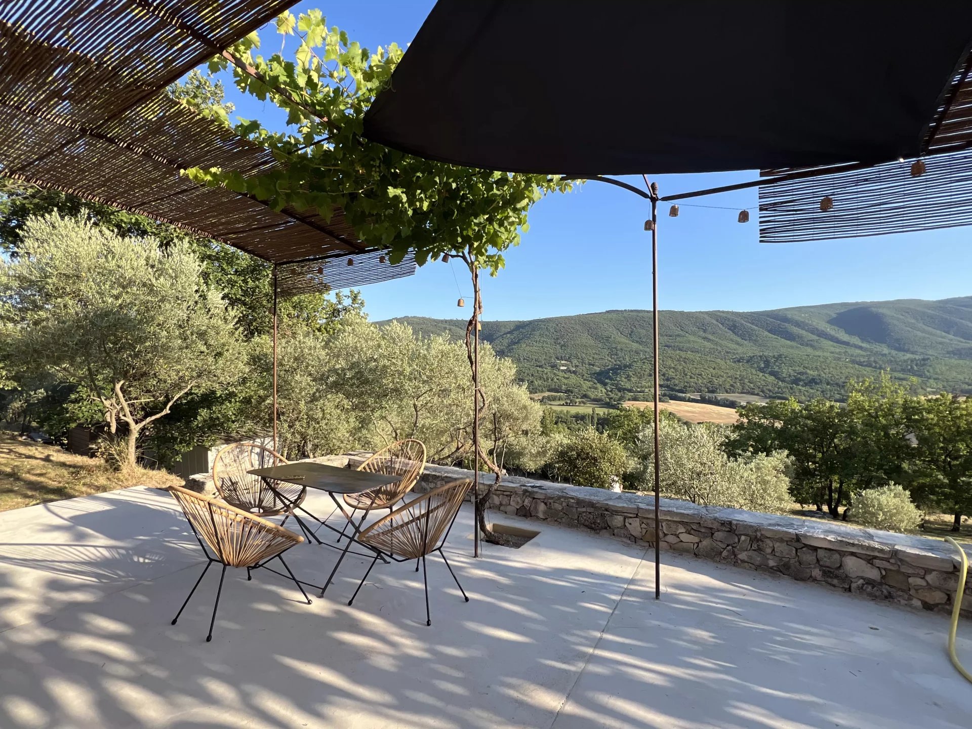 Céreste, au coeur du Luberon, emplacement exceptionnel pour ce bastidon tout juste rénové au coeur d'une oliveraie avec une vue panoramique. Cette location saisonnière peut accueillir 6 personnes (4 adultes et deux enfants). Couchages: un salon/ avec canapé convertible en 150, une chambre avec un lit en 140 et un lit banquette (80 ou 160) Tout confort: terrasse avec tonnelle, barbecue, climatisation dans toutes les pièces, piscine (6,5 X 3,5). A seulement 900m des commerces, vous serez séduits par ce petit coin de paradis au coeur de la Provence. Dossier détaillé et tarifs sur demande.
