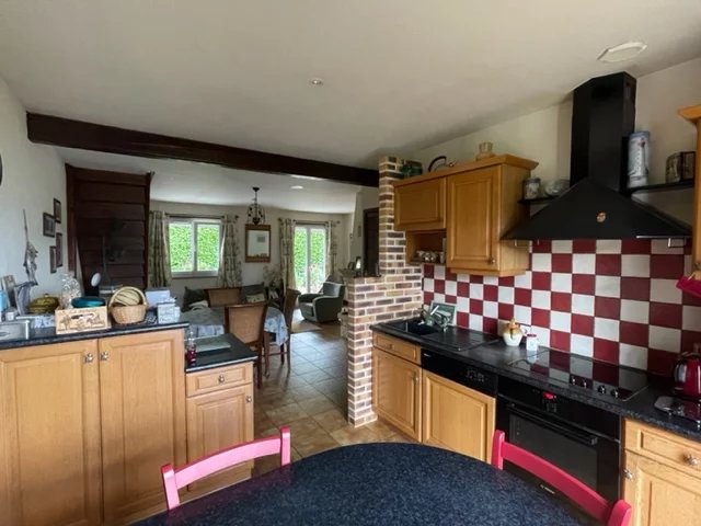 Au rez-de-chaussée : une belle pièce de vie traversante avec cheminée, ouverte sur une cuisine aménagée et équipée, 2 chambres, une belle salle de douches récente, un WC, buanderie, local à vélos et outillage.