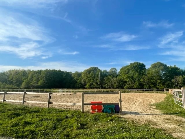 Une maison ancienne de caractère, un barn's pouvant accueillir 6 chevaux, une carrière, des prés .