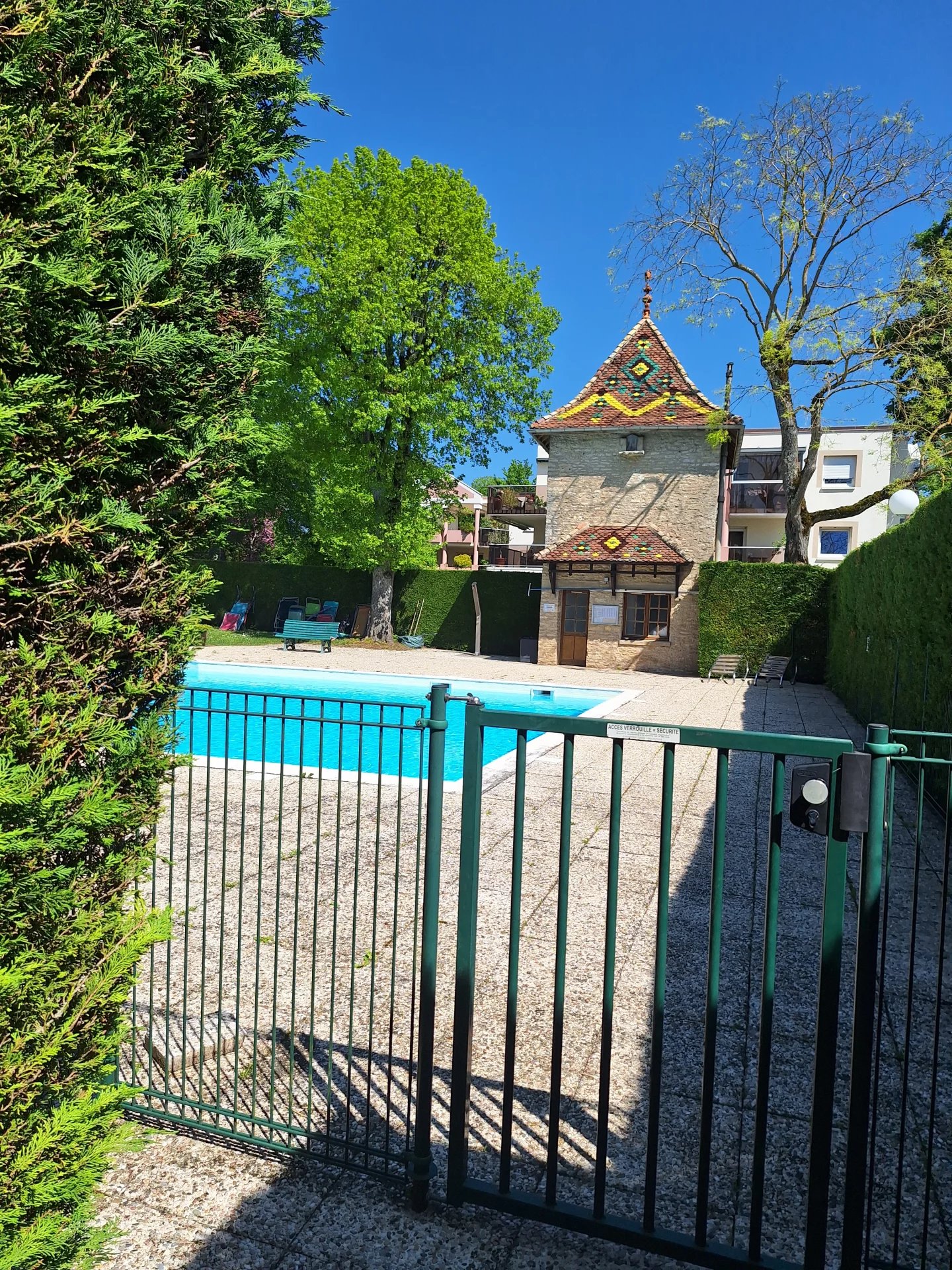 AU CALME, dans une résidence entièrement close, SUPERBE APPARTEMENT DE 77 m², 5 bracelets de piscine sont attribués à cet appartement.La copropriété sans procès en cours comprend plusieurs bâtiments (50 lots au total). Les charges sont de 3.934 €/an (chauffage, eau et charges de copropriété, tout est compris).