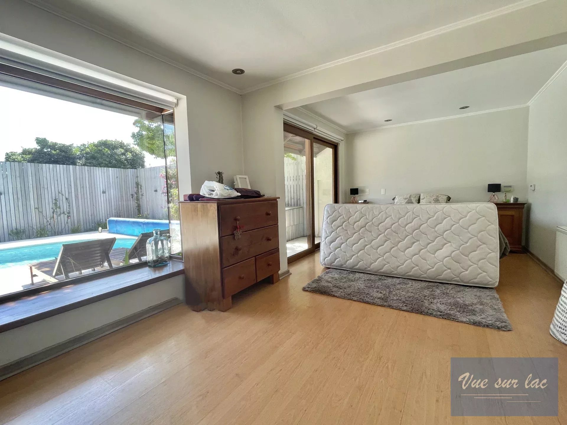 La grande suite parentale donnant sur la terrasse piscine, son dressing et sa salle de douche + WC