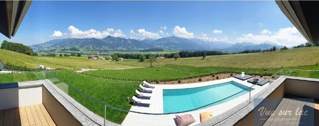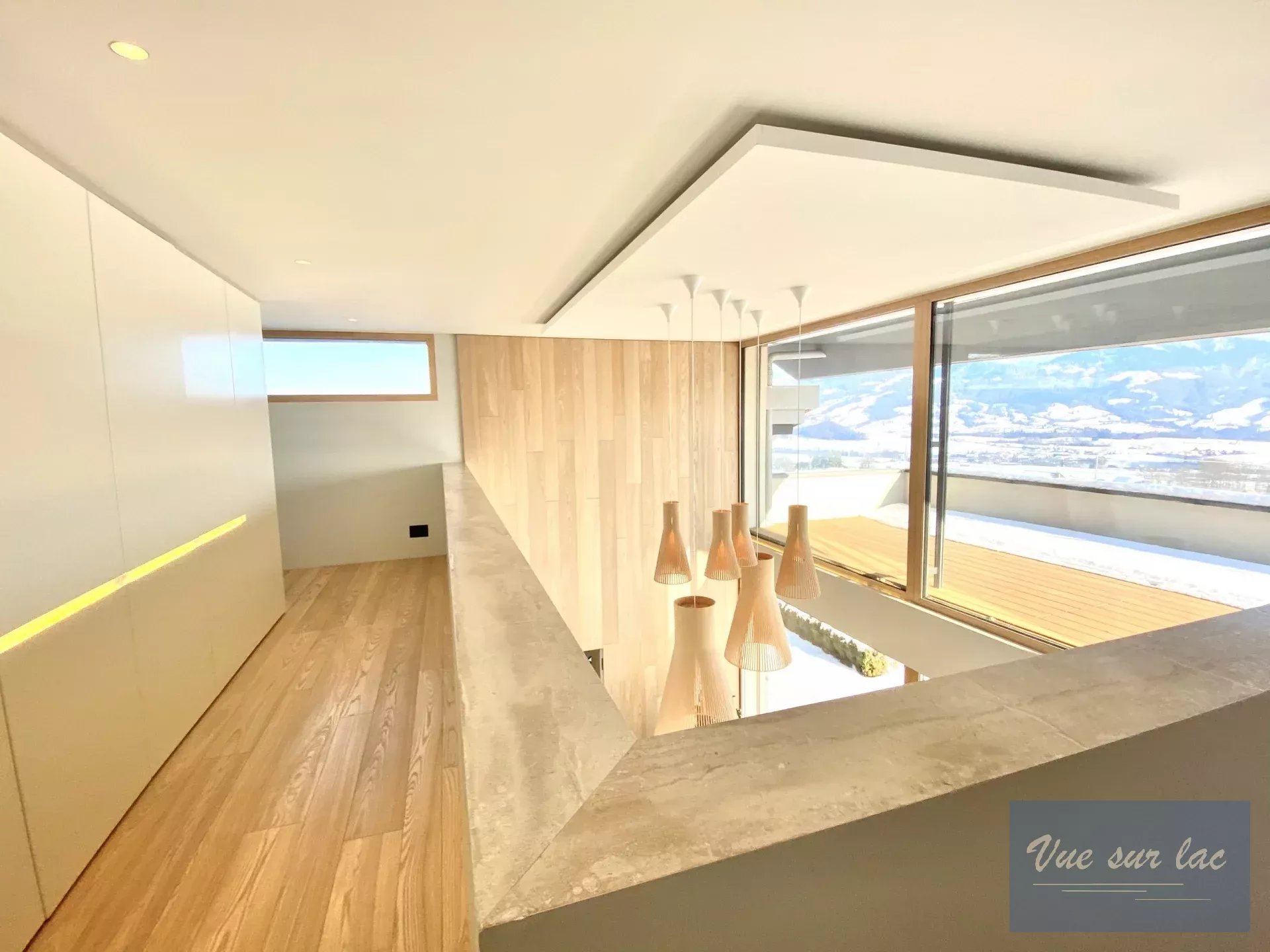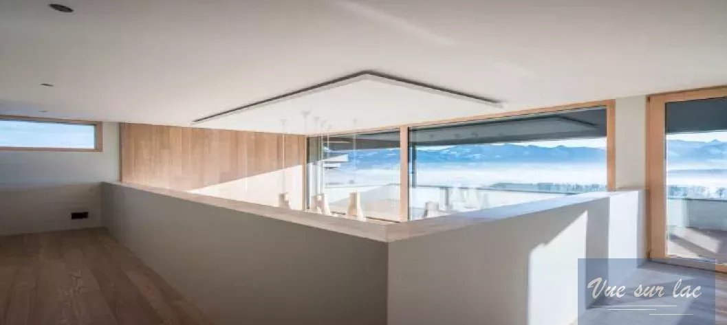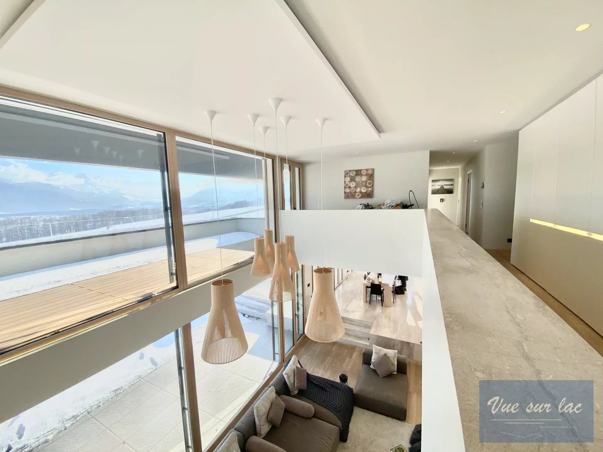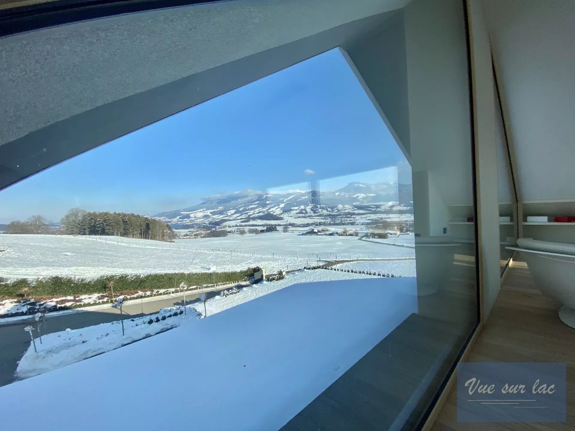 Les volumes sont grands, toutes les pièces sont très lumineuses et profitent de vues spectaculaires panoramiques et exceptionnelles sur les Préalpes et le Moléson et d'une luminosité exceptionnelle grâce aux grandes baies vitrées à triple vitrage.