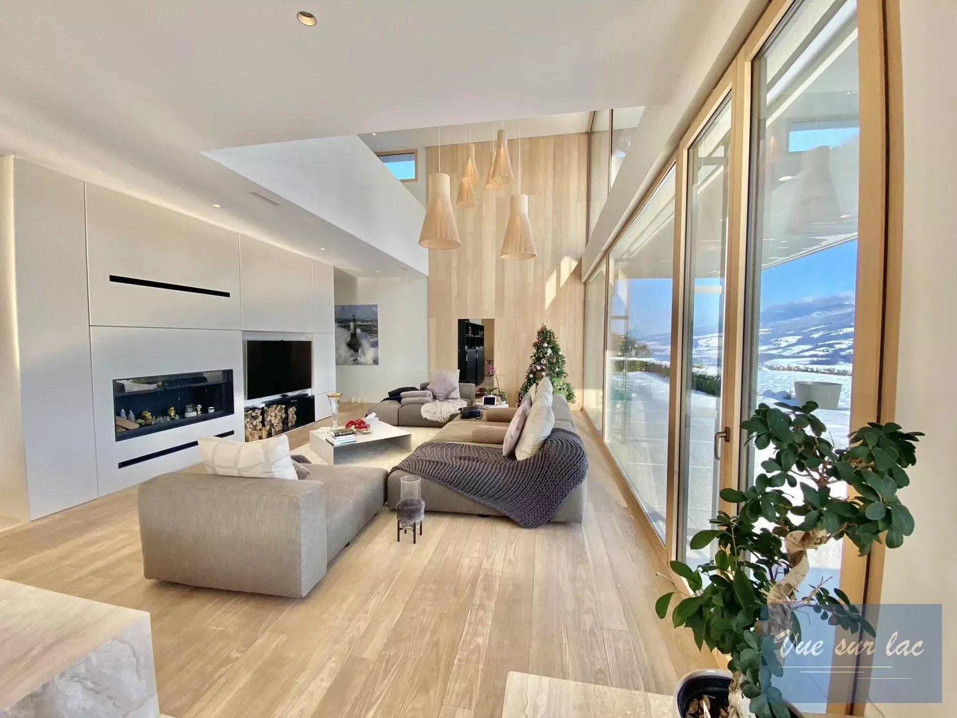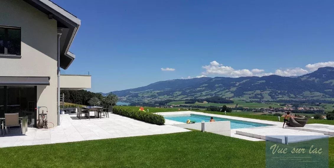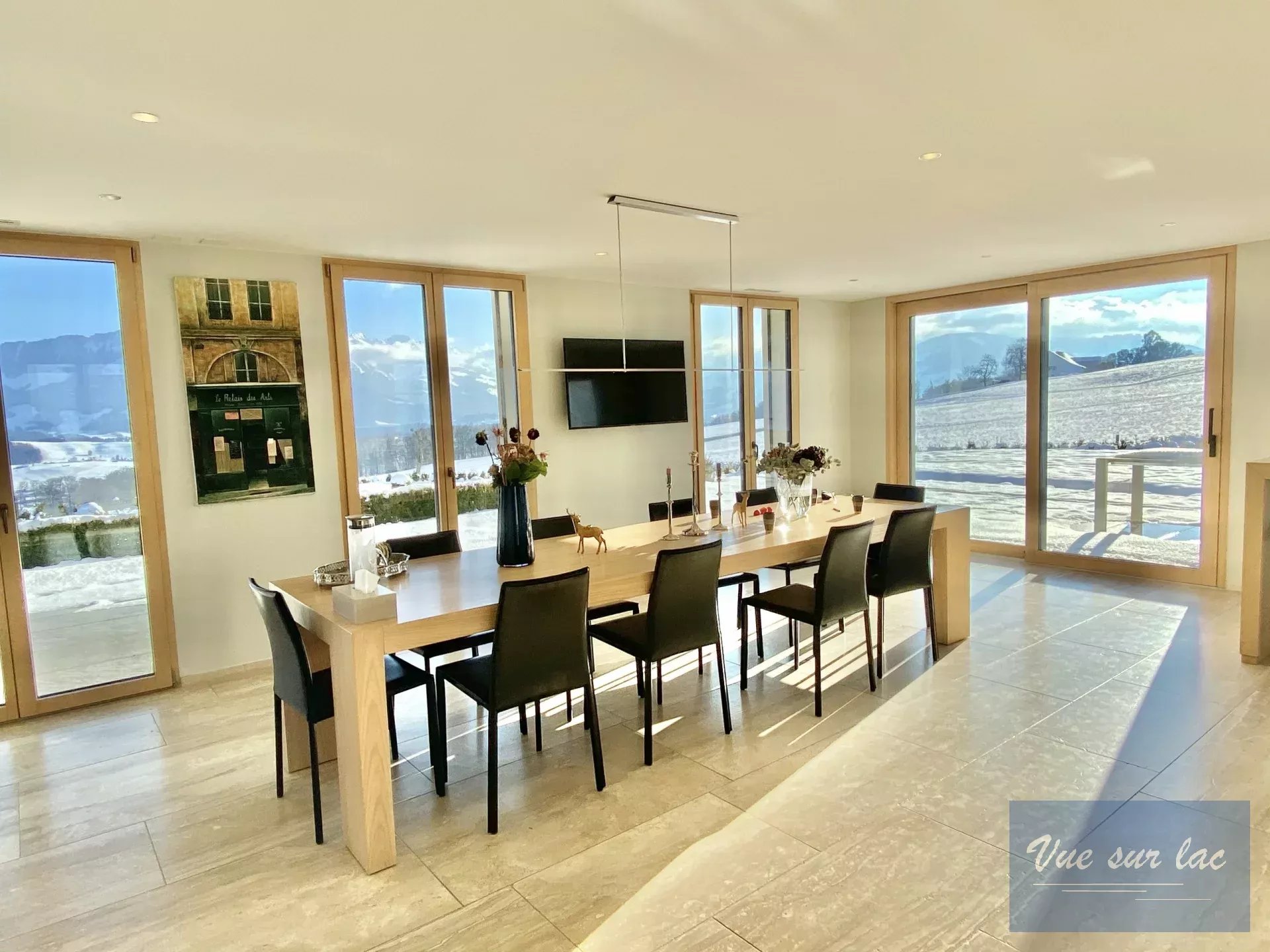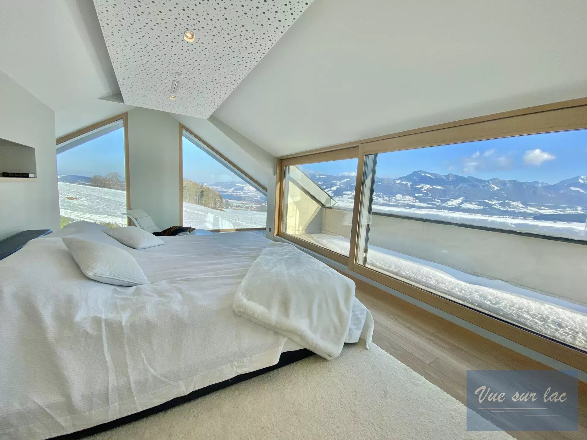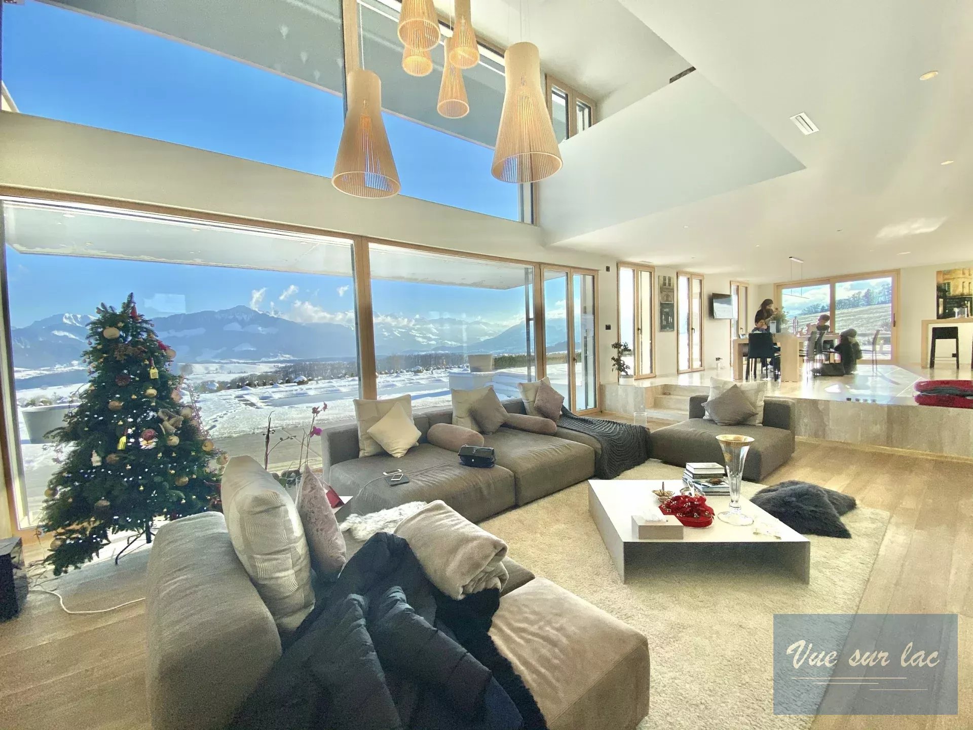 Les volumes sont grands, toutes les pièces sont très lumineuses et profitent de vues spectaculaires panoramiques et exceptionnelles sur les Préalpes et le Moléson et d'une luminosité exceptionnelle grâce aux grandes baies vitrées à triple vitrage.