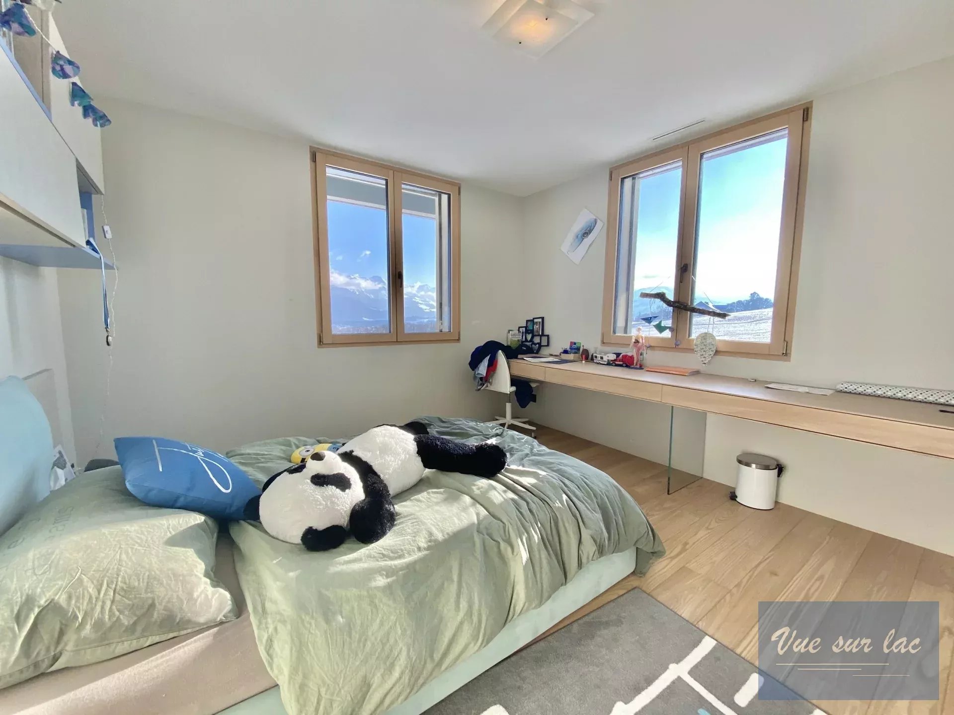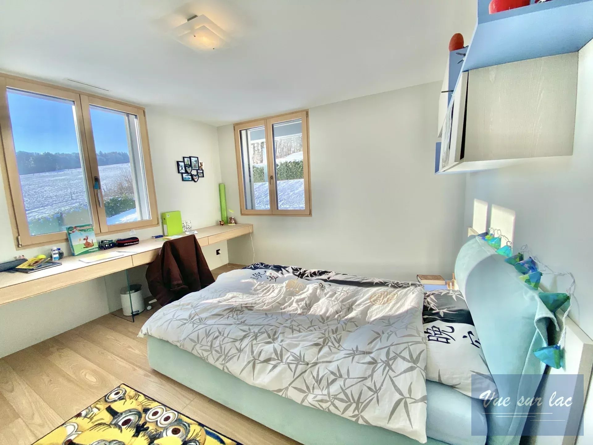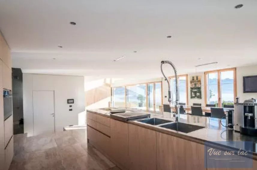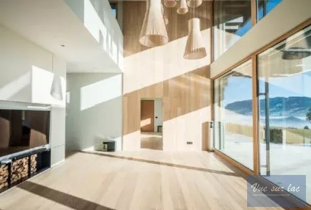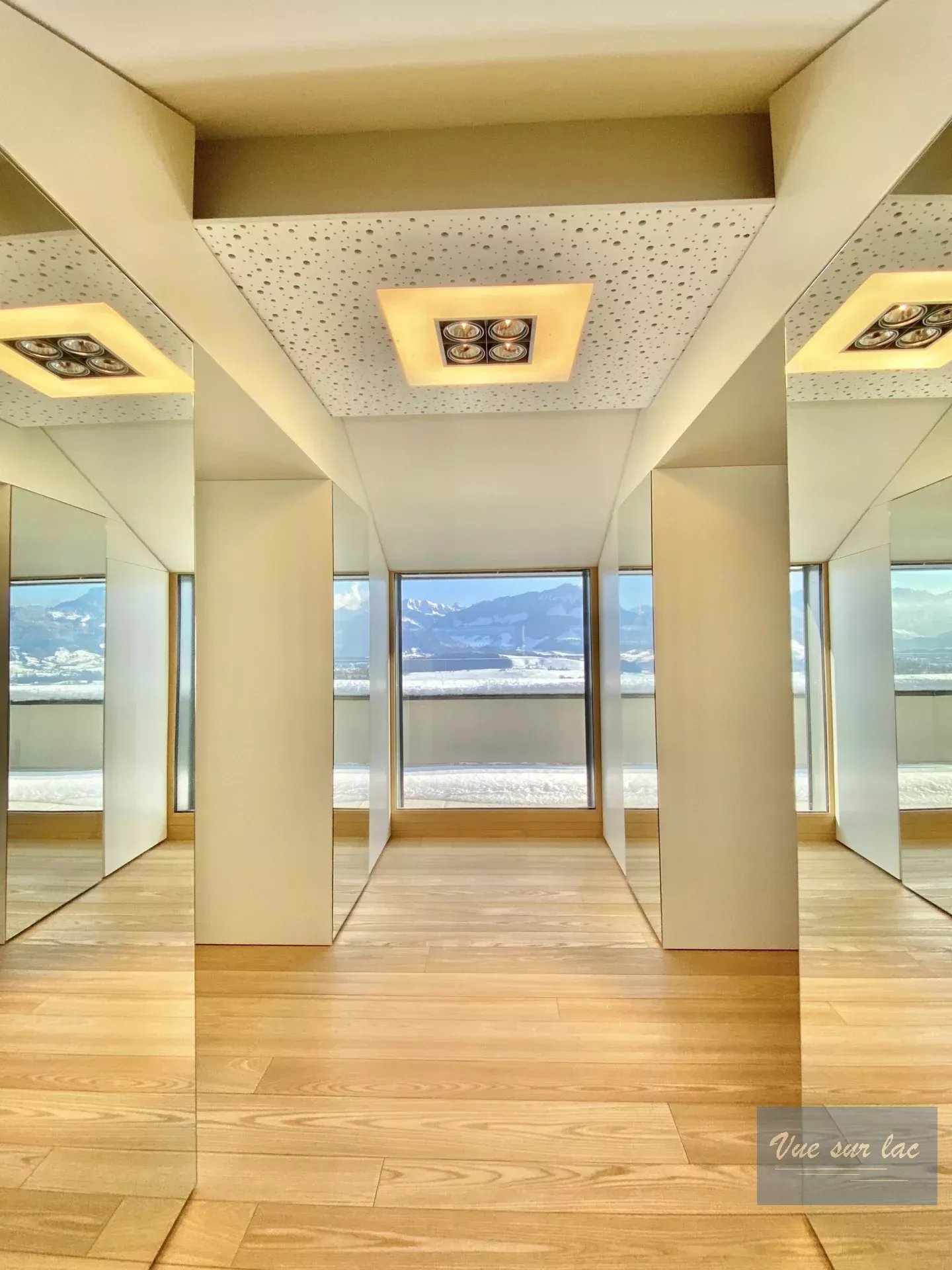 Les volumes sont grands, toutes les pièces sont très lumineuses et profitent de vues spectaculaires panoramiques et exceptionnelles sur les Préalpes et le Moléson et d'une luminosité exceptionnelle grâce aux grandes baies vitrées à triple vitrage.