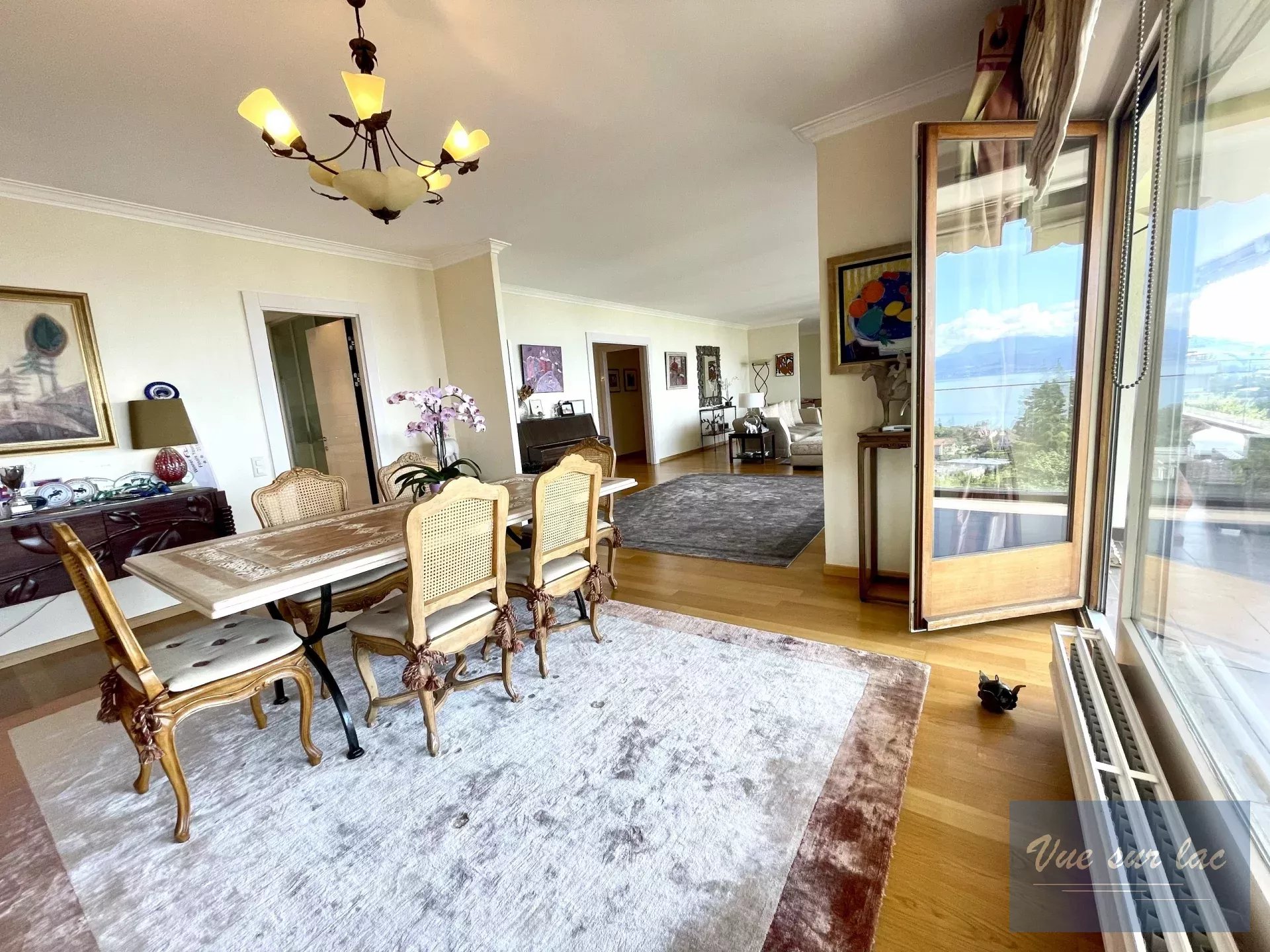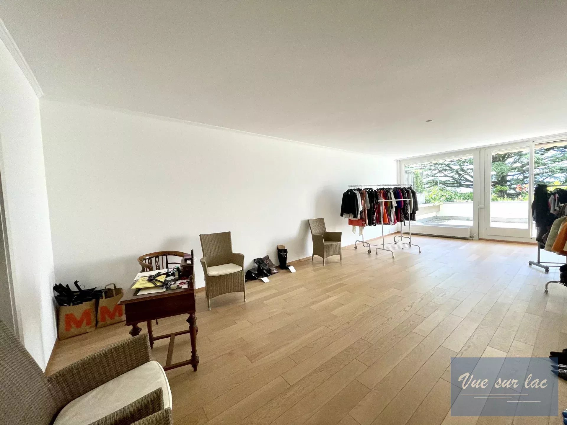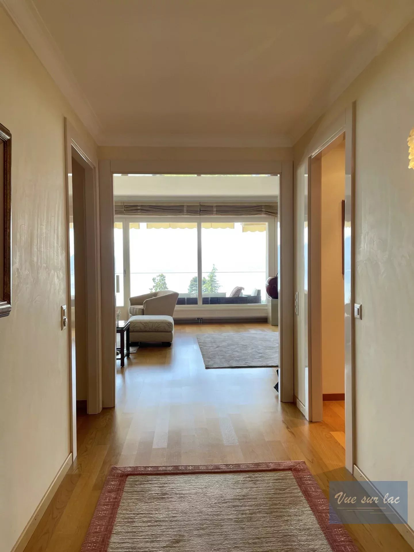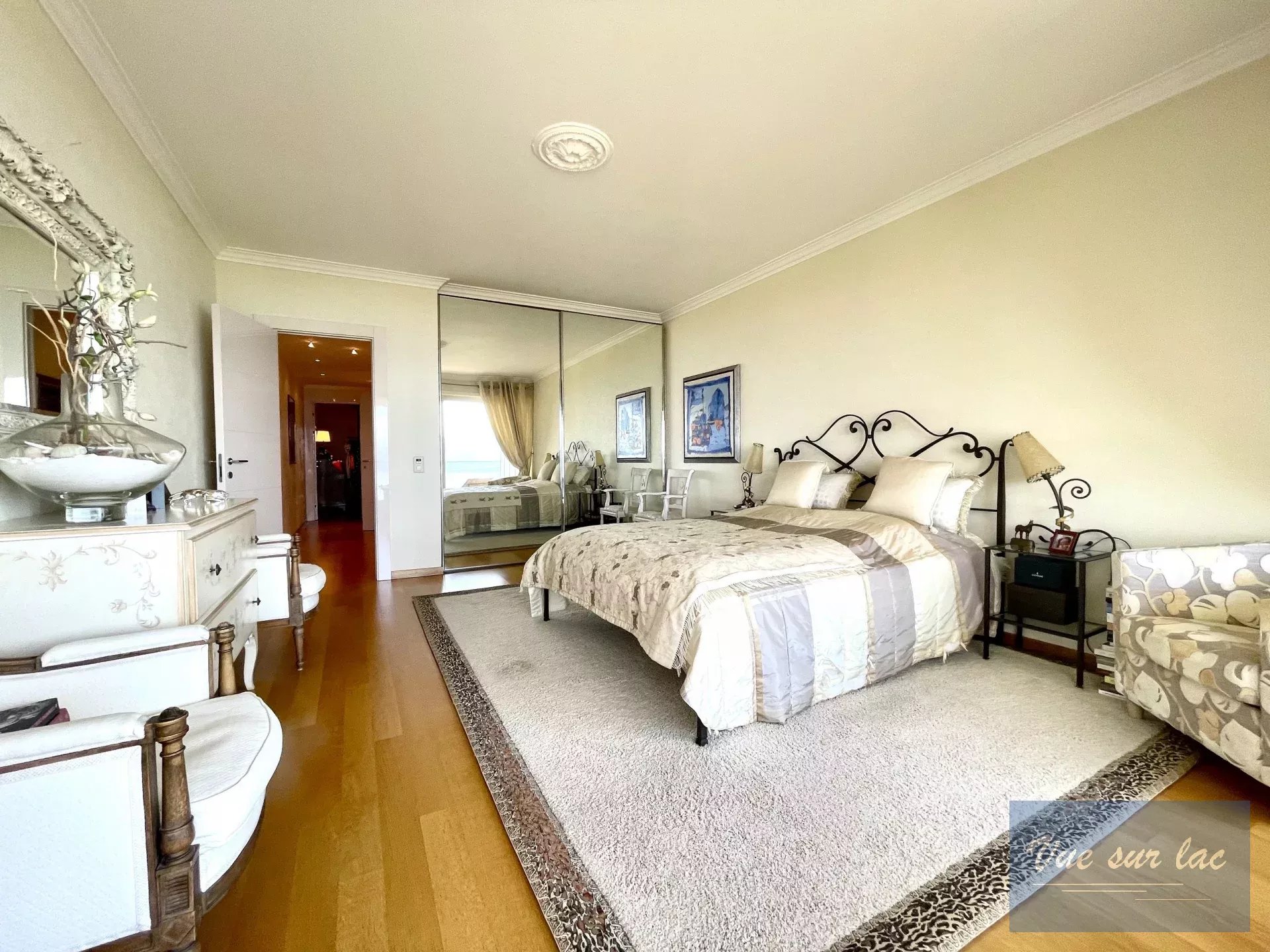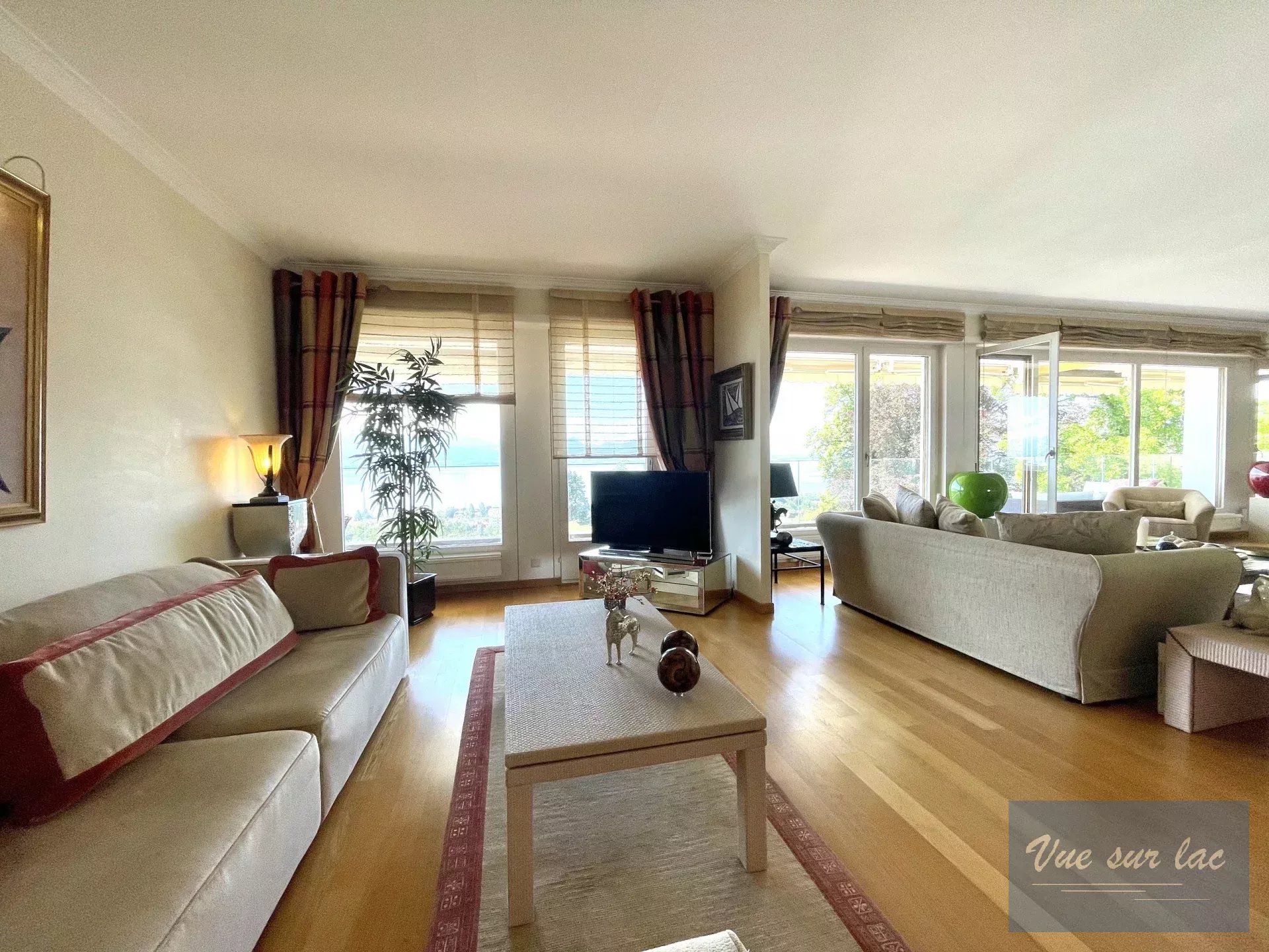 Toutes les pièces de réception s’ouvrent sur une magnifique et profonde terrasse faisant toute la longueur de l’appartement. La vue est totale sur le lac et les montagnes et au premier plan de grands espaces verts nous font oublier que nous sommes en plein coeur de la ville.