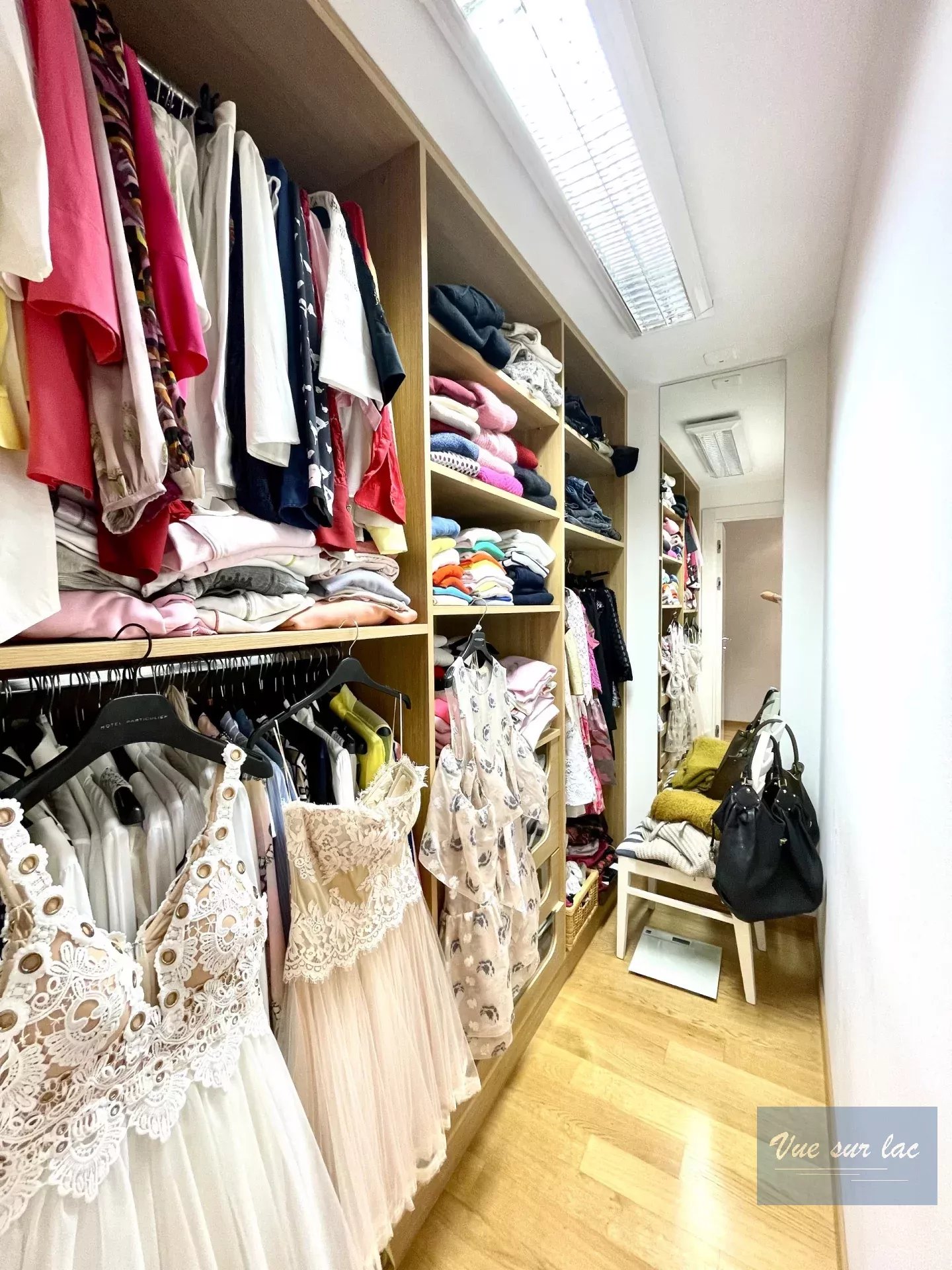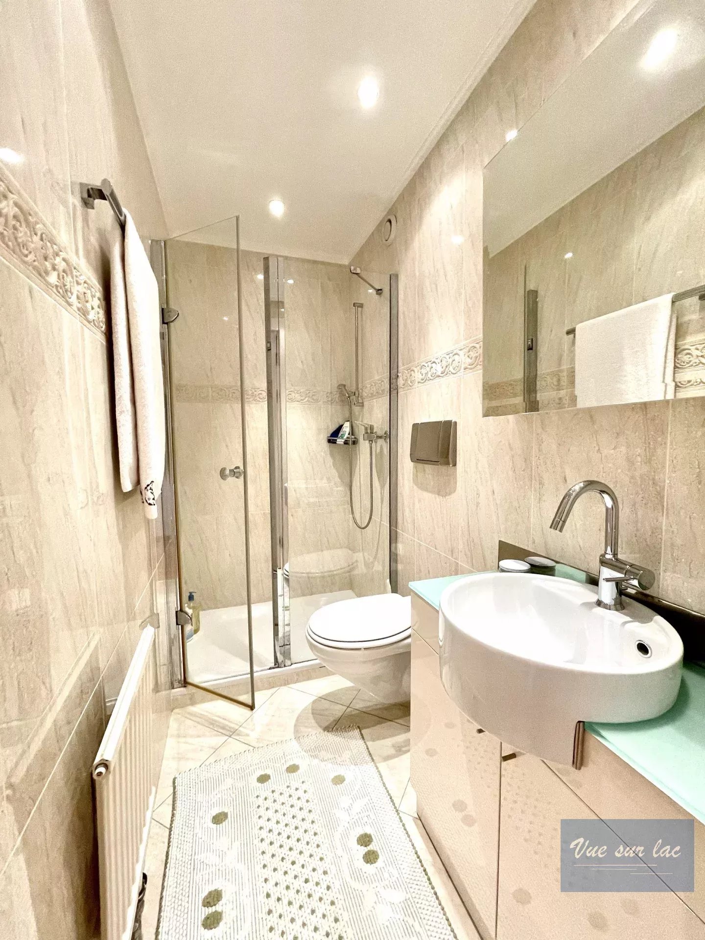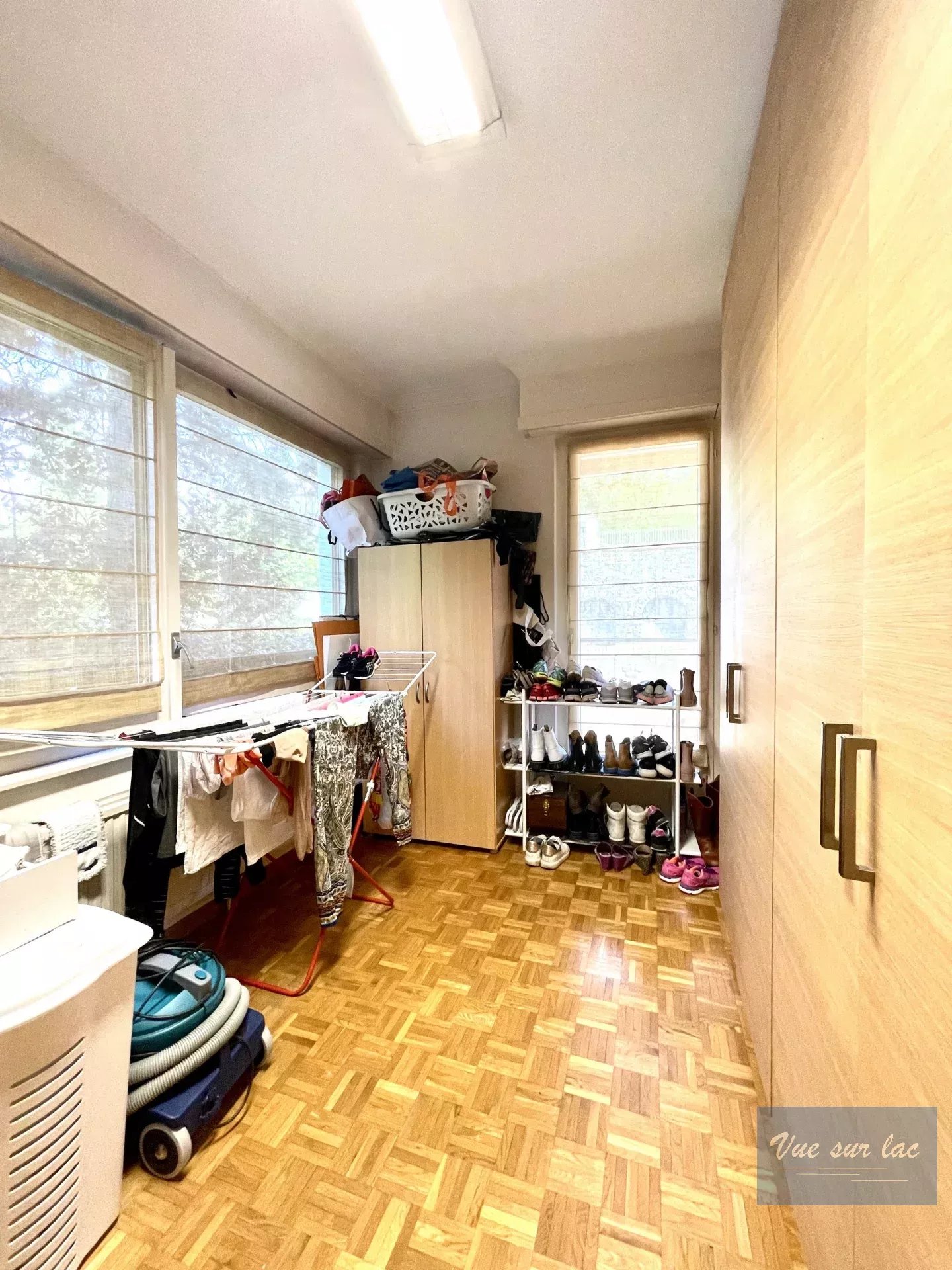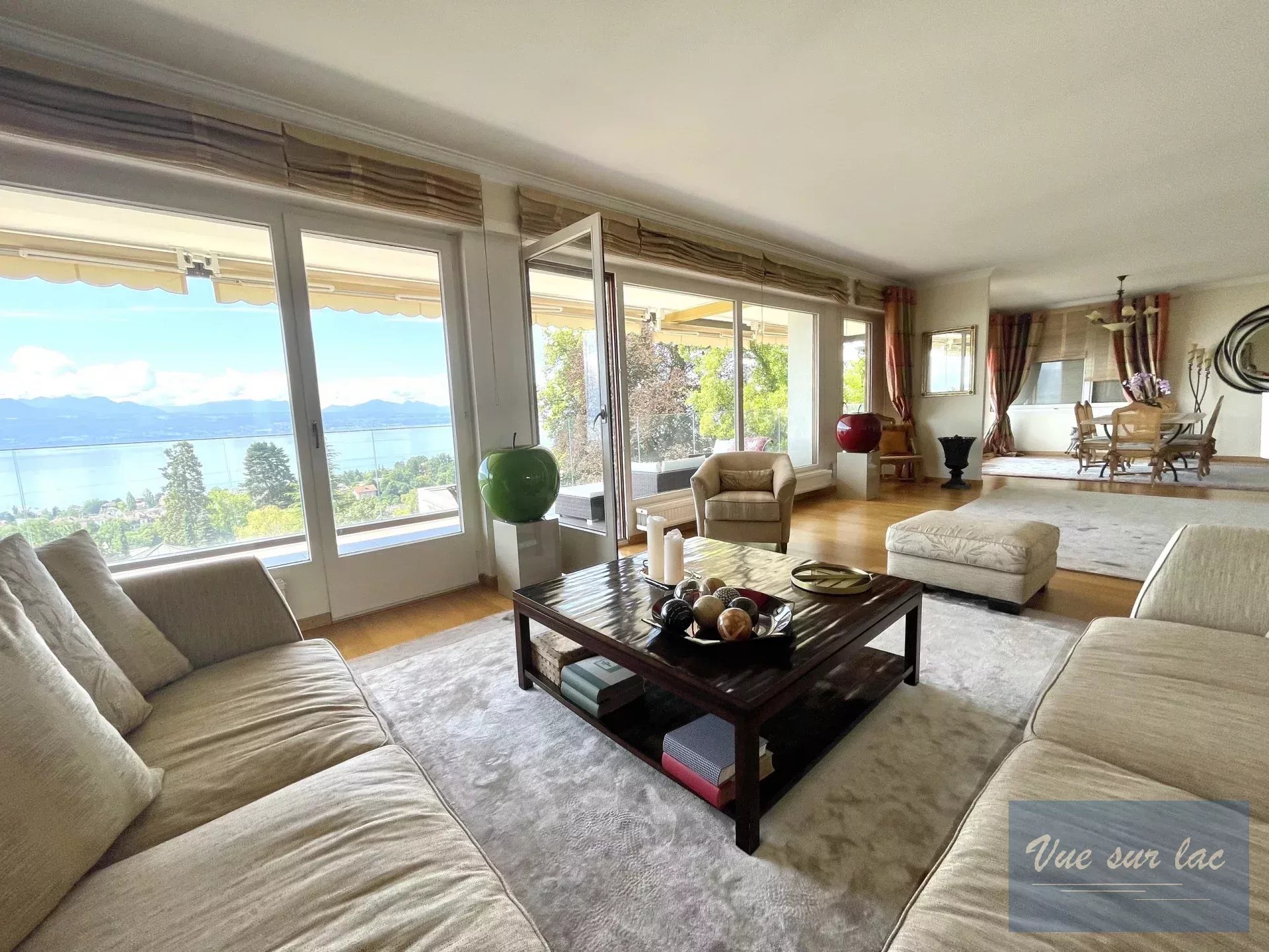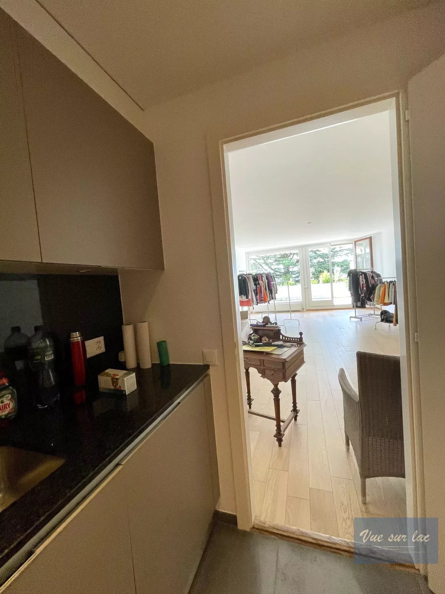 Toutes les pièces de réception s’ouvrent sur une magnifique et profonde terrasse faisant toute la longueur de l’appartement. La vue est totale sur le lac et les montagnes et au premier plan de grands espaces verts nous font oublier que nous sommes en plein coeur de la ville.