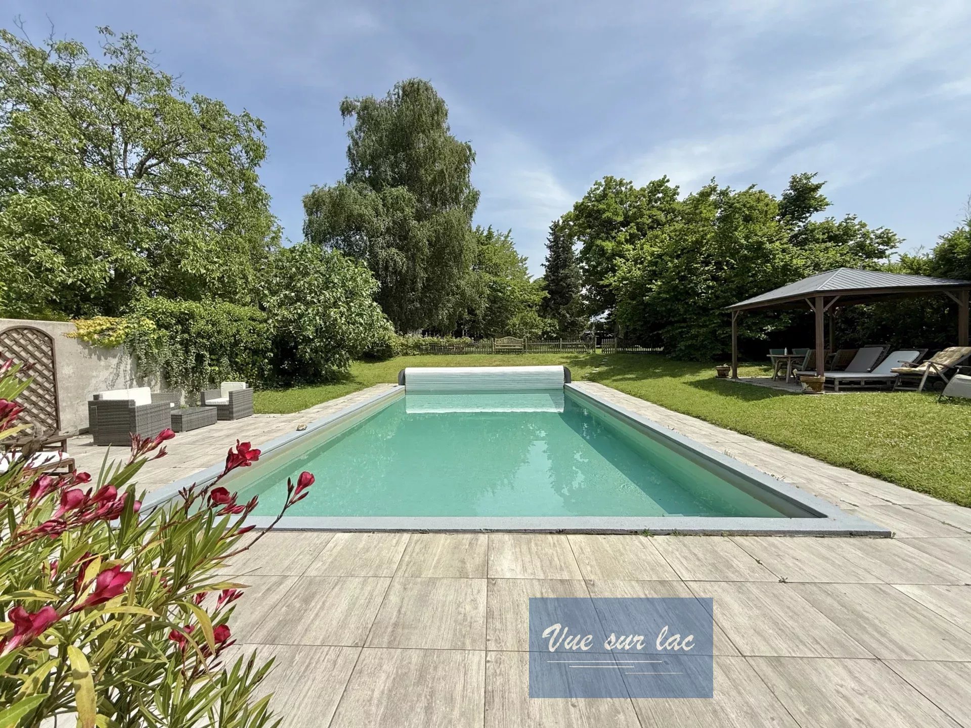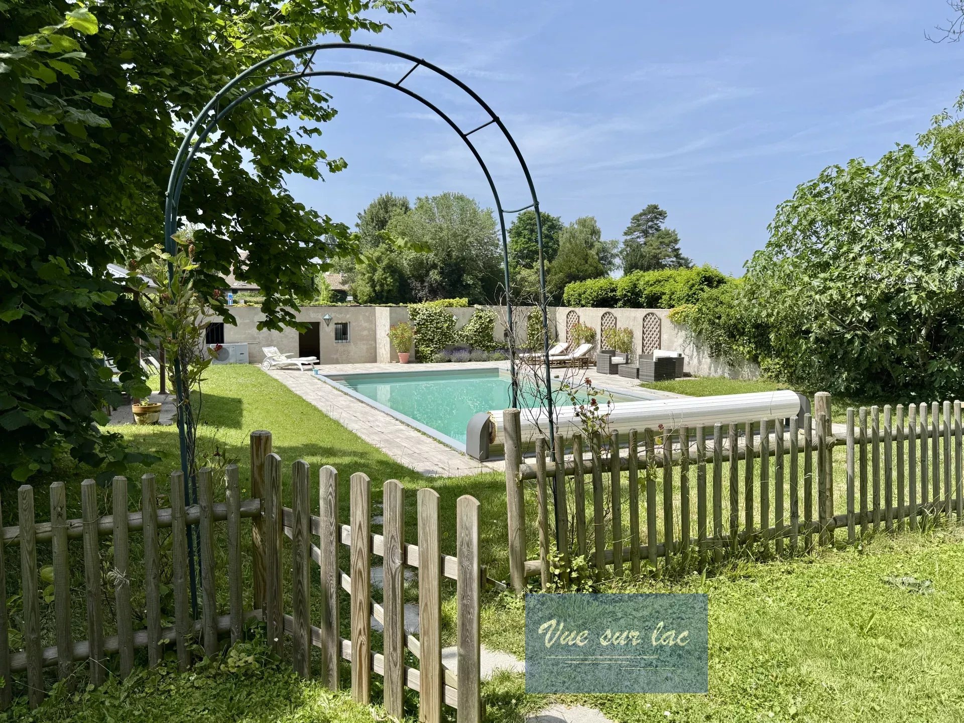 La maison est entourée d'un vaste jardin verdoyant, parfait pour se détendre en famille ou entre amis. La piscine et son pool house sont un atout majeur de cette propriété, idéals pour se rafraîchir pendant l'été ou profiter de repas au bord de l'eau.