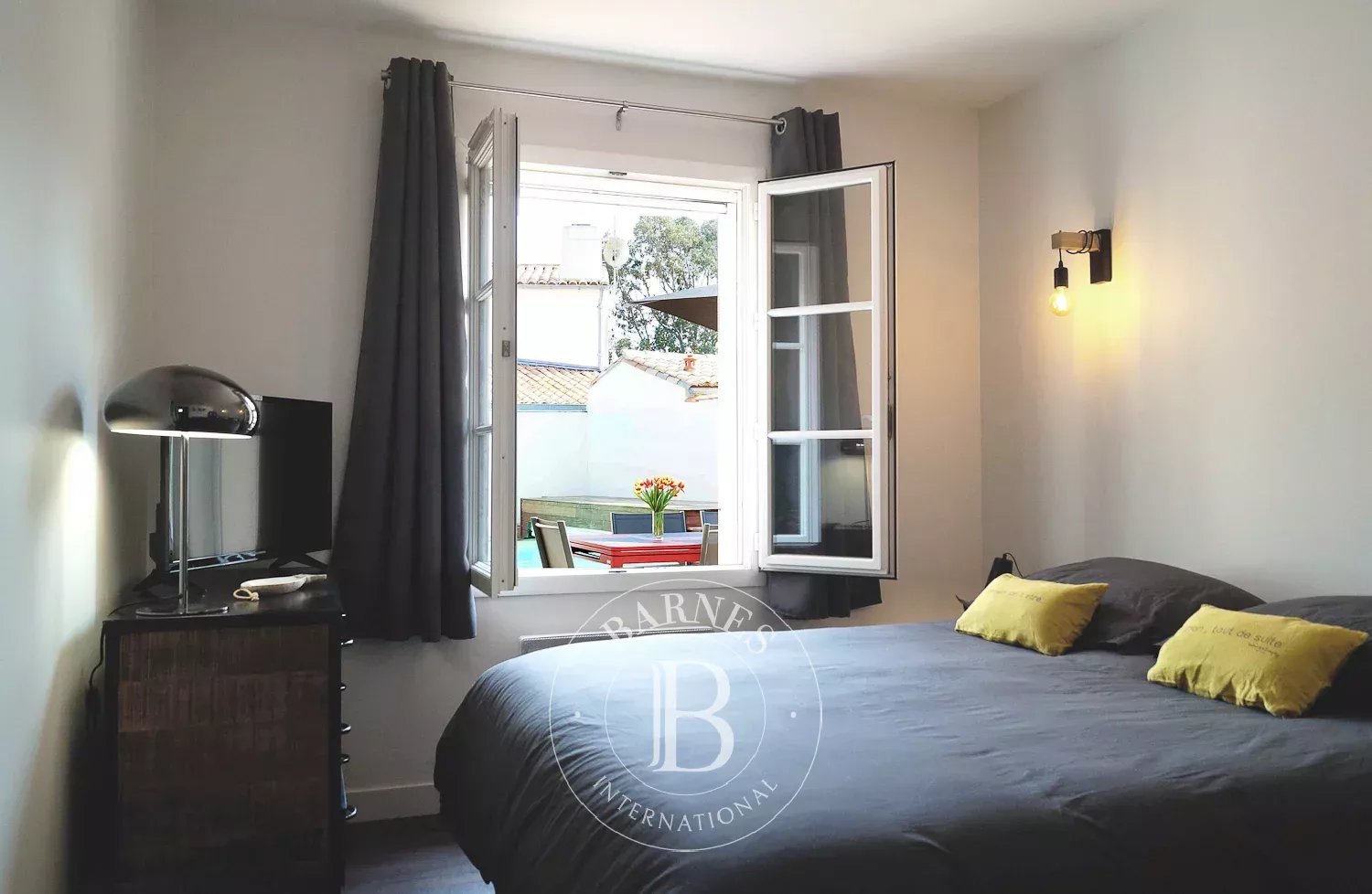 IMPORTANT : Cette maison est détenue en société et possède un numéro d'identification de location saisonnière cessible en cas de cession de parts. Située au calme et à deux pas du port et des commerces, sur une parcelle de 413 m2, maison à vendre de plain-pied offrant une entrée, un salon avec cheminée, un séjour avec cuisine ouverte aménagée et équipée. Coin nuit : 4 chambres et 2 salles d'eau/bains. En extérieur, cour d'accueil avec stationnements, terrasse avec piscine. Garage à l'avant de 20 m2.