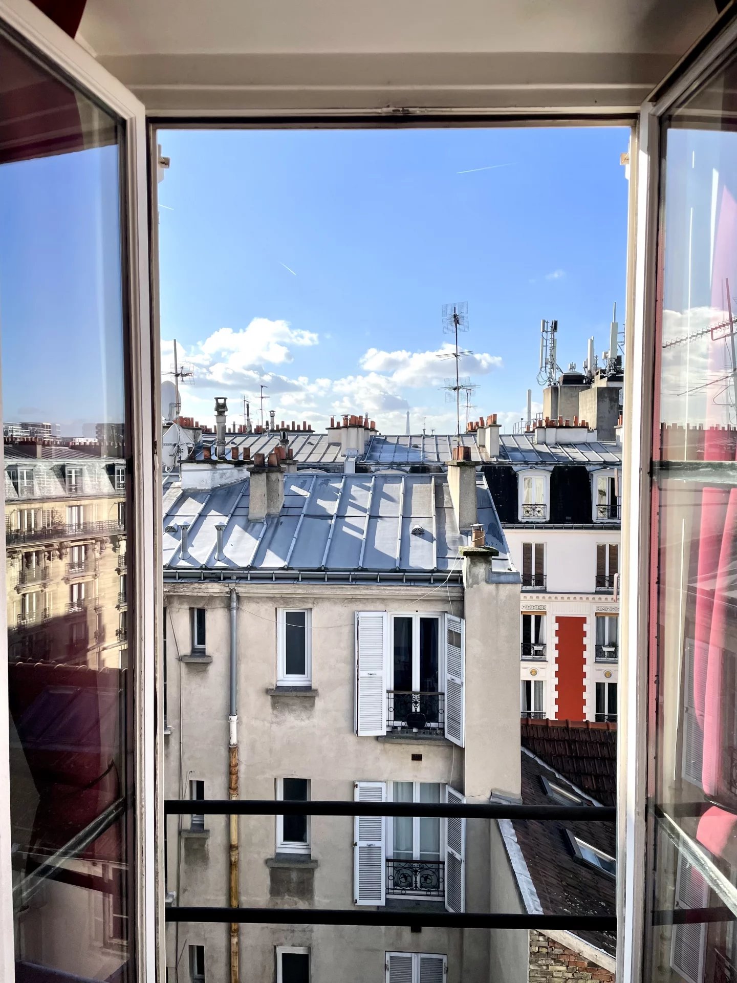 Au sixième et dernier étage d'un joli immeuble en pierre de taille situé à 5min à pieds du nouveau quartier du parc Martin Luther King, ainsi que du métro Brochant et à proximité de la nouvelle ligne 14. Un appartement composé d'un bel espace de vie séjour avec cuisine ouverte et bar d'une superficie de 18m², une chambre, une salle de douche, WC séparés. Très lumineux, vue dégagée sur les toits de Paris et cour arborée. Une cave complète ce bien. Contactez Charles Baudrier 07 61 37 31 89