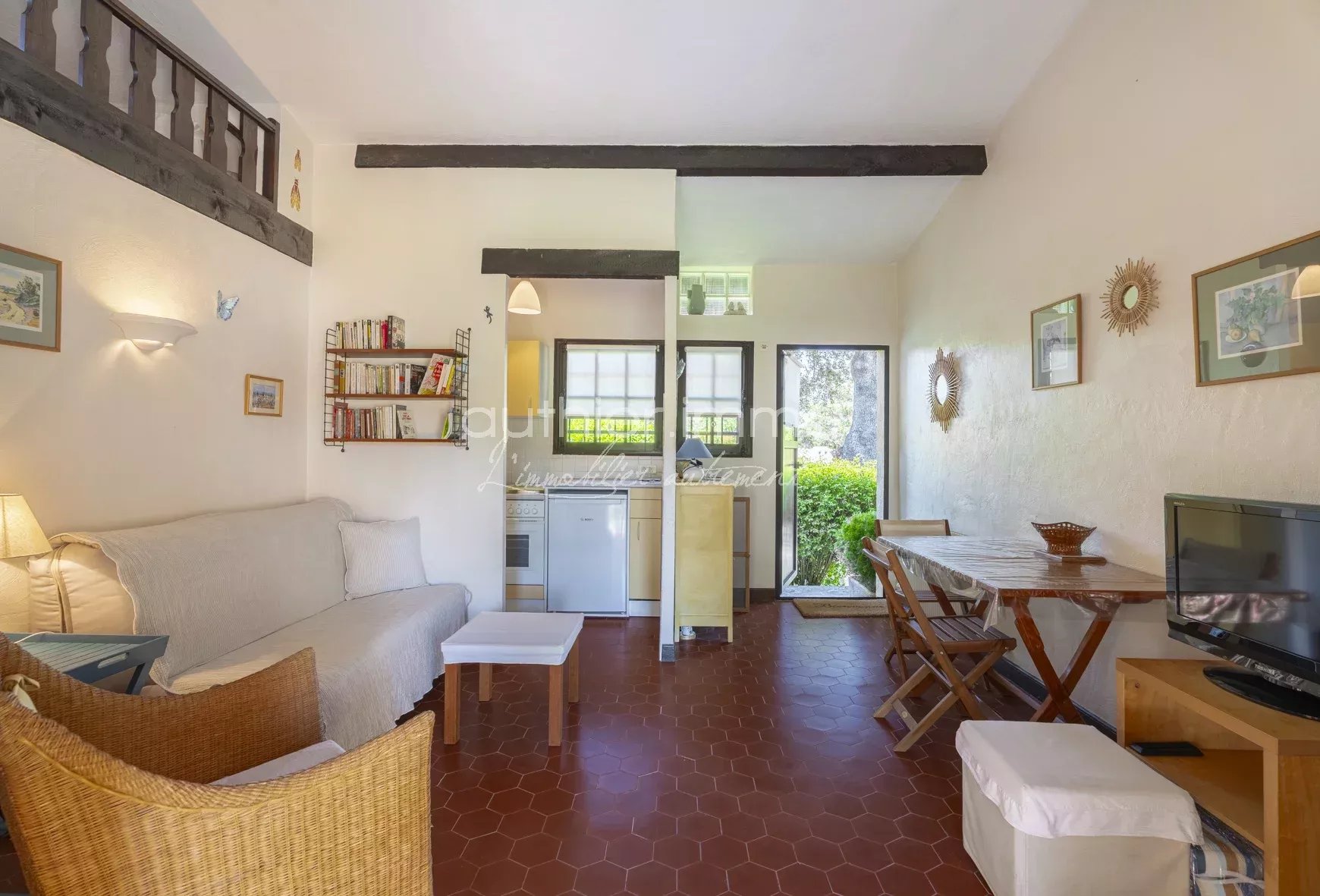 Idéal 1er achat ou Résidence secondaire, coquet 2 pièces en Rez de jardin donnant sur le lac au calme absolu La pièce à vivre est composée d'un séjour avec cuisine us et mezzanine, prolongé d'une terrasse couverte permettant une extension au salon, la chambre profite de la vue sur le lac également. Jardin d'environ 80 m², garage et parking. Possibilité 2ème chambre dans le garage Charges de copropriété environ 120€/mois - Foncier 807€/an