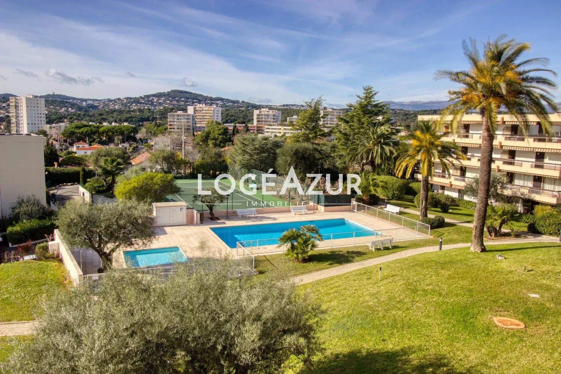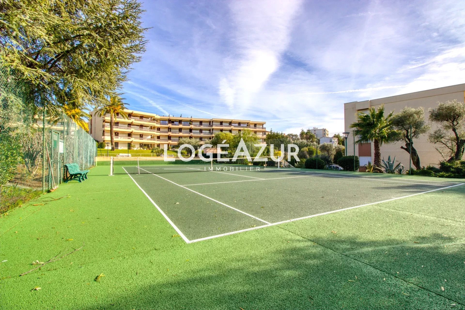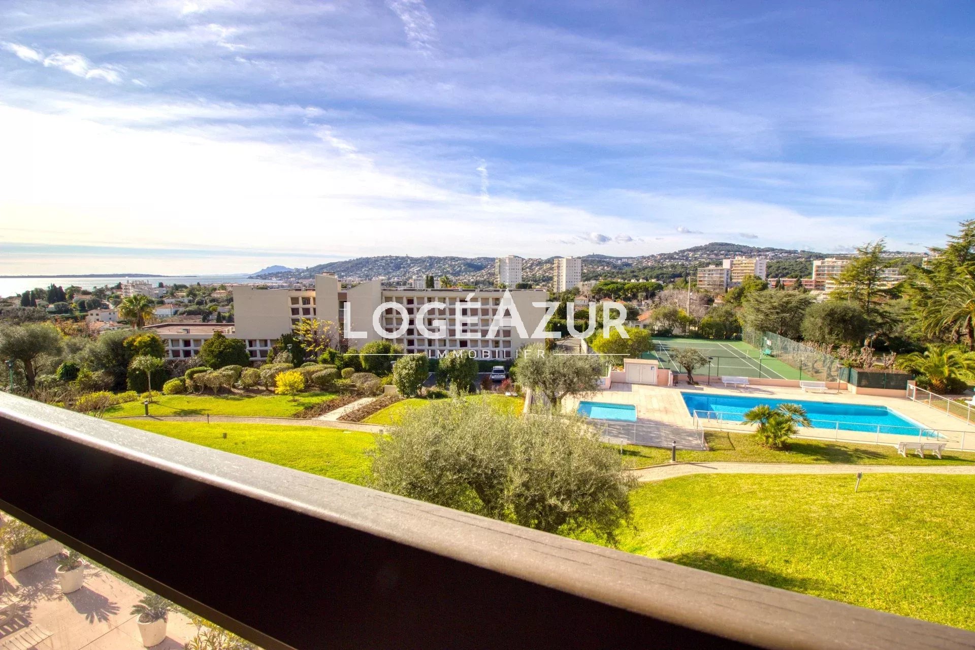 Agréable appartement au sein d'une résidence privée au calme niché dans un parc verdoyant. Venez découvrir pour vos vacances ce spacieux 2 pièces traversant avec vue mer, piscine, parc et collines. Ce bien dispose d'un beau séjour lumineux avec canapé convertible, d'une cuisine équipée et meublée, d'une chambre, d'une salle de bains avec WC, de nombreux rangements et WC supplémentaires dans l'entrée. Climatisation réversible. Celui-ci bénéficie d'une grande terrasse pour apprécier vos belles soirées et admirer cette vue... Garage 1 voiture complète ce bien HAUTEUR MAX 1.79m. Piscine et terrain de tennis à disposition dans le parc de la résidence.