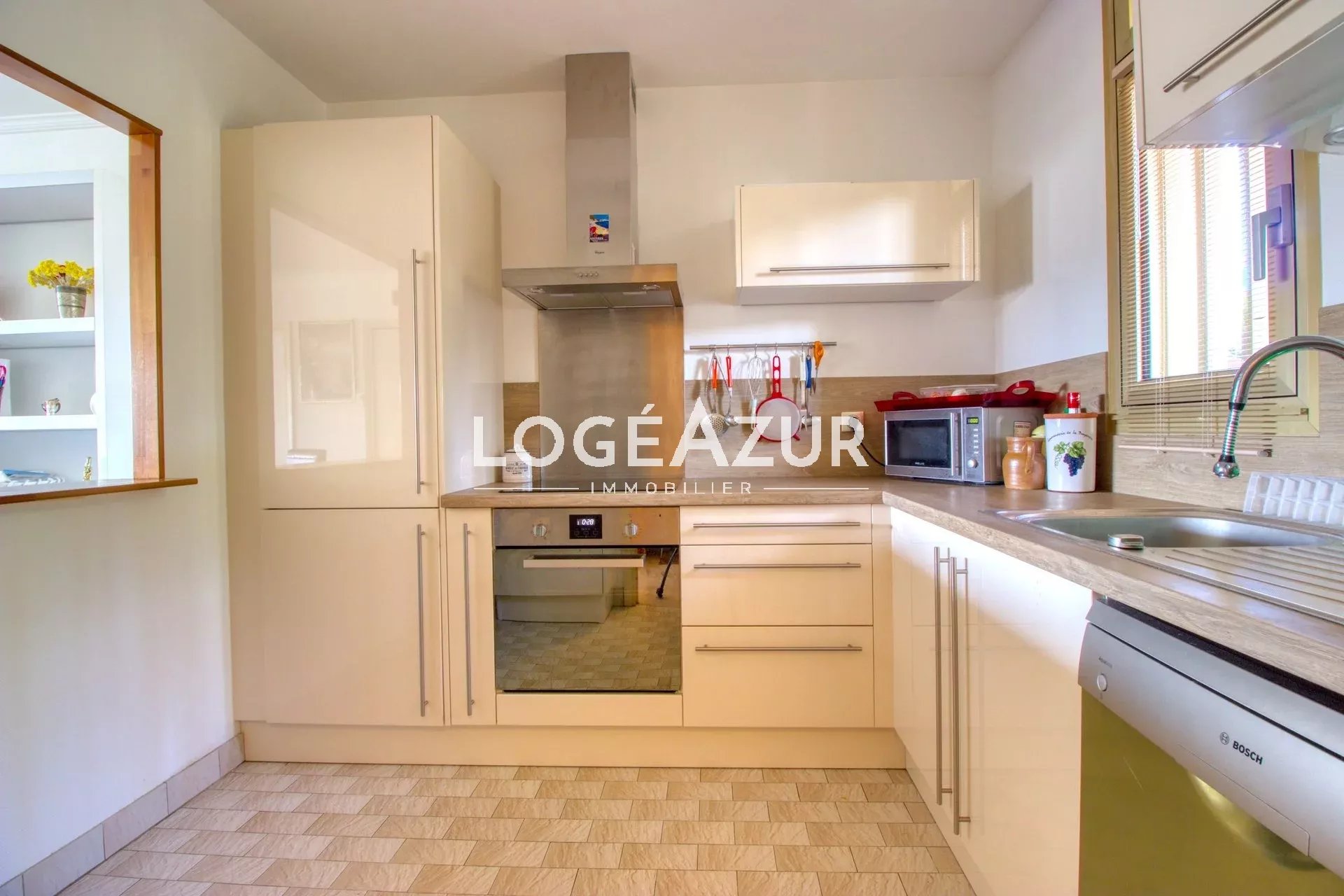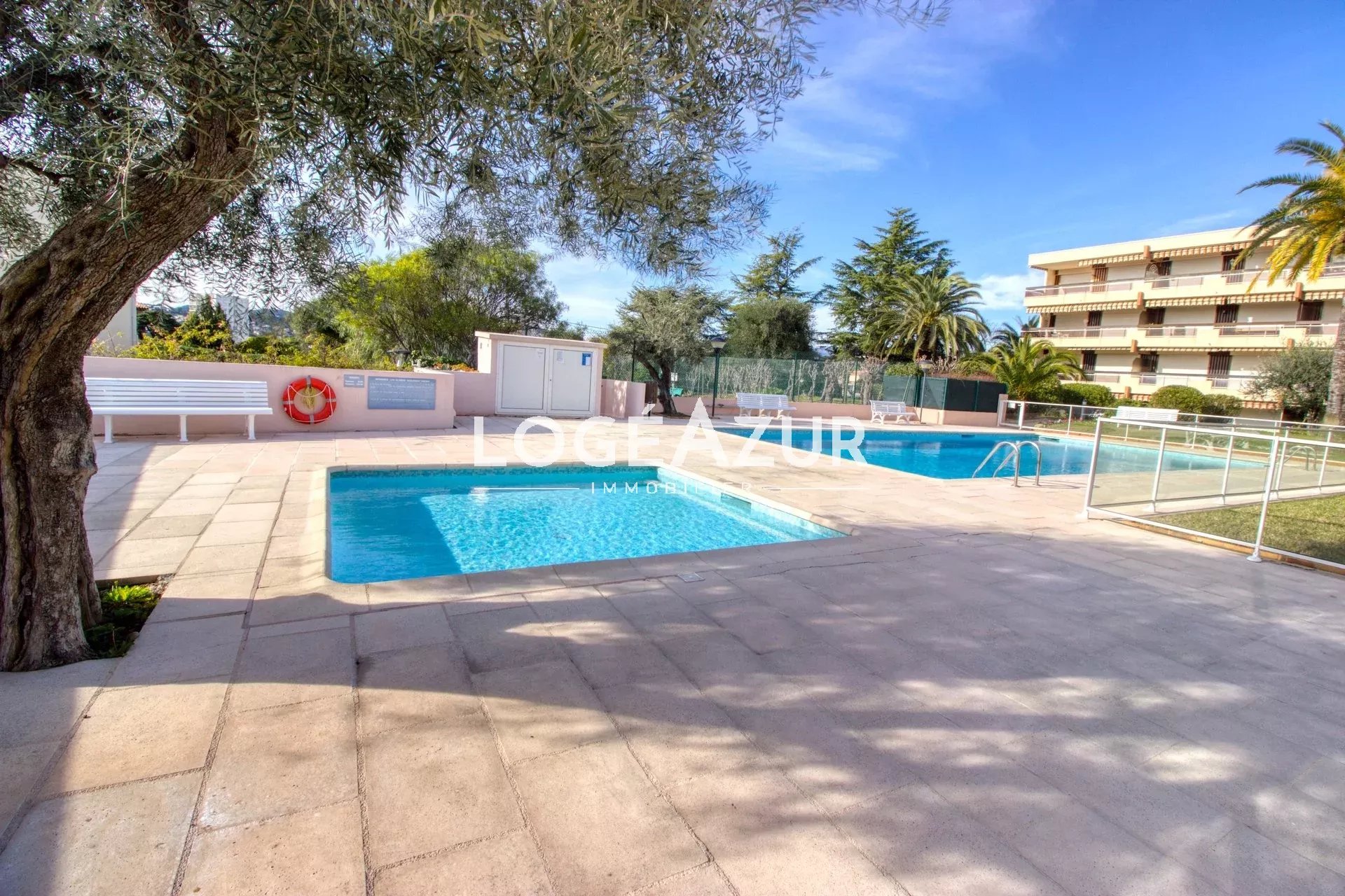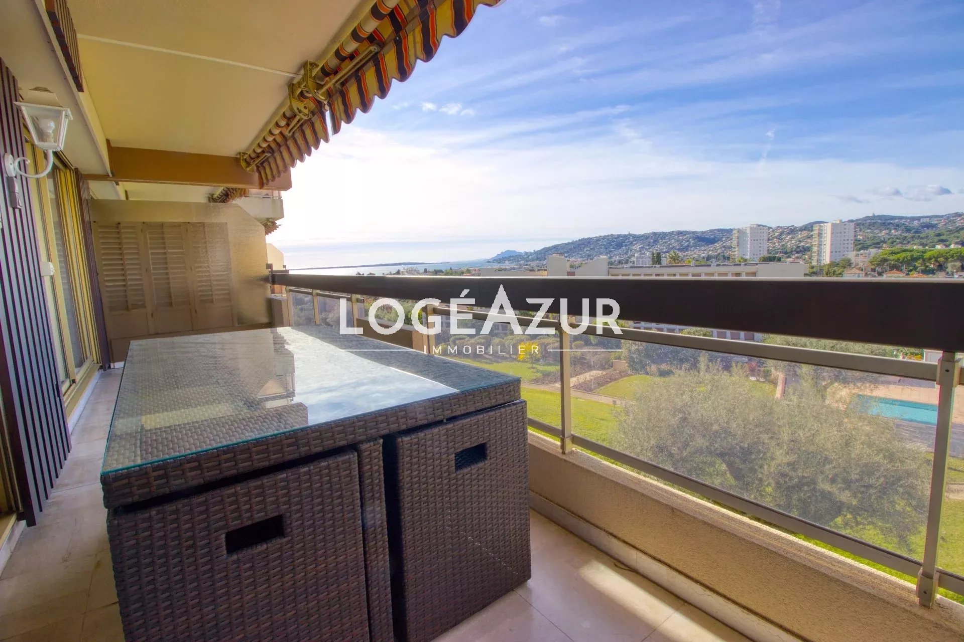 Agréable appartement au sein d'une résidence privée au calme niché dans un parc verdoyant. Venez découvrir pour vos vacances ce spacieux 2 pièces traversant avec vue mer, piscine, parc et collines. Ce bien dispose d'un beau séjour lumineux avec canapé convertible, d'une cuisine équipée et meublée, d'une chambre, d'une salle de bains avec WC, de nombreux rangements et WC supplémentaires dans l'entrée. Climatisation réversible. Celui-ci bénéficie d'une grande terrasse pour apprécier vos belles soirées et admirer cette vue... Garage 1 voiture complète ce bien HAUTEUR MAX 1.79m. Piscine et terrain de tennis à disposition dans le parc de la résidence.