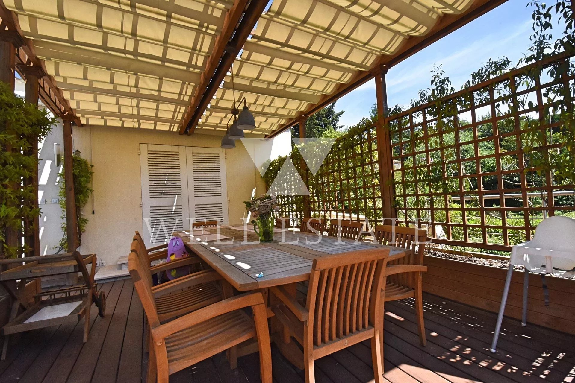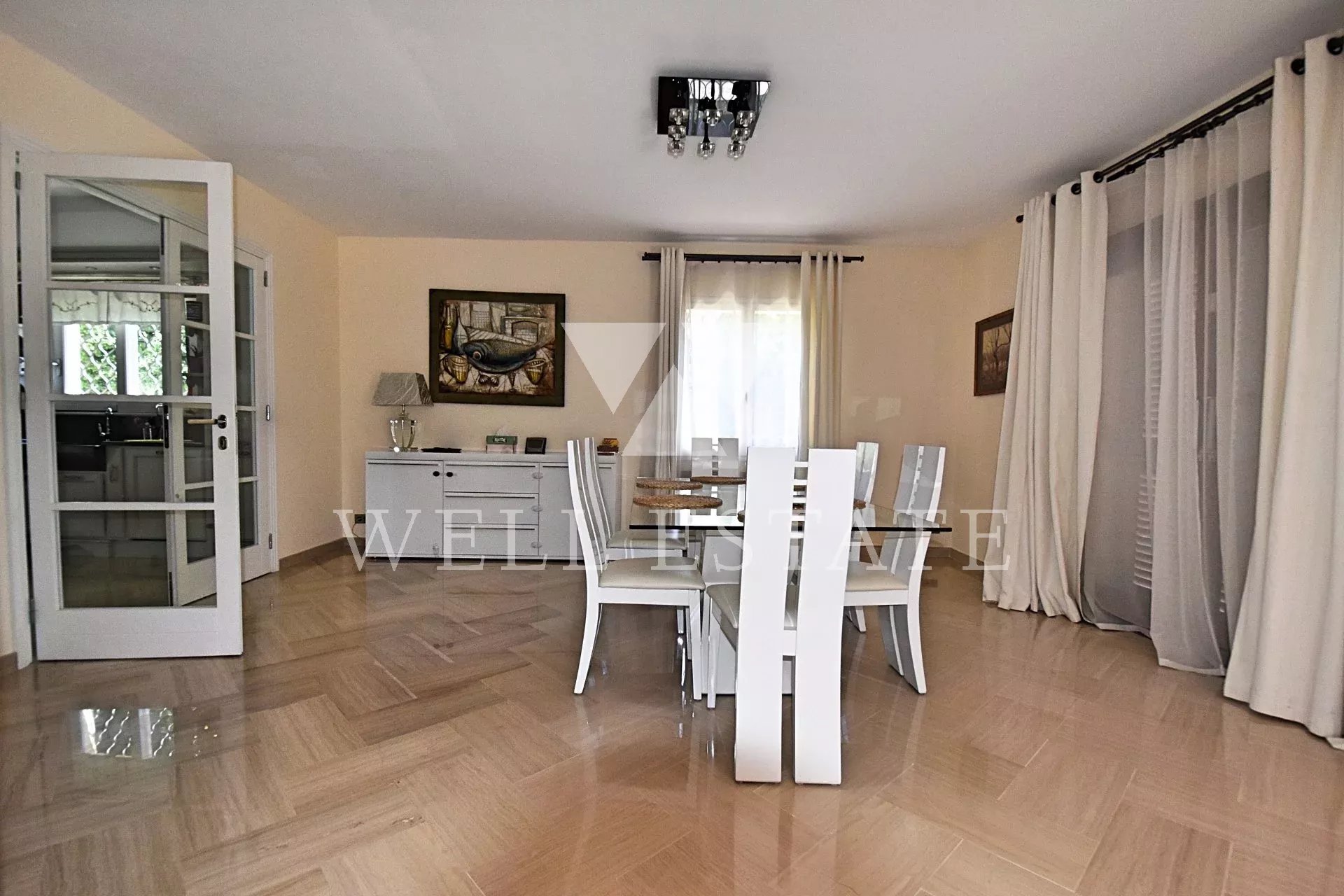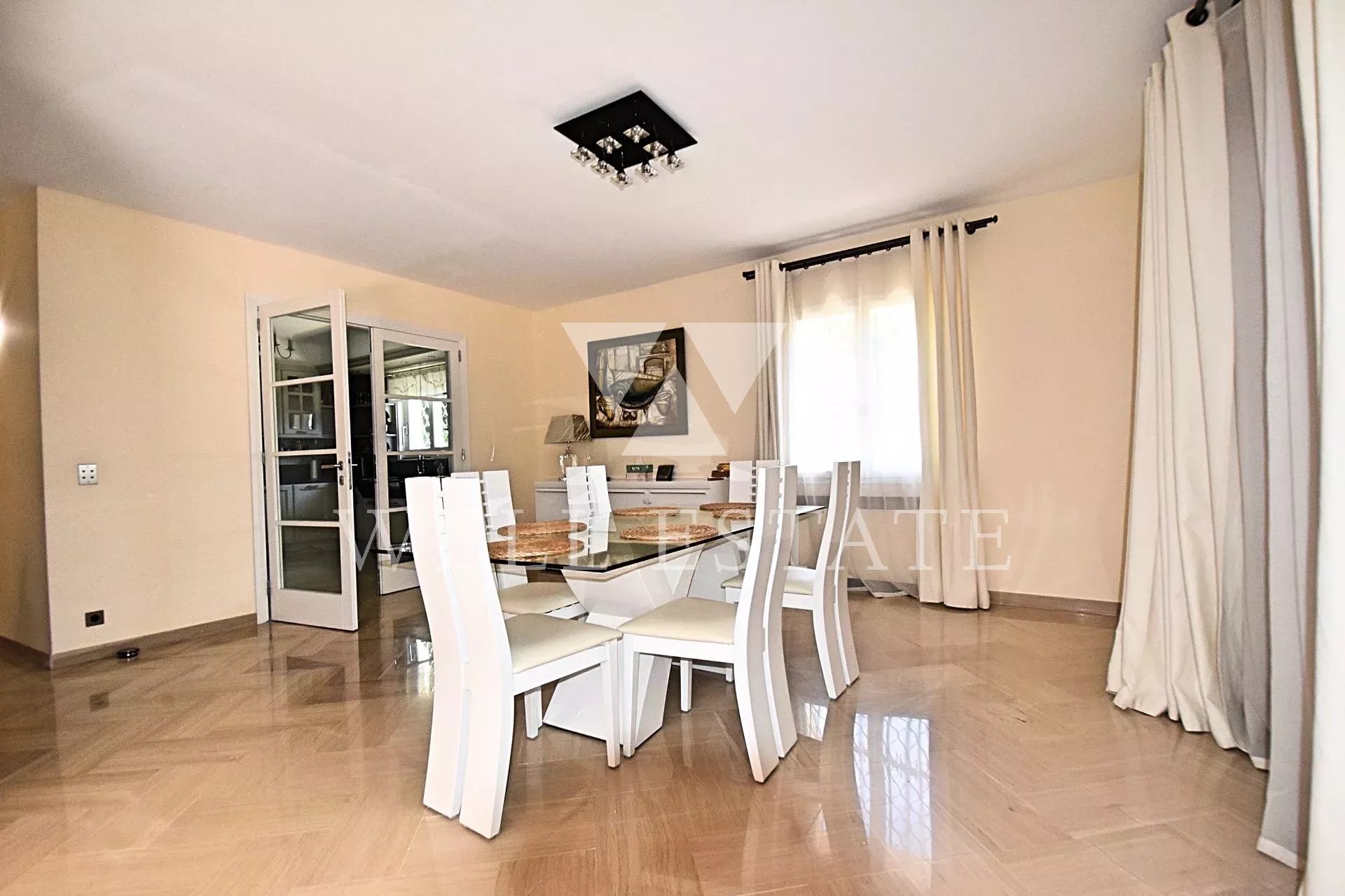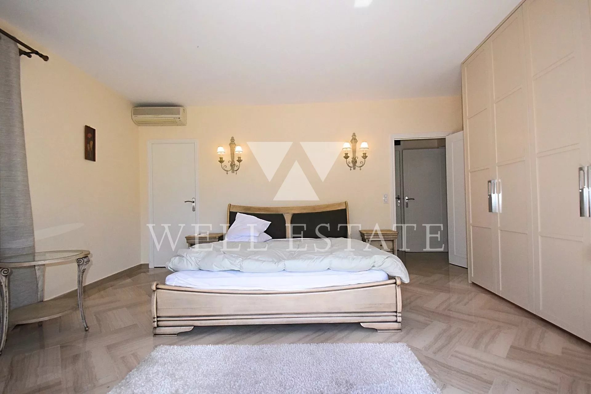 Belle villa récemment rénovée avec des matériaux de qualité. Un double garage avec l'appartement d'un gardien a été récemment construit derrière la maison. Le terrain de 2646m 2 a été parfaitement aménagé (piscine avec decken teck, aire de jeux pour enfants et un putting green). Superbe vue sur la baie de Cannes, le Suquet et l’Estrel.
