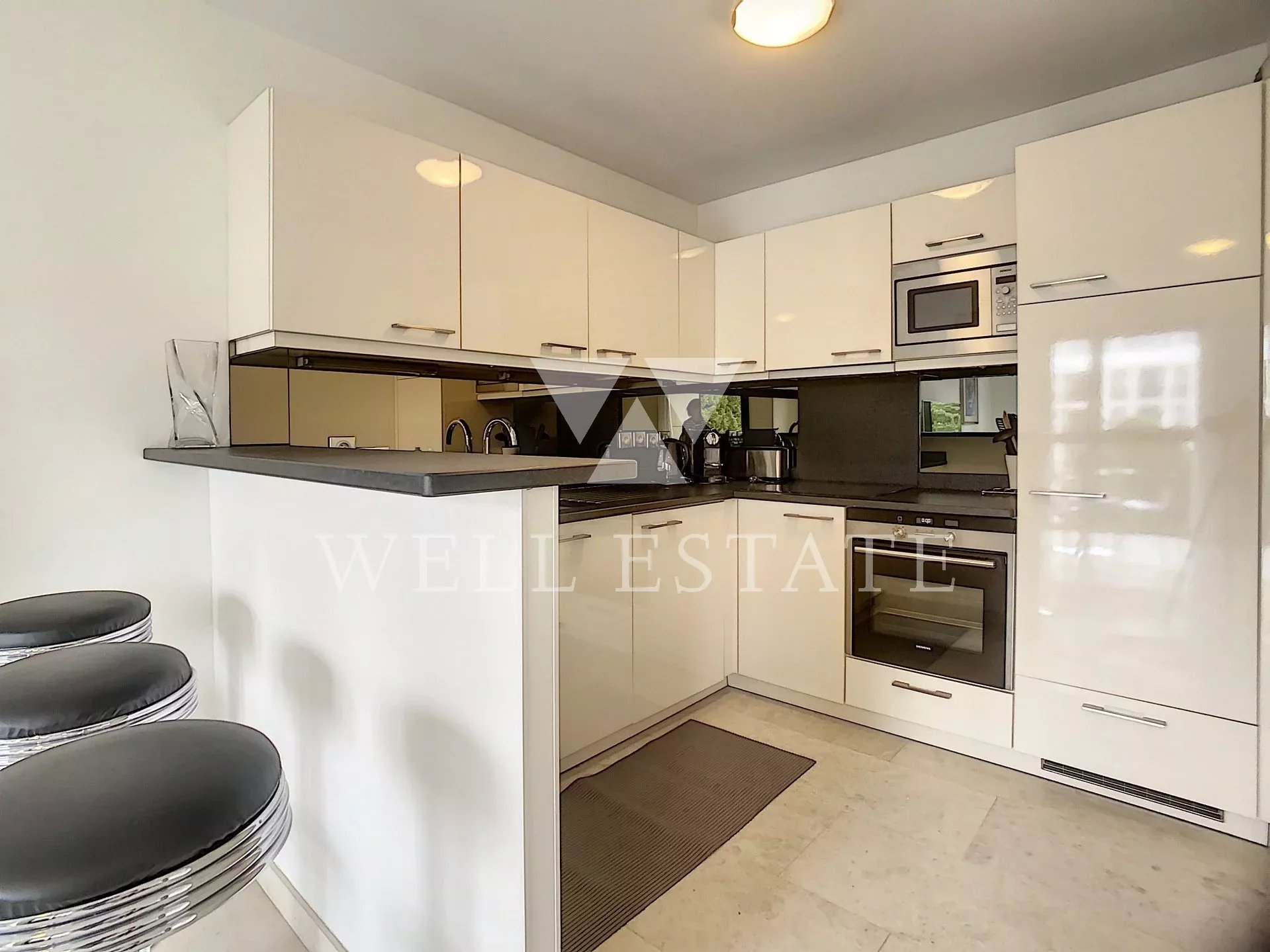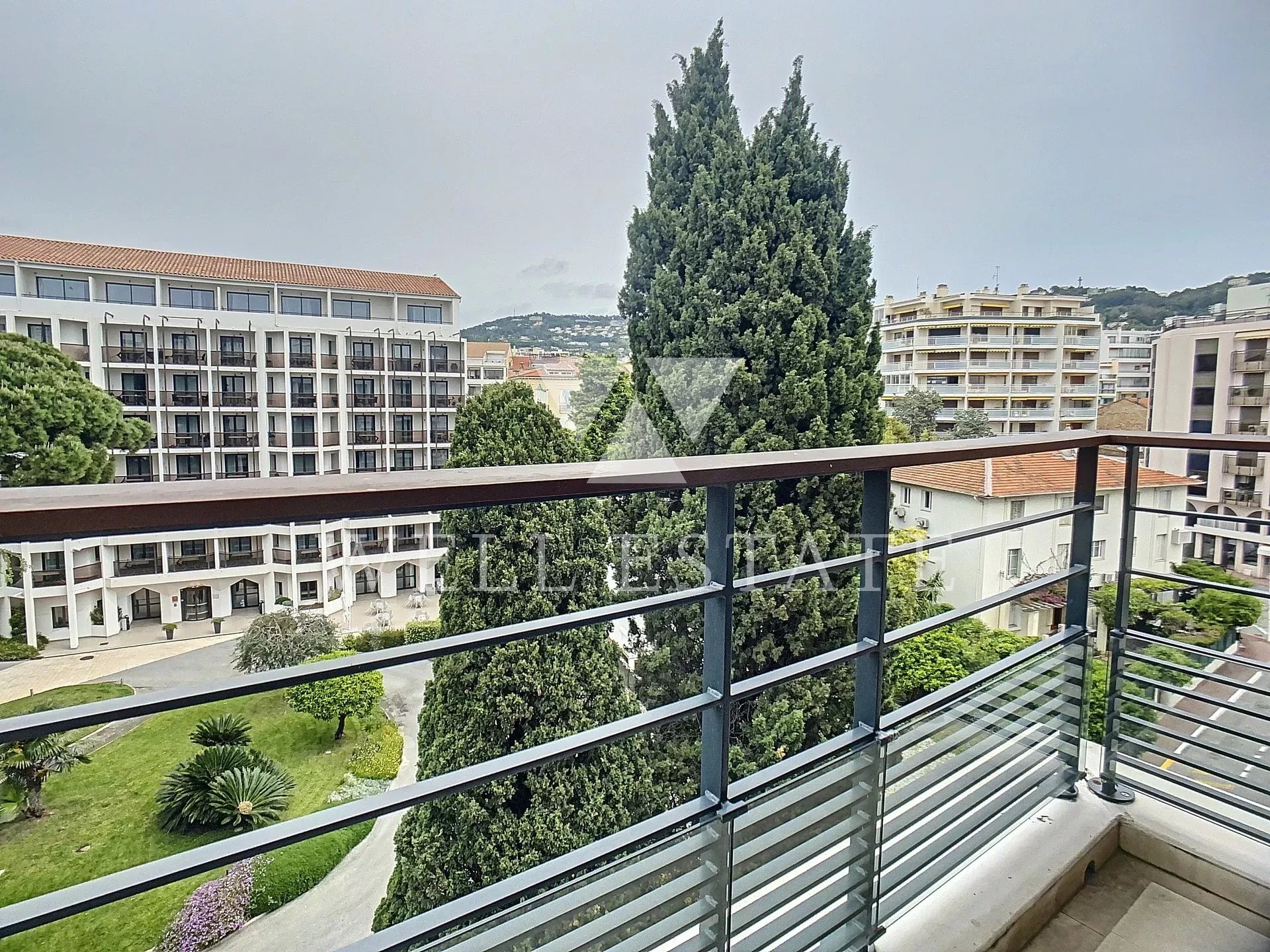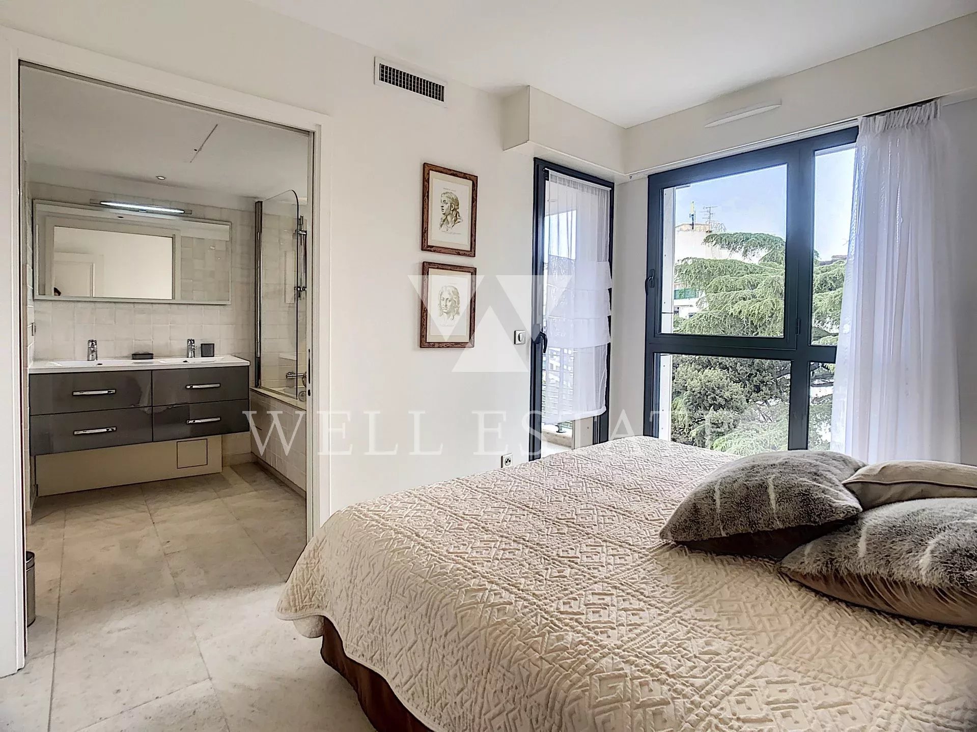 En plein centre de Cannes dans le fameux quartier de la Banane, au calme, dans une résidence de très haut standing avec concierge, un appartement de 3 pièces, très calme et ensoleillé, d'une surface de 75m² avec une terrasse, entièrement aménagé par un architecte de renom. Il est composé d'une entrée, d’un salon ouvrant sur la terrasse, d’une salle à manger et cuisine contemporaine américaine, d’une chambre avec placard, salle de bains, WC et balcon, d’autre chambre avec salle ‘eau, toilette invité. 1 garage sous-sol.