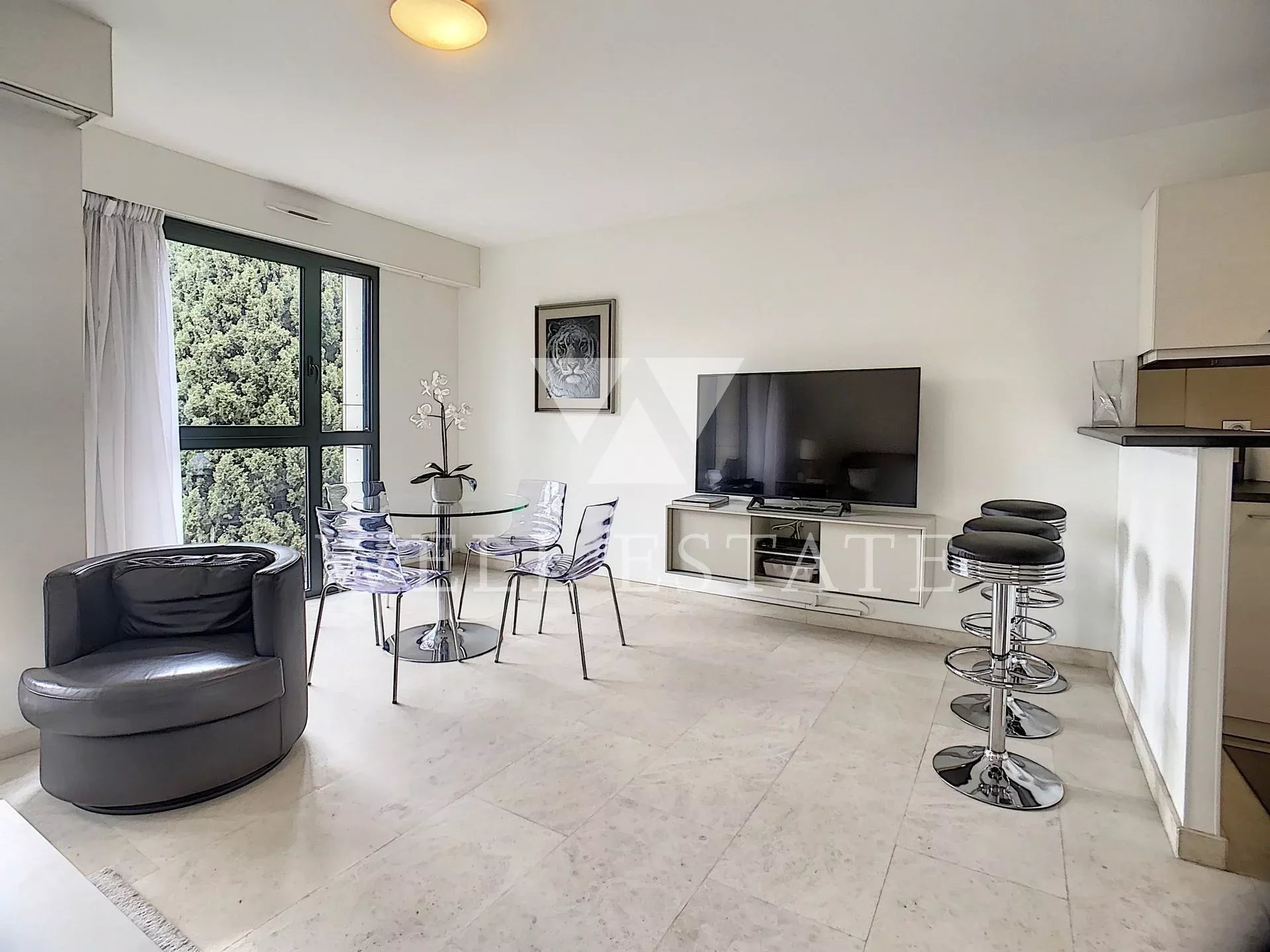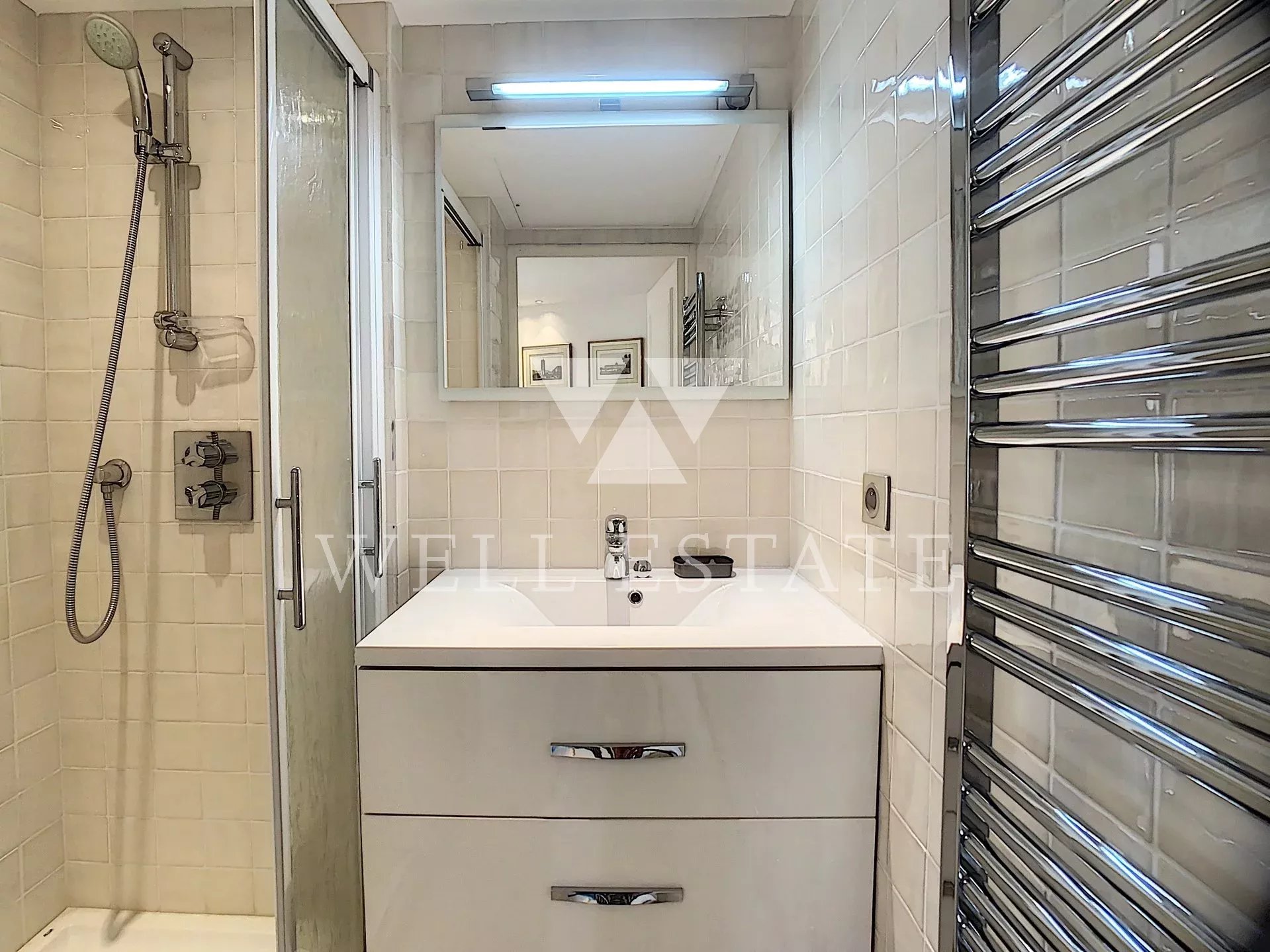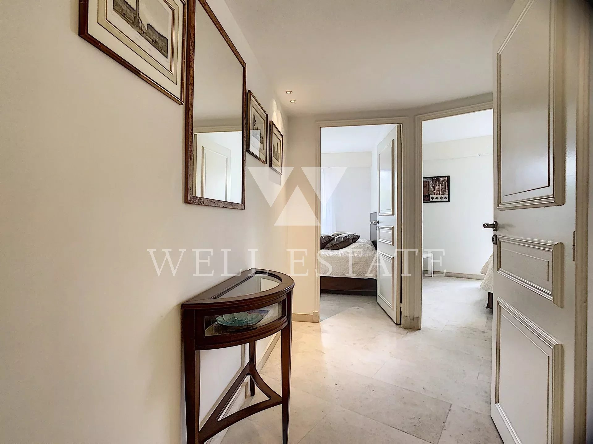 En plein centre de Cannes dans le fameux quartier de la Banane, au calme, dans une résidence de très haut standing avec concierge, un appartement de 3 pièces, très calme et ensoleillé, d'une surface de 75m² avec une terrasse, entièrement aménagé par un architecte de renom. Il est composé d'une entrée, d’un salon ouvrant sur la terrasse, d’une salle à manger et cuisine contemporaine américaine, d’une chambre avec placard, salle de bains, WC et balcon, d’autre chambre avec salle ‘eau, toilette invité. 1 garage sous-sol.