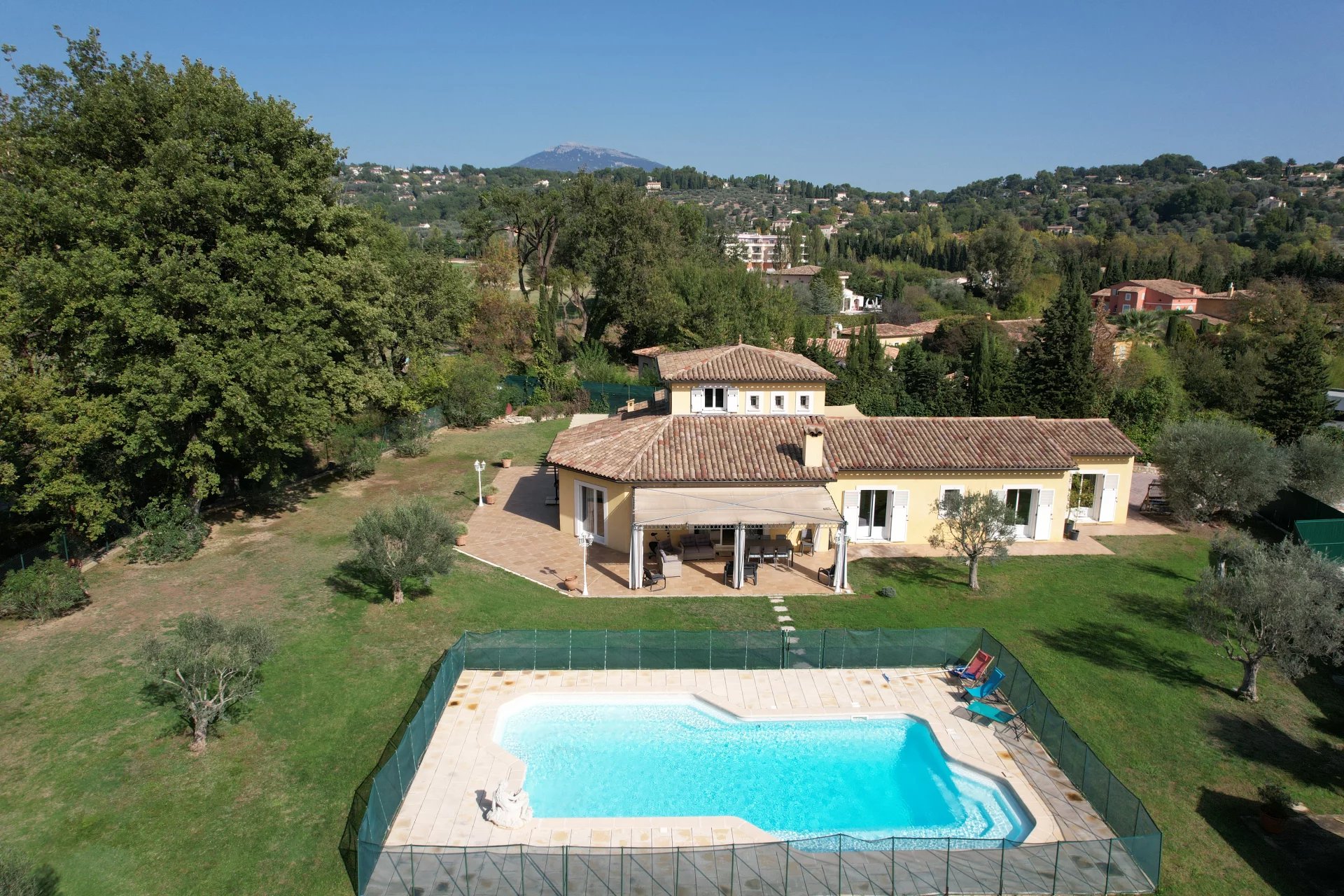 Opio/Chateauneuf - Belle Villa d’une superficie de 250m², au calme absolu, d’une superficie de 250m² se situant dans un quartier résidentiel recherché, proche de du golf de la Grande Bastide. Situé sur un jardin plat de 2.667m² avec piscine(13.5m6m). Cette superbe villa offre de généreux volumes dont un spacieux salon, salle à manger, cuisine ouverte de 72m². La partie nuit du Rez de jardin est composée, d'une suite parentale de 25m² ainsi que deux chambres et une de salle d'eau de 8.43m²,d'un wc individuelle, d'une buanderie. Au premier étage, un espace de 35m² composé d'une chambre de maitre avec salle de bain et dressing. En outre vous bénéficiez d'un garage aménagé de 40m² avec point d'eau, climatisation dans les 4 chambres, d'une cheminée avec insert dans le séjour, chauffage au sol, visiophone, vidéophonie. Vous avez aussi la possibilité d'un agrandissement de partie à vivre de la villa de 35m². La piscine est au sel et hydrolyse de dimension :13m sur 6m. A découvrir rapidement..