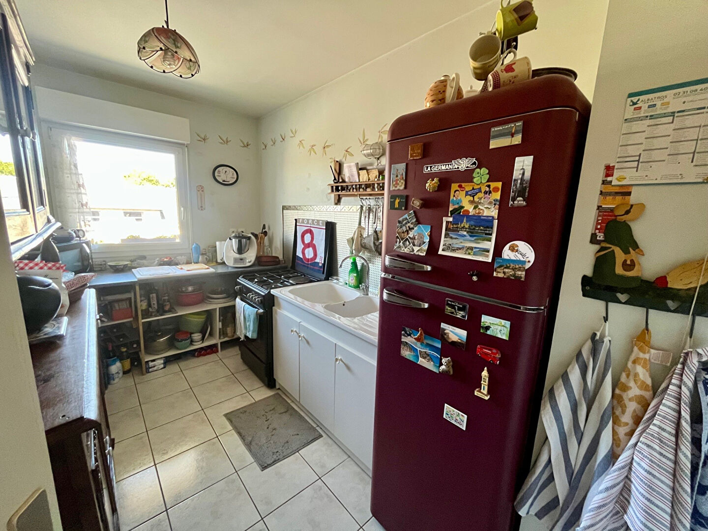 Appartement au dernier étage avec beau balcon comprenant : séjour, cuisine indépendante, 2 chambres, salle de bain, ainsi que cave et garage Idéal investisseur, vendu loué. (6.10 % honoraires TTC à la charge de l'acquéreur.) Copropriété de 125 lots - dont 39 lots habitation. (Pas de procédure en cours). Charges annuelles : 1596 euros.